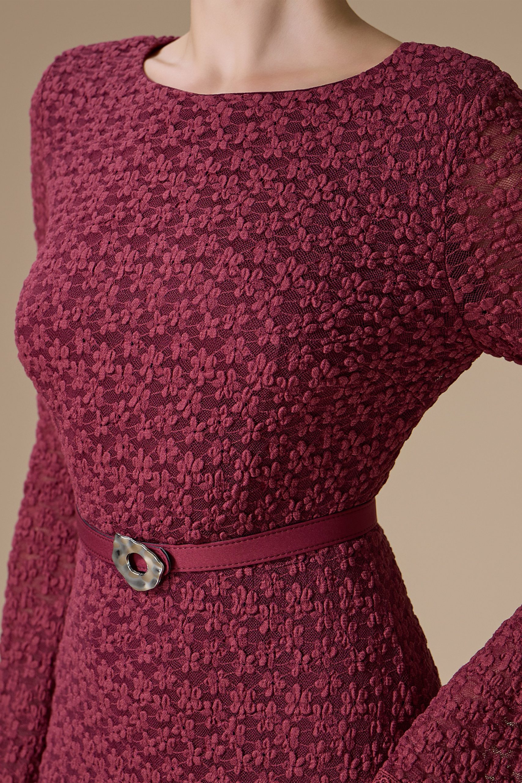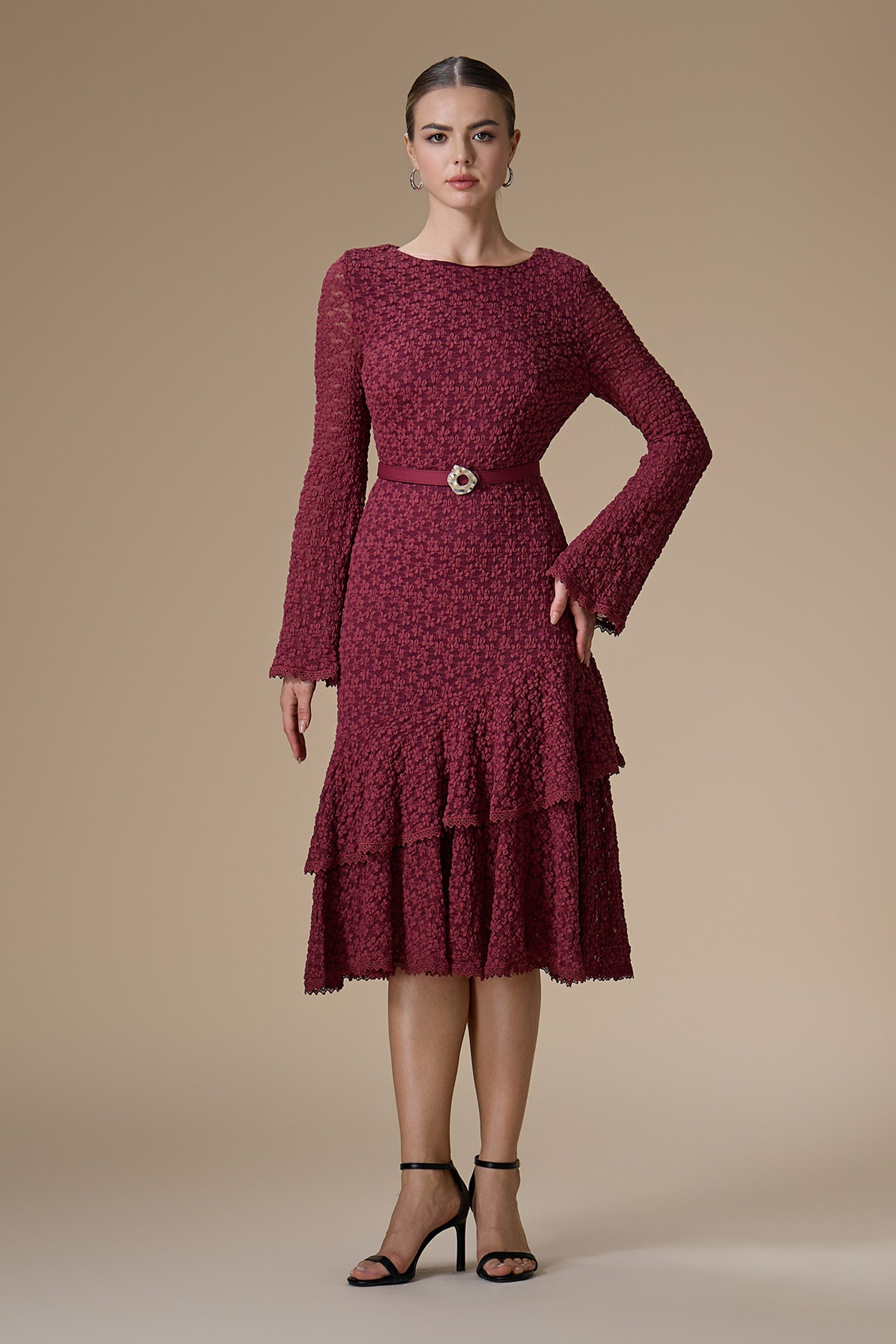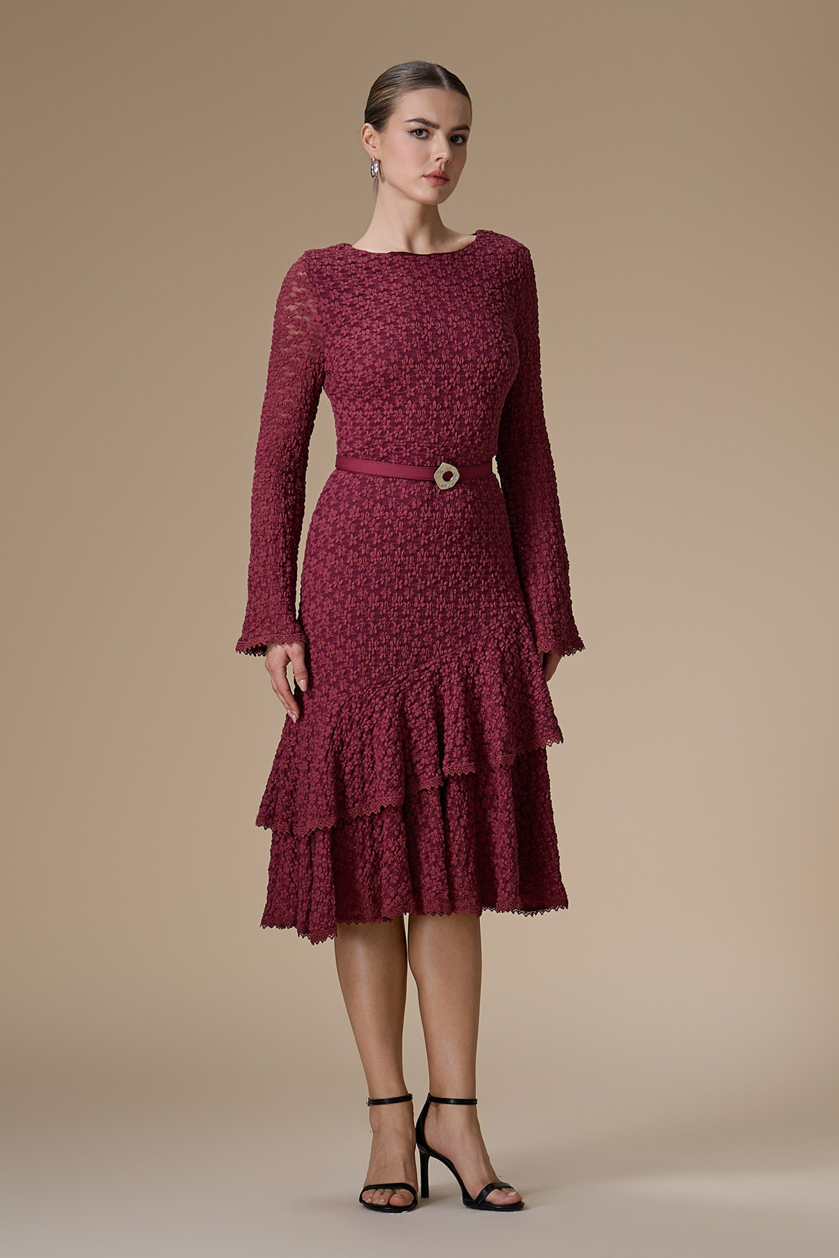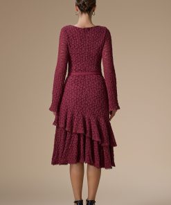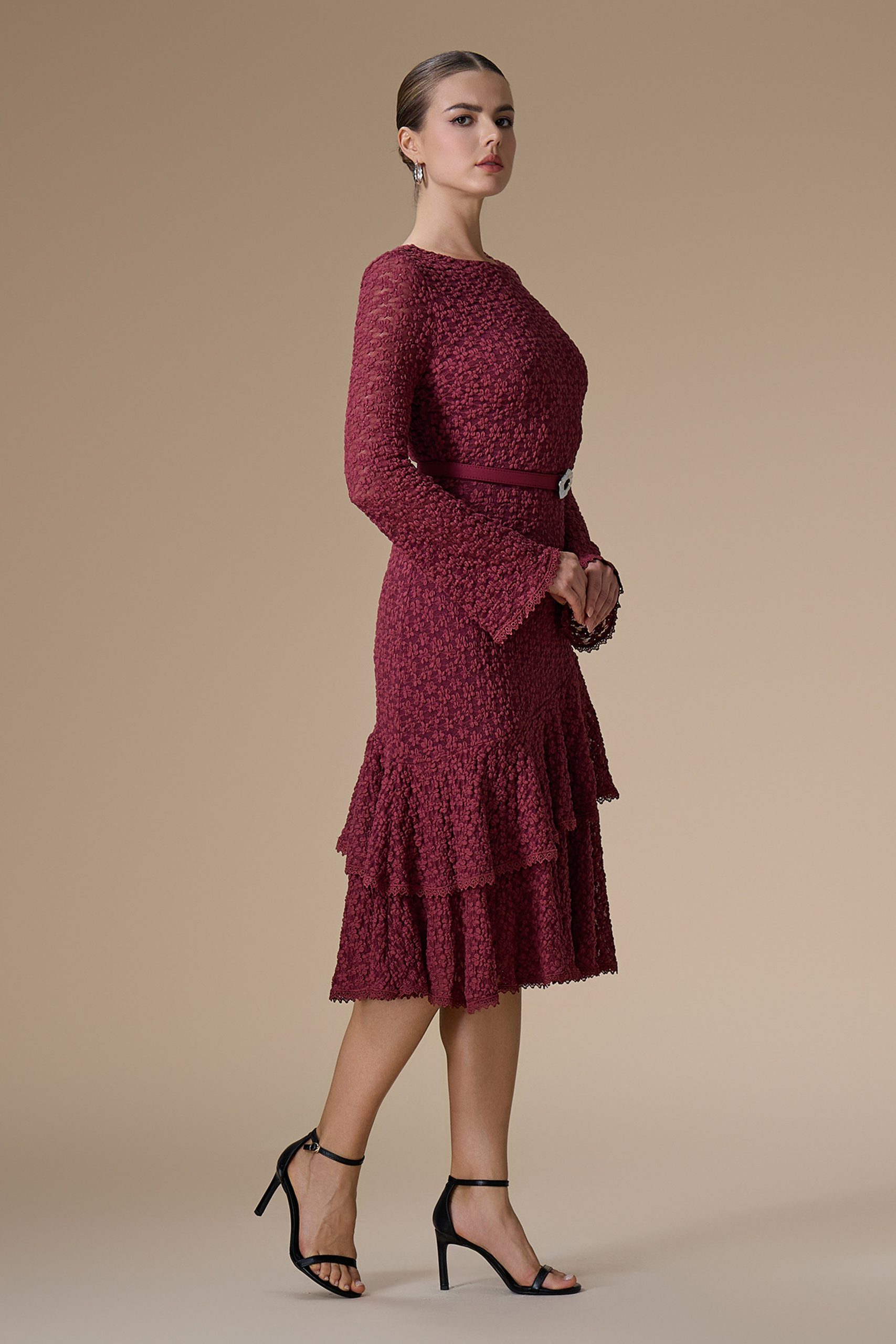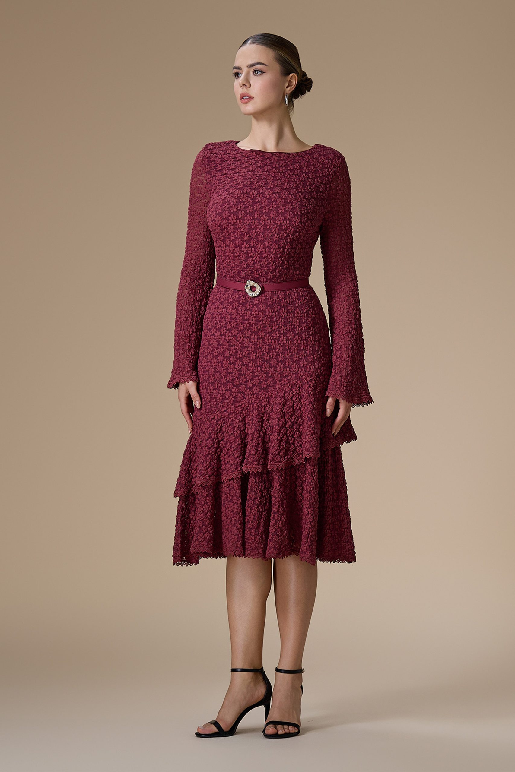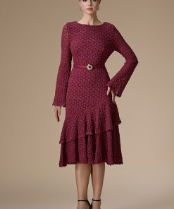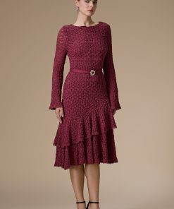 اكتان – فستان برغندي ميدي دانتيل