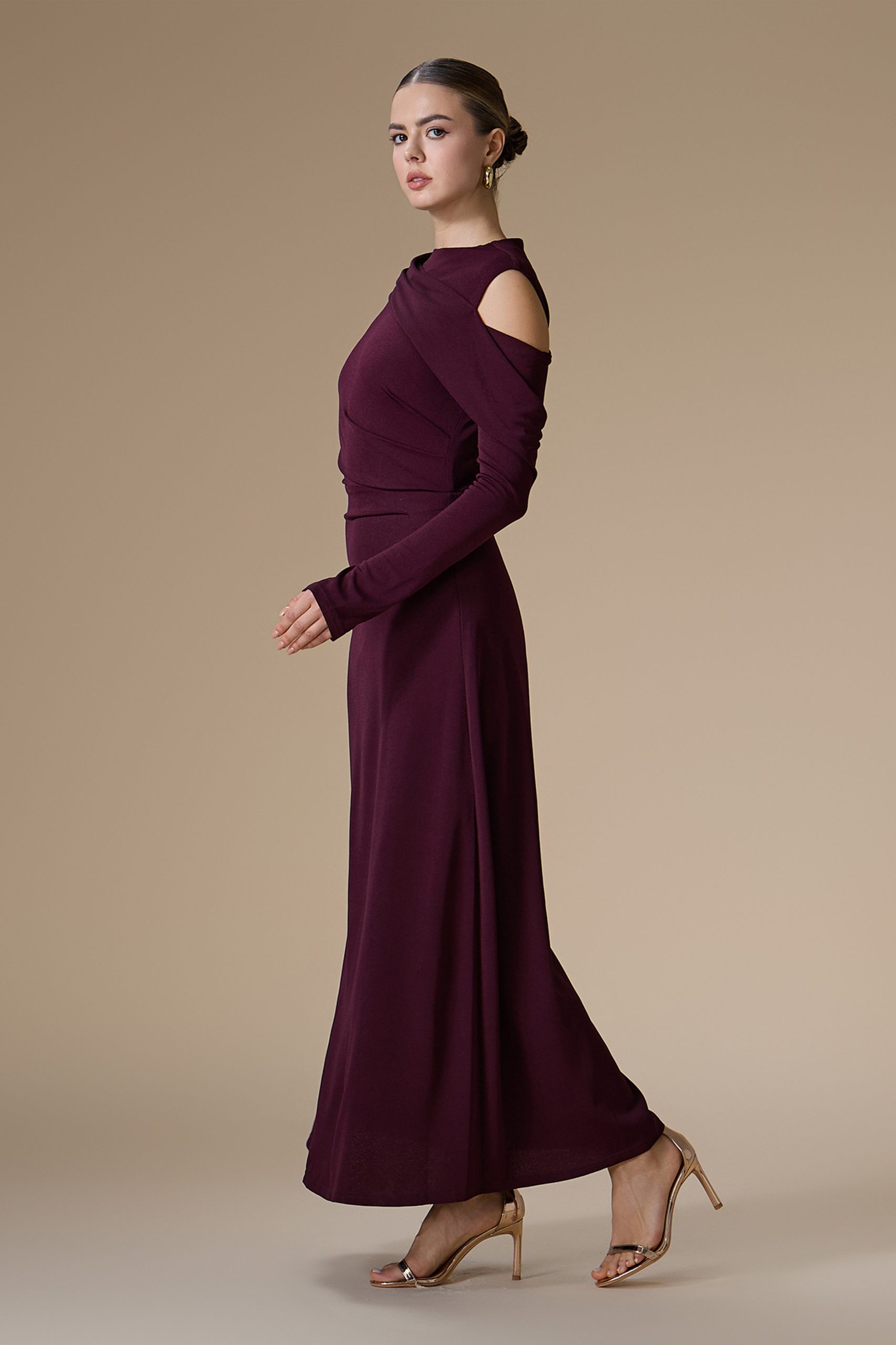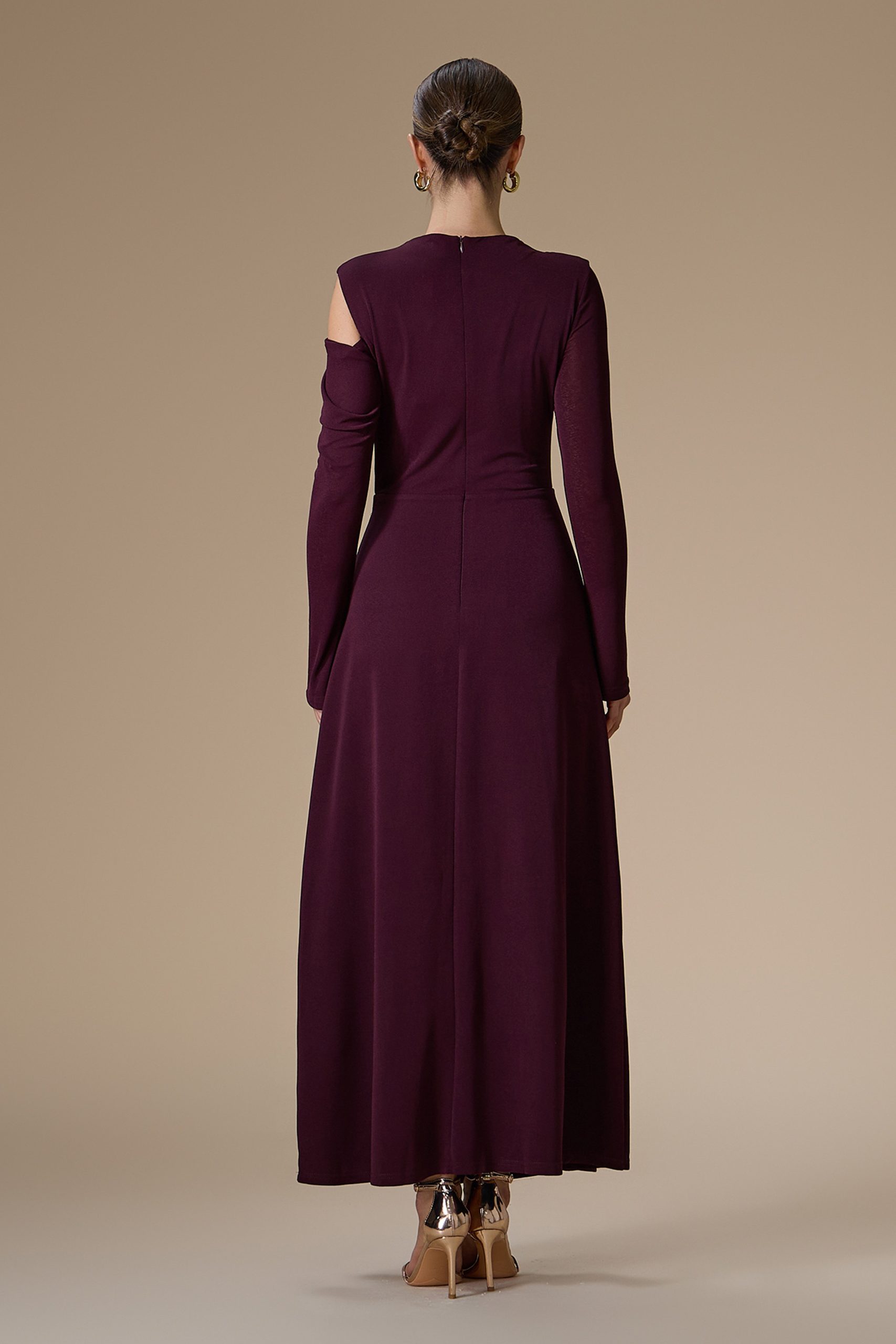 اكتان – فستان بنفسجي طويل بكتف مكشوف