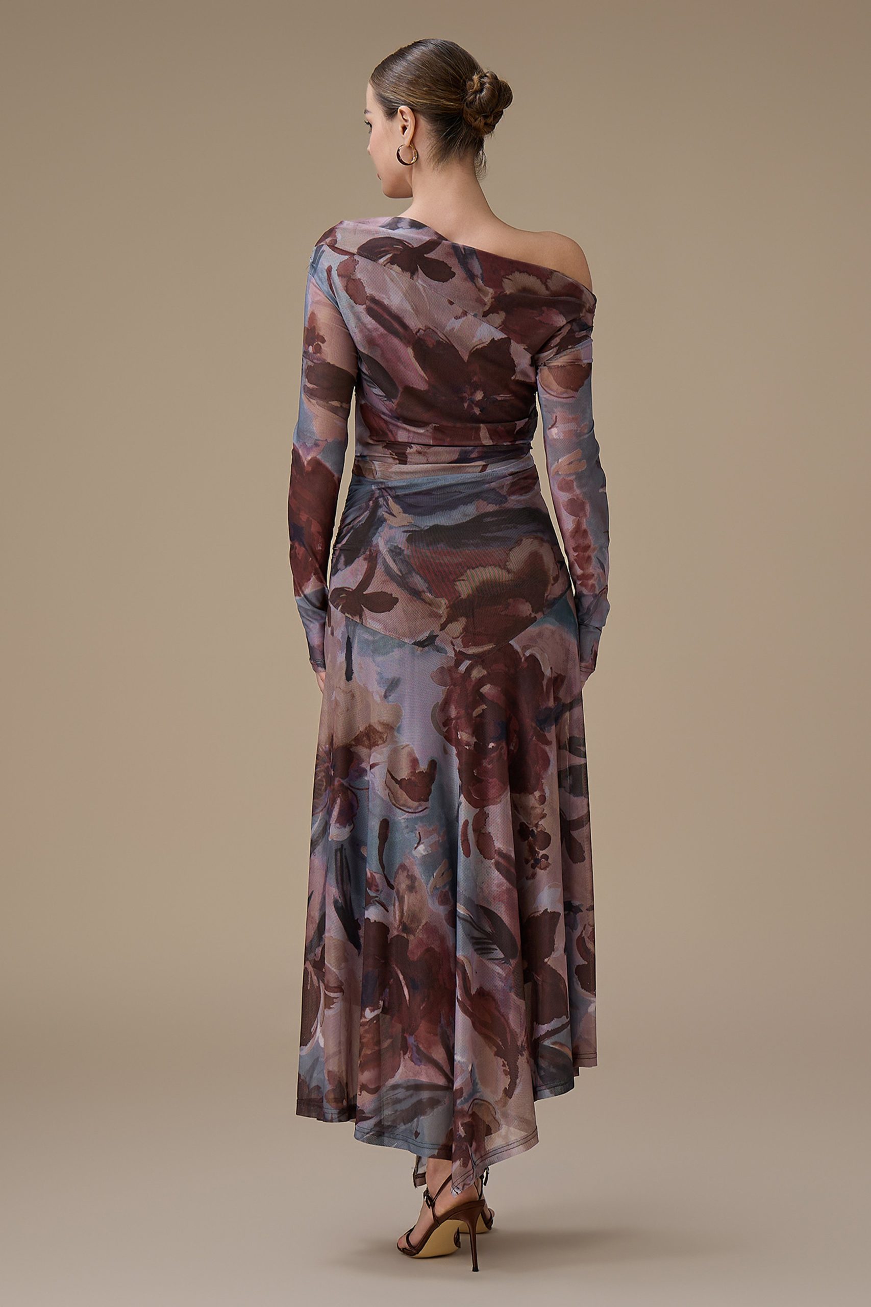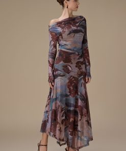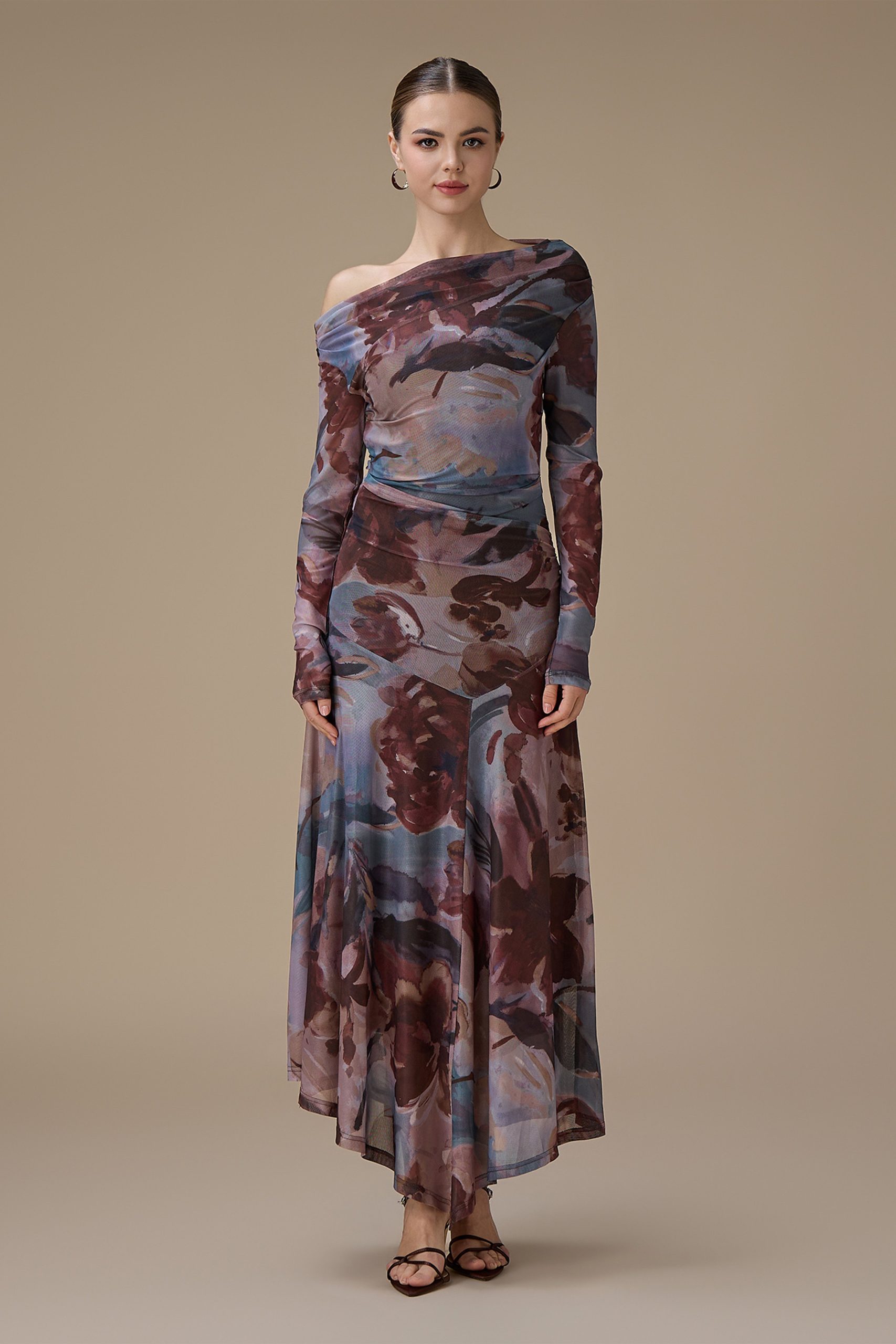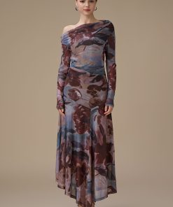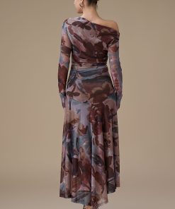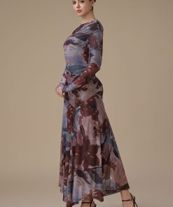 اكتان – فستان بني طويل مشجر