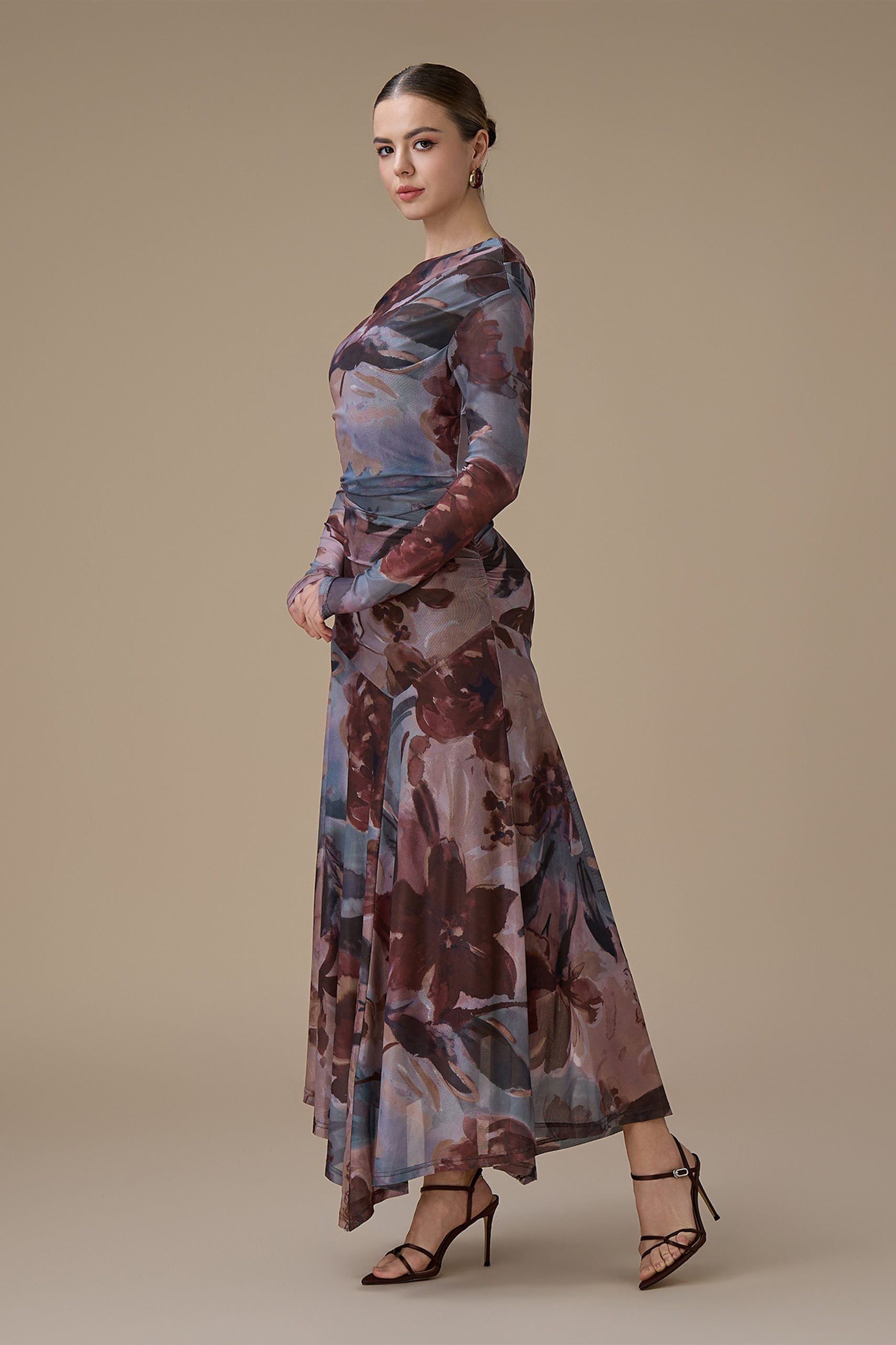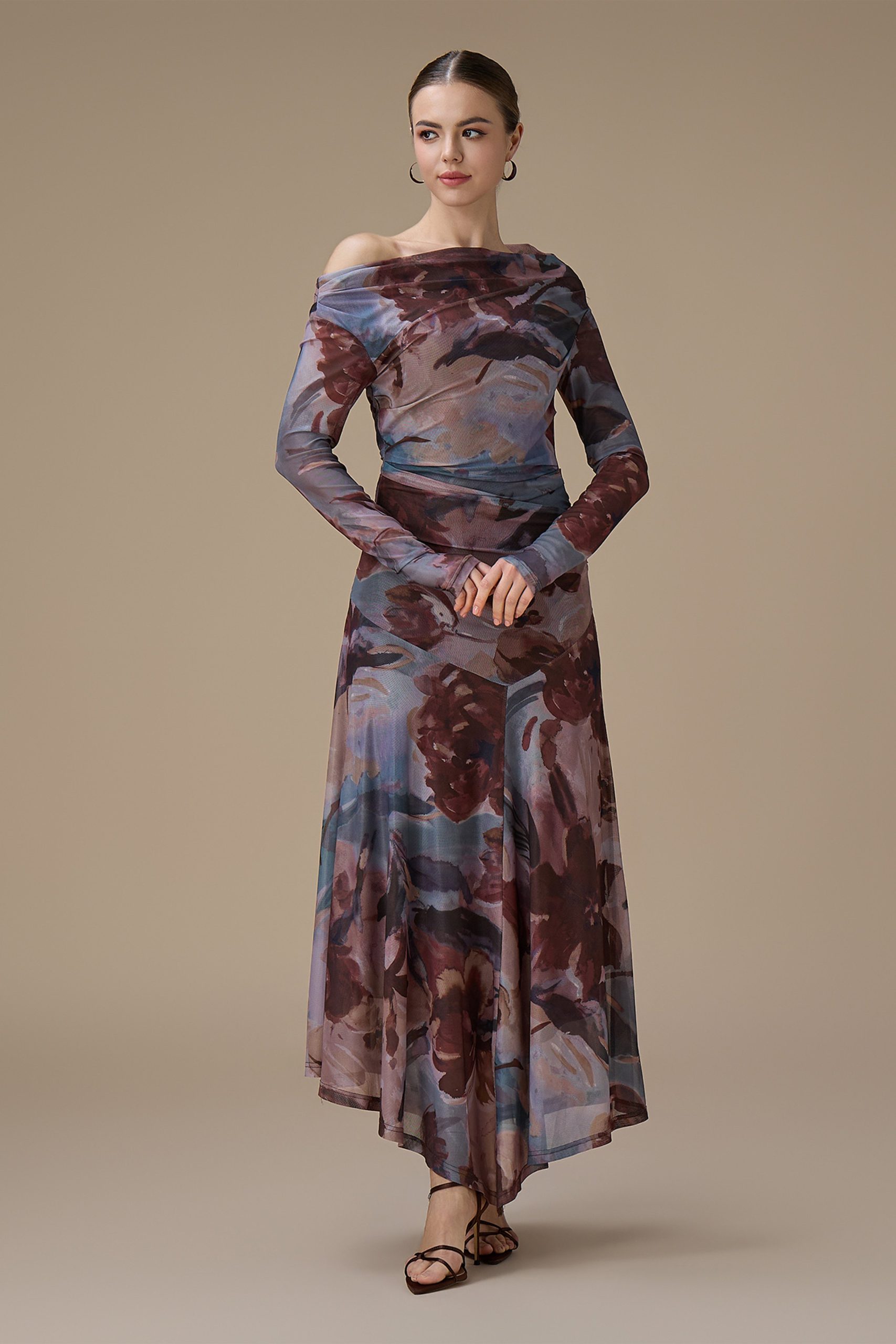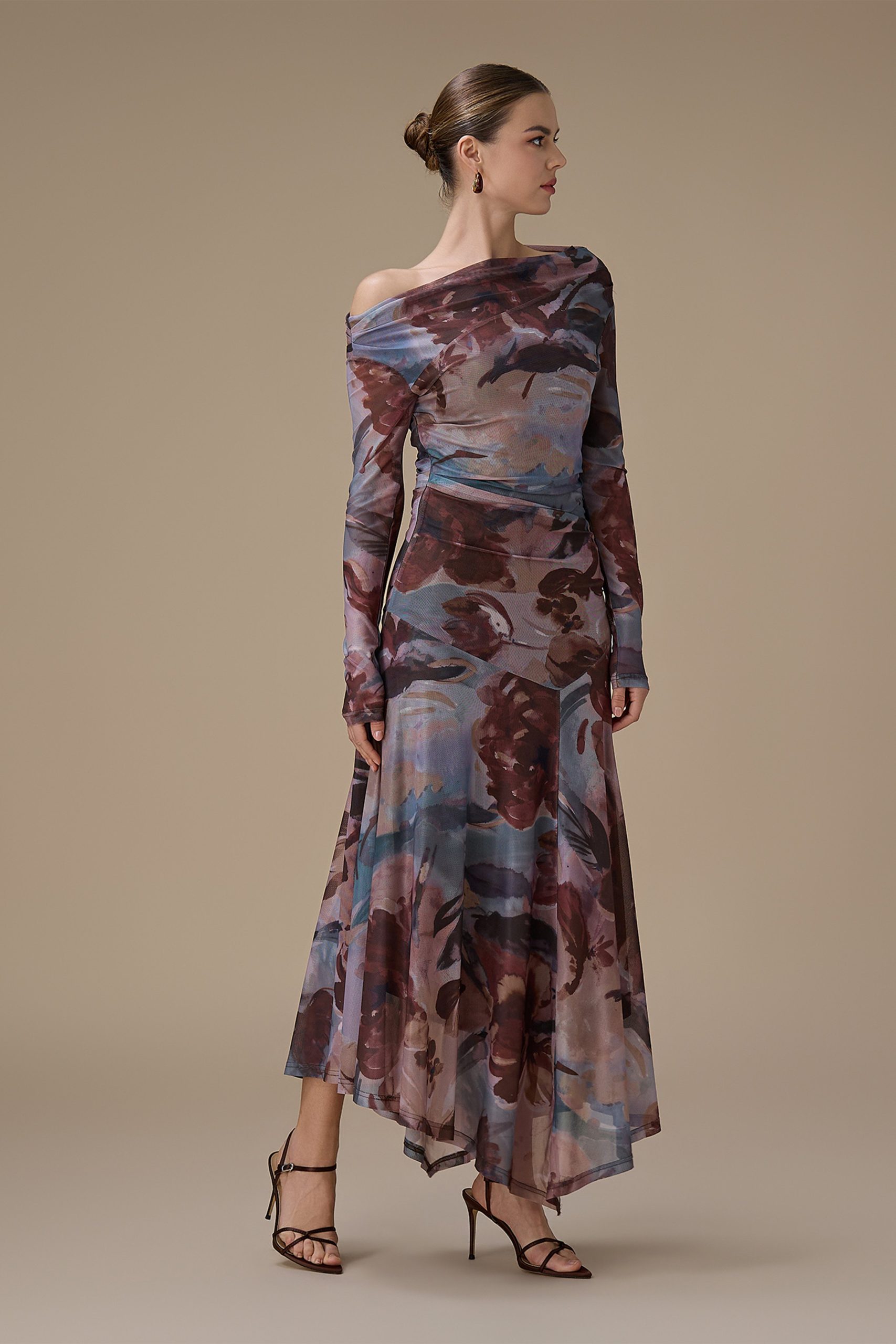 اكتان – فستان بني طويل مشجر