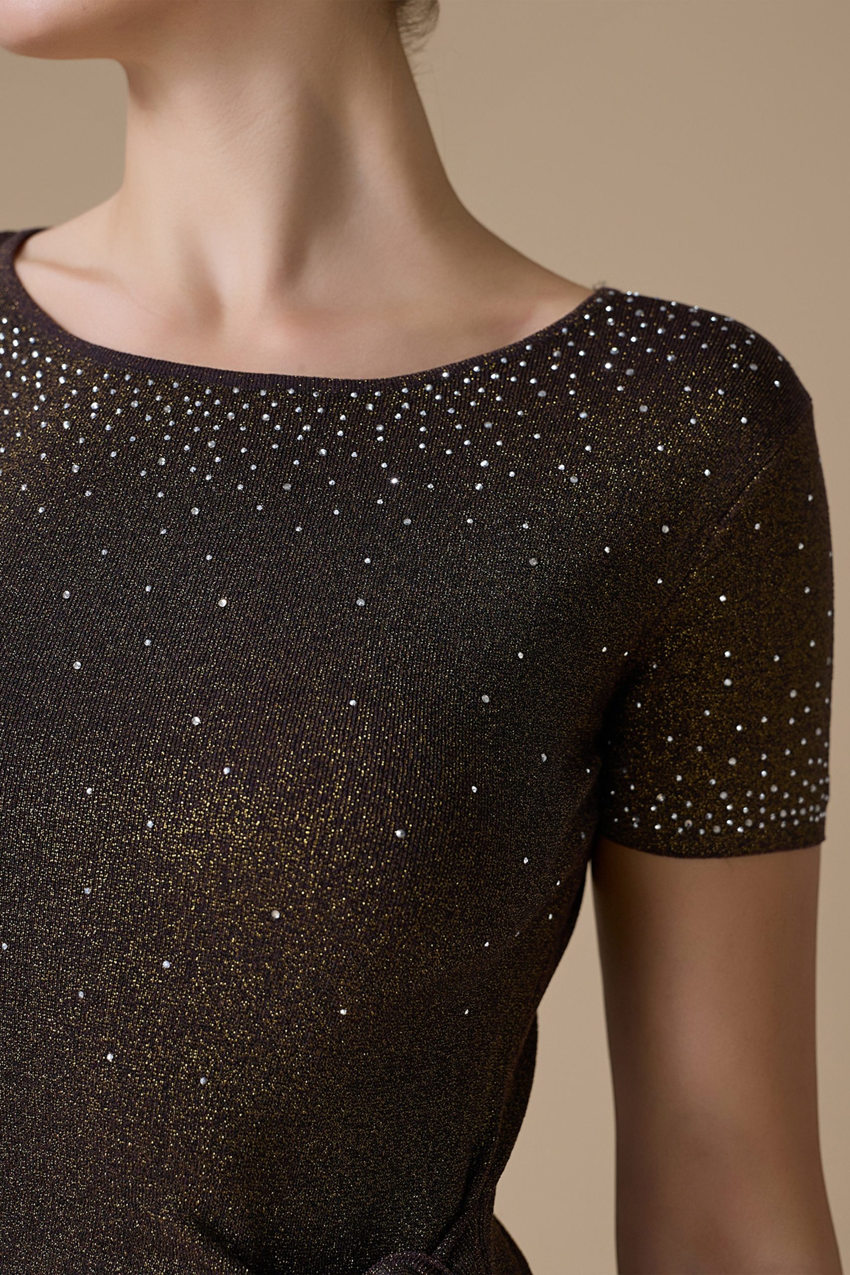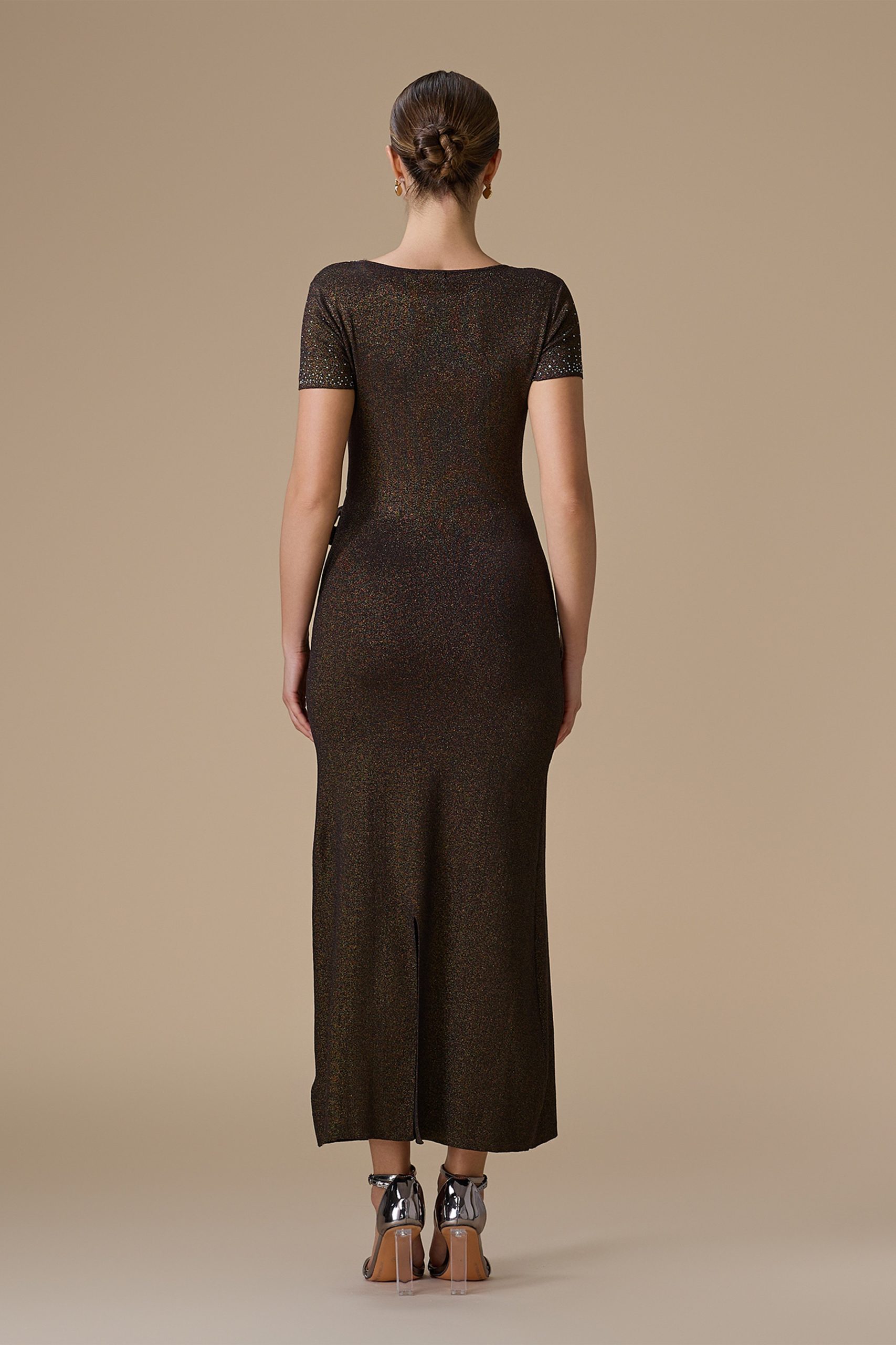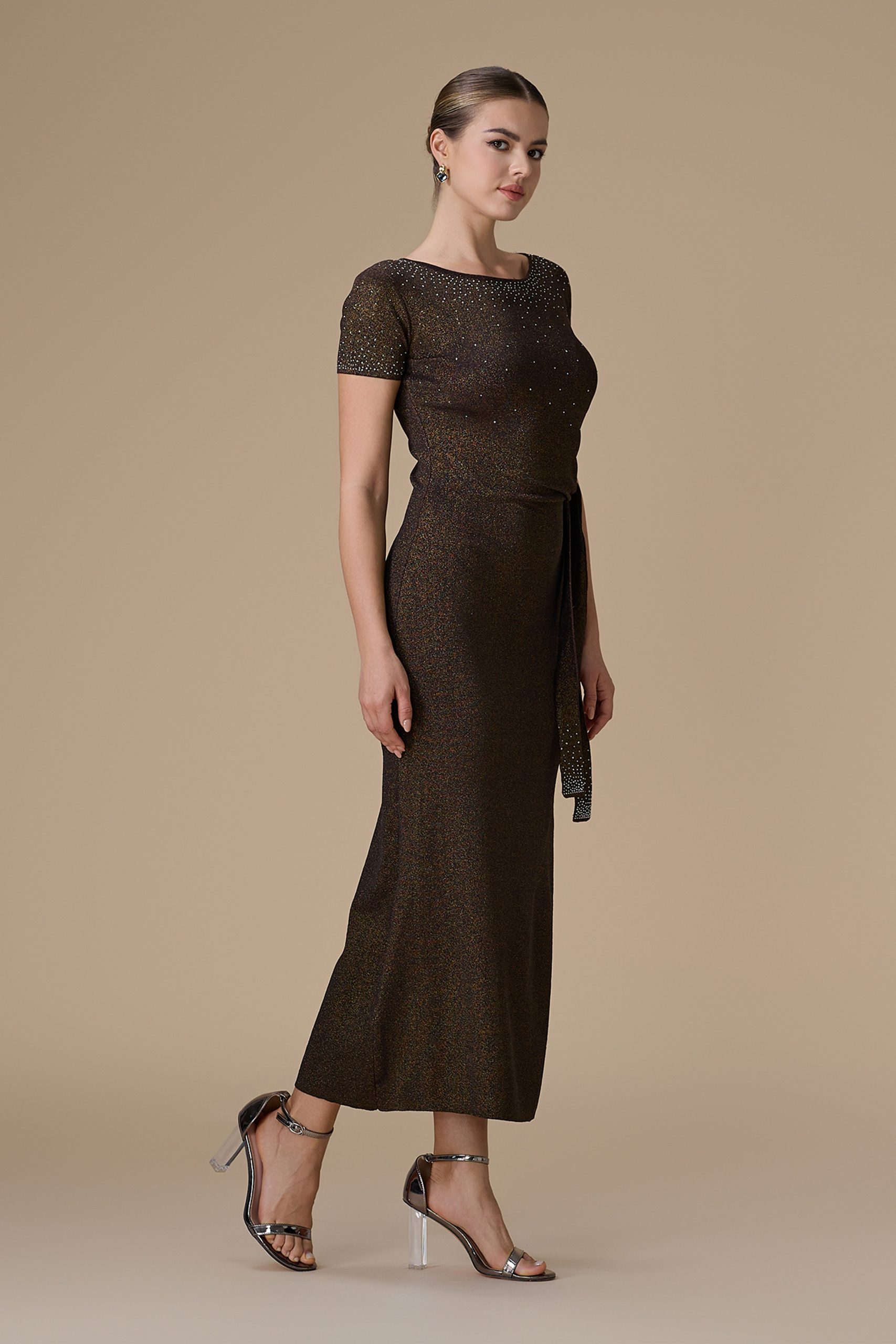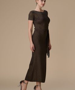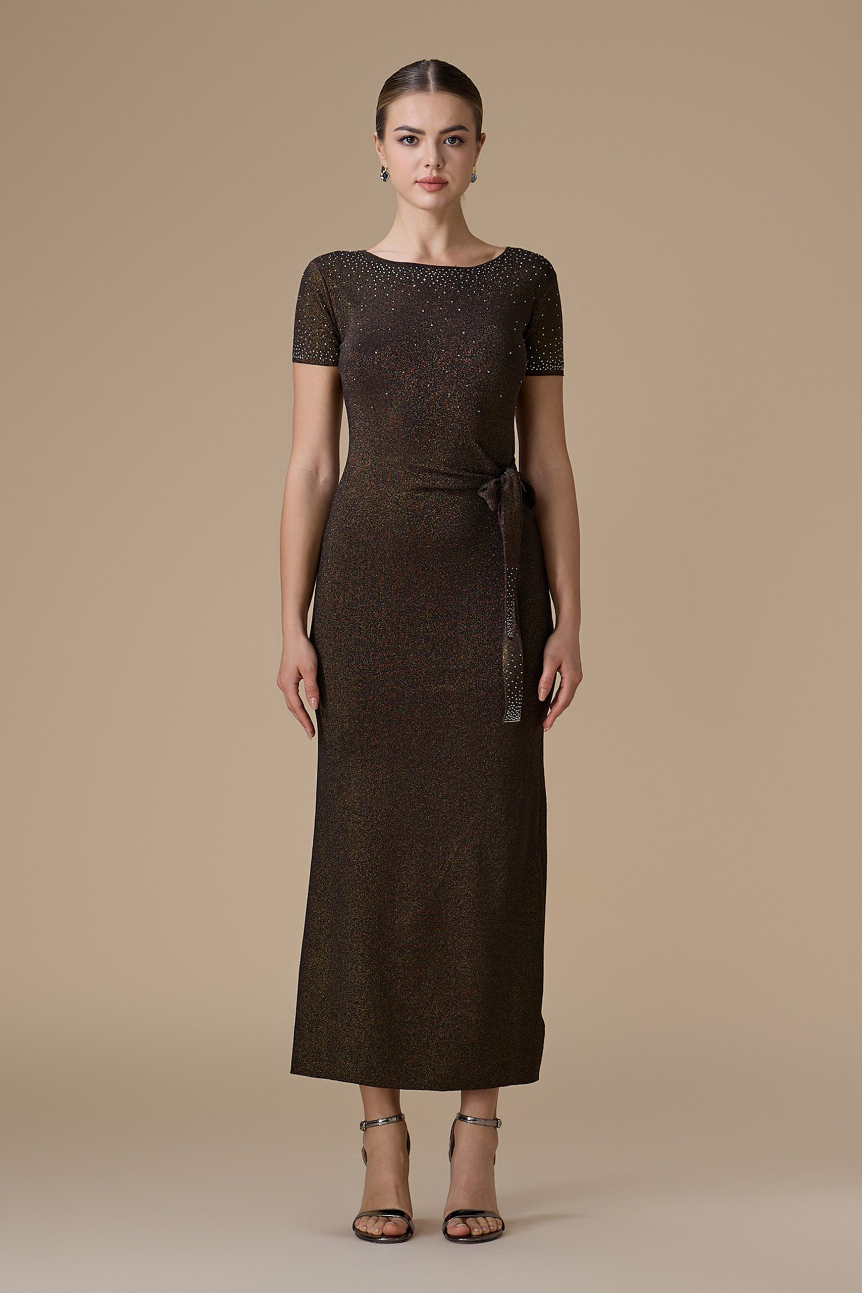 اكتان – فستان بني ماكسي جيرسيه