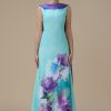 اكتان – فستان جلد ماكسي برقبة v لون اسود