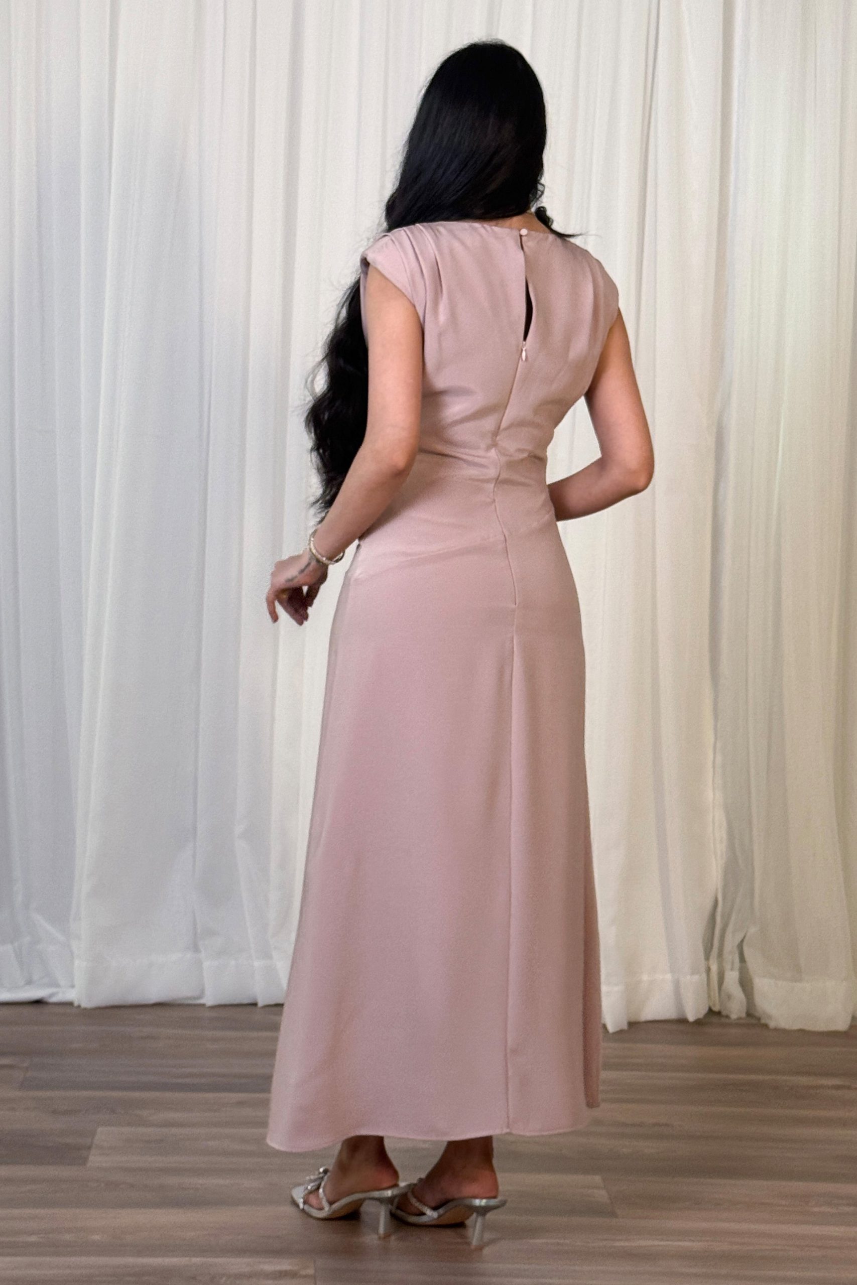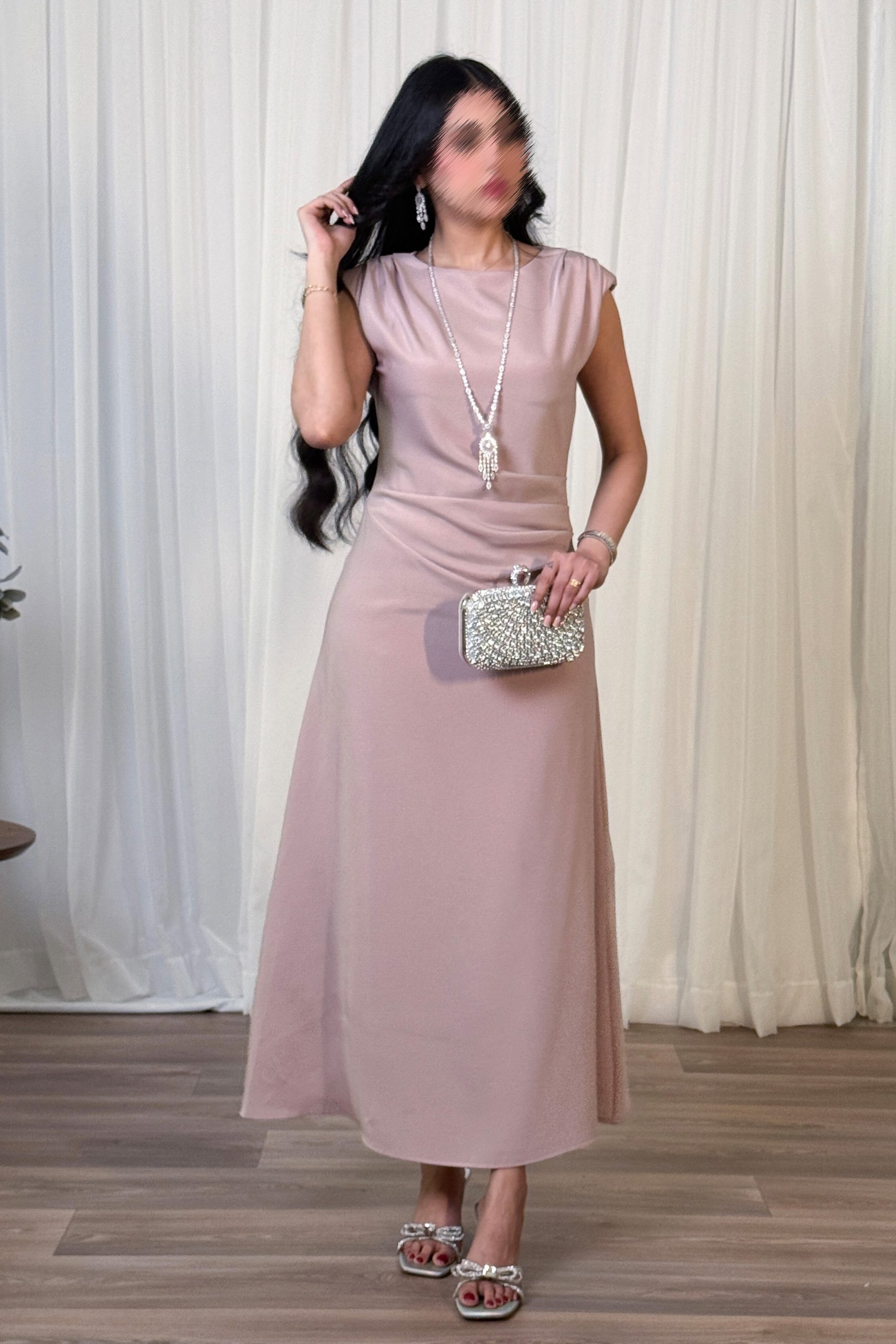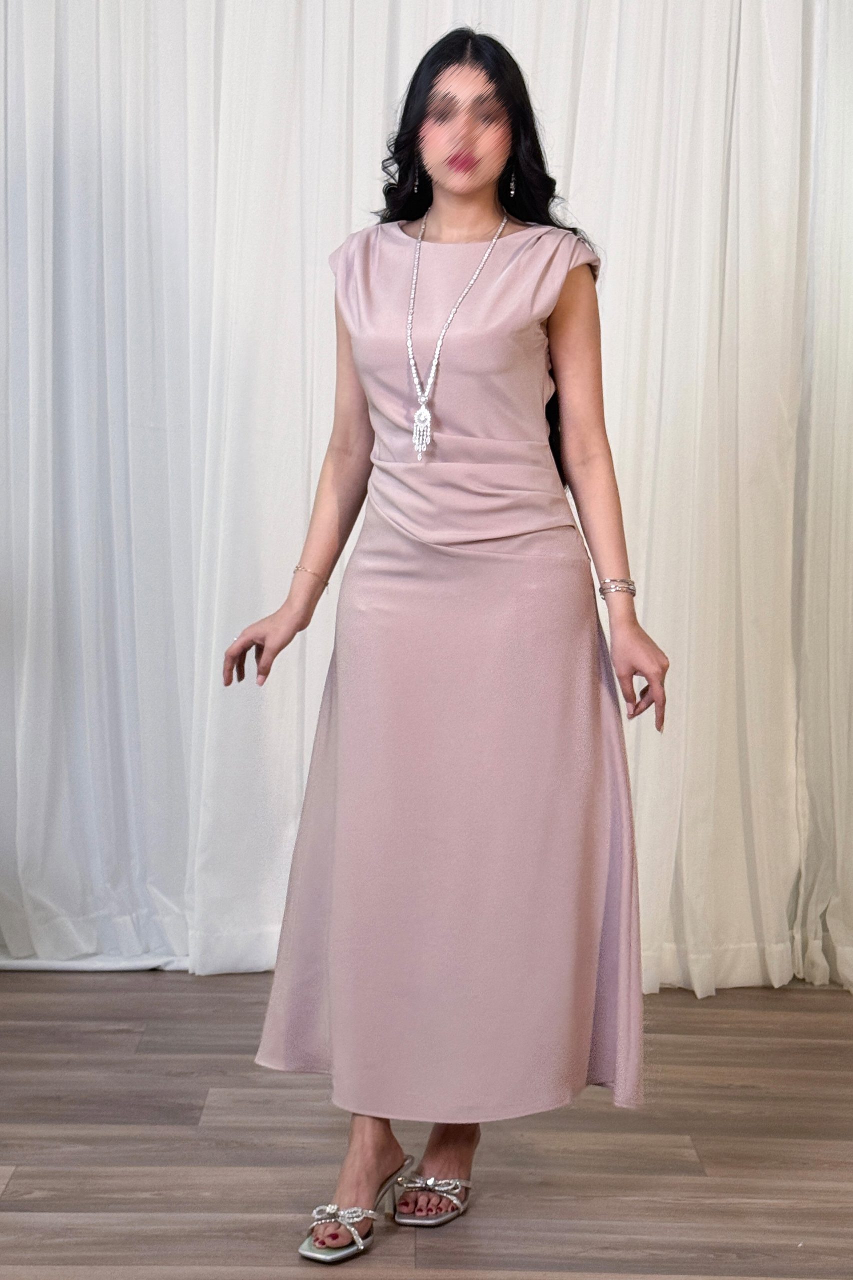 اكتان – فستان درابيه بتأثير ثنيات لون بنفسجي فاتح