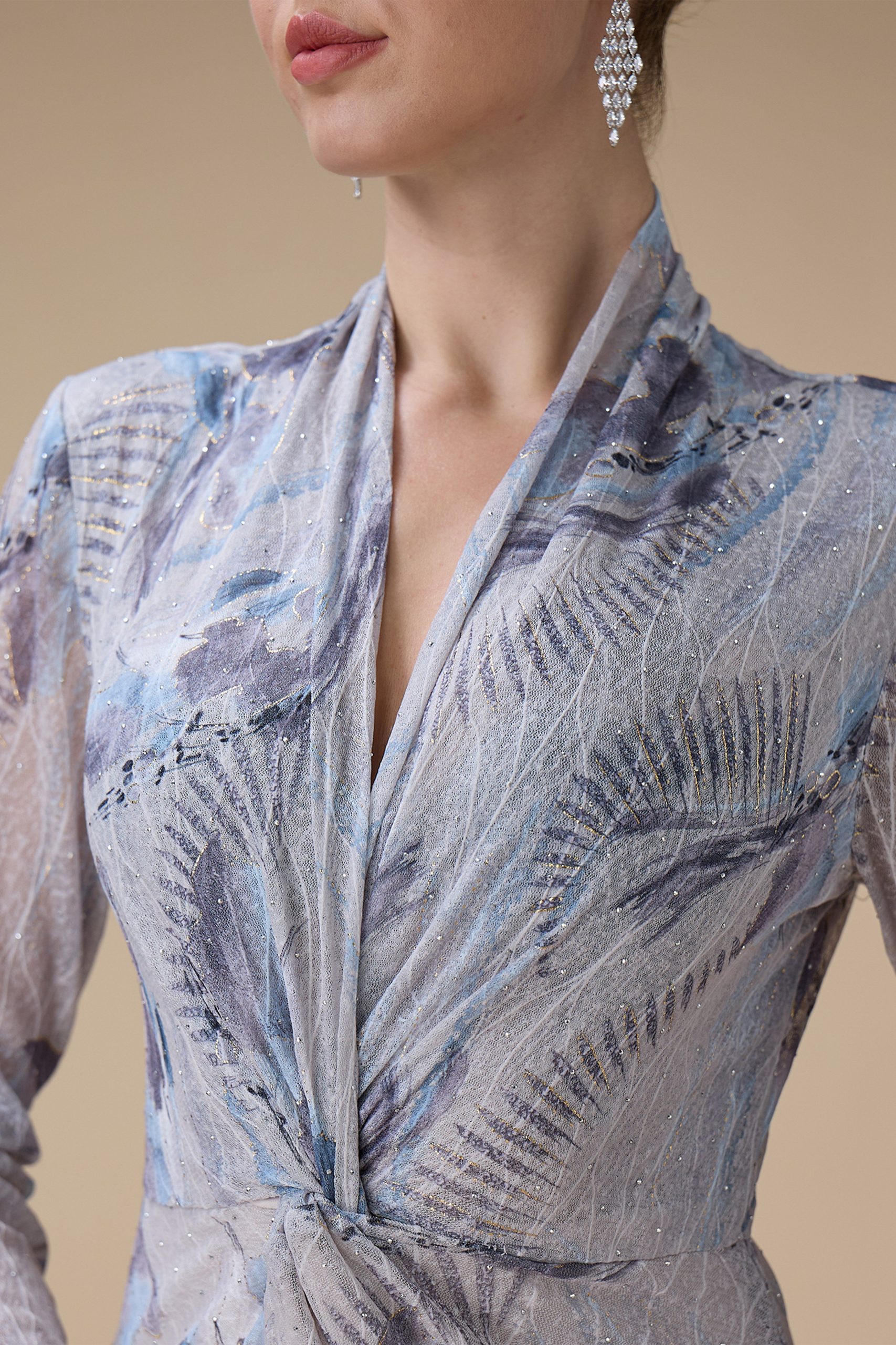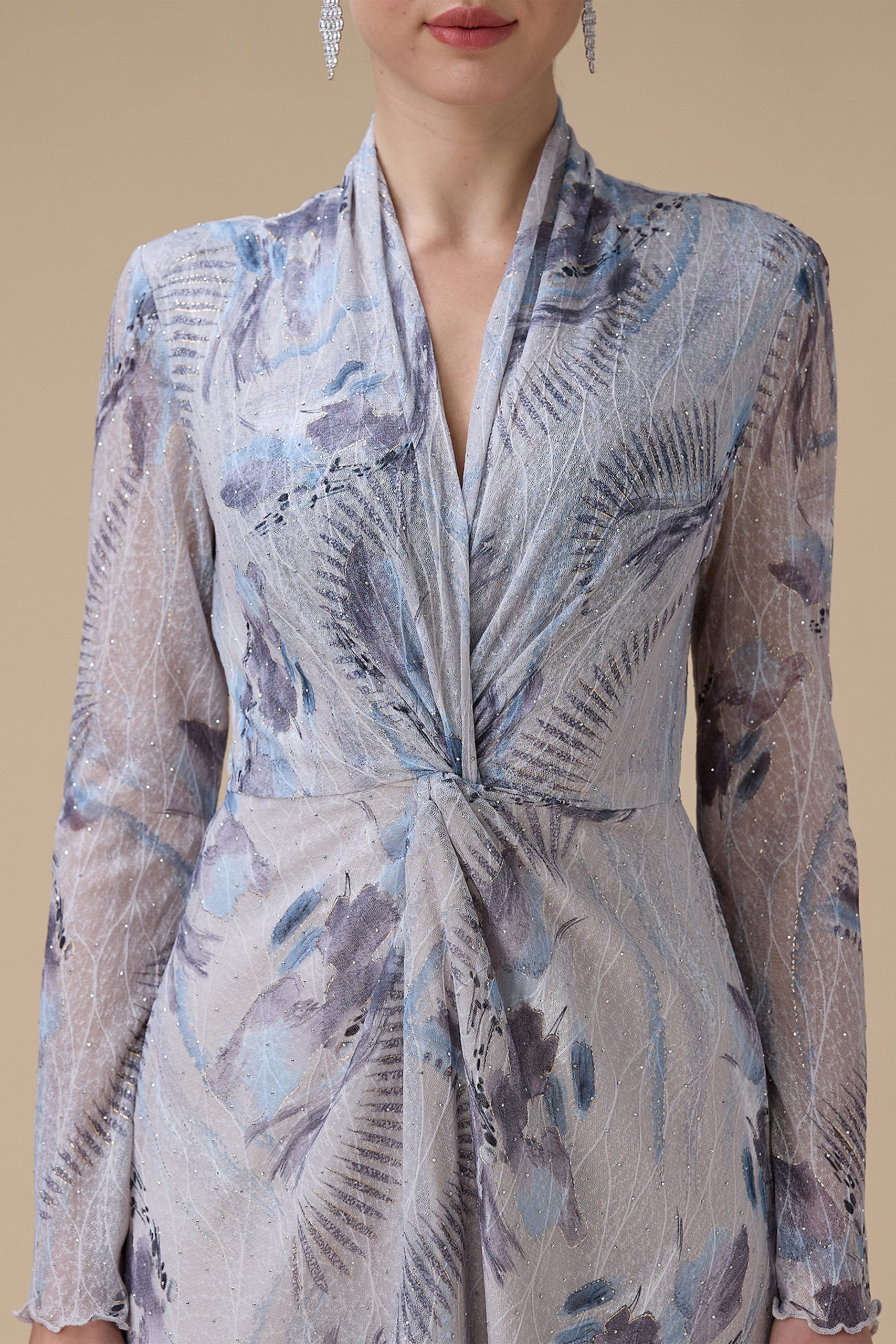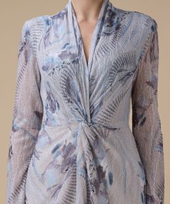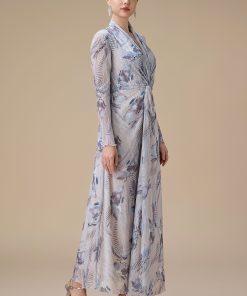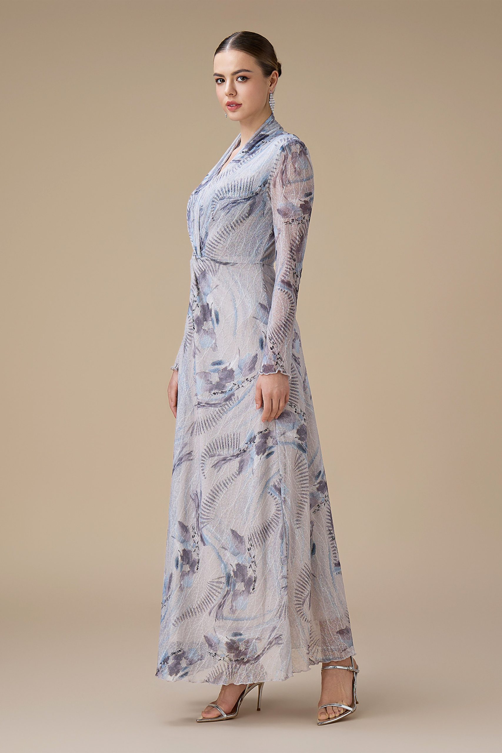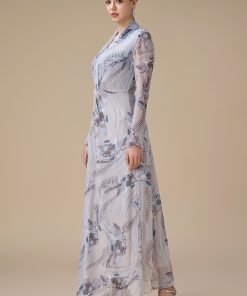 اكتان – فستان رصاصي طويل بأكمام طويلة بطبعة زهور