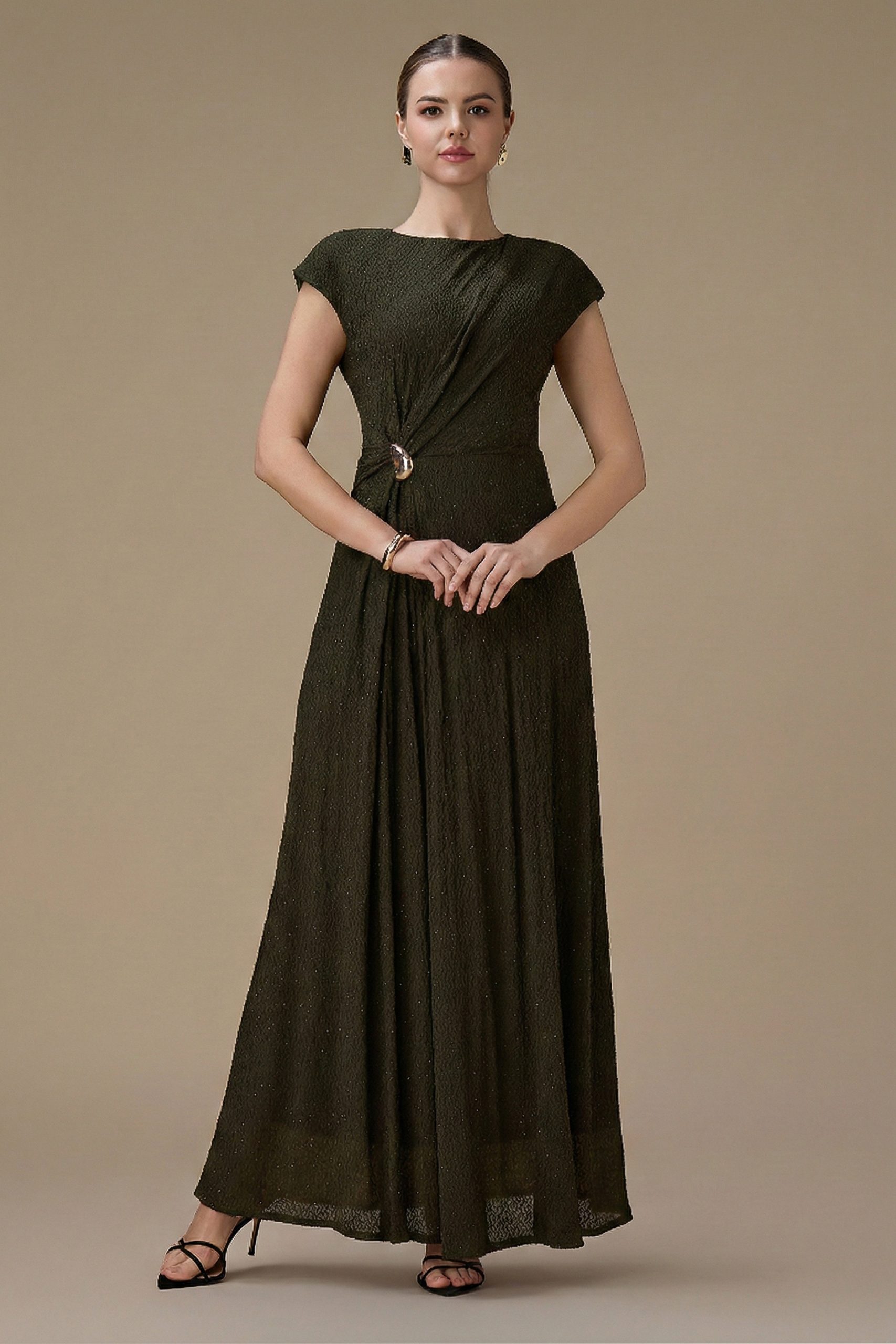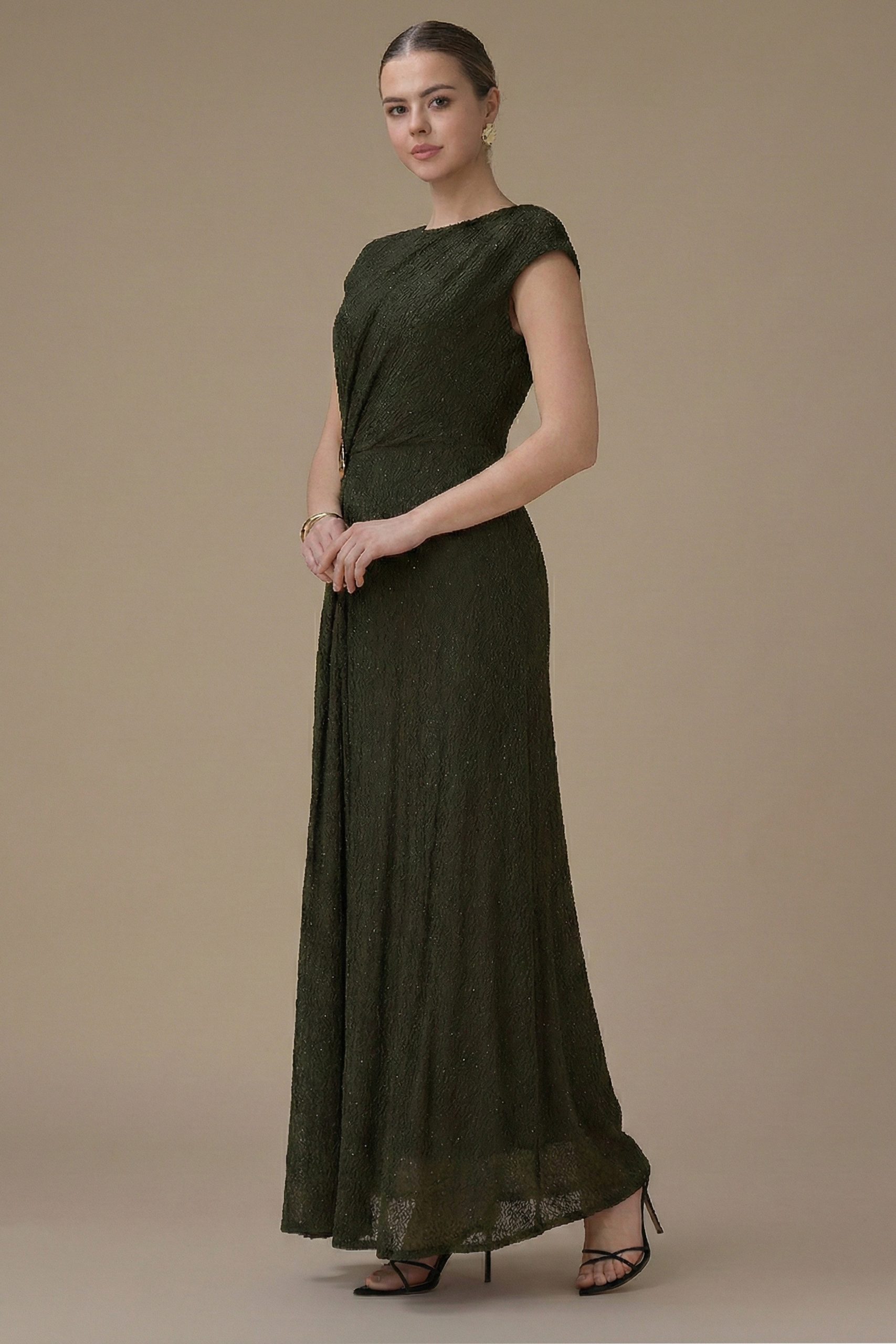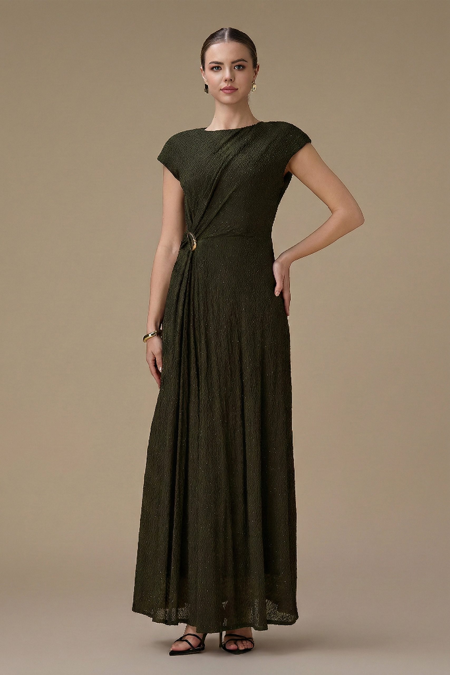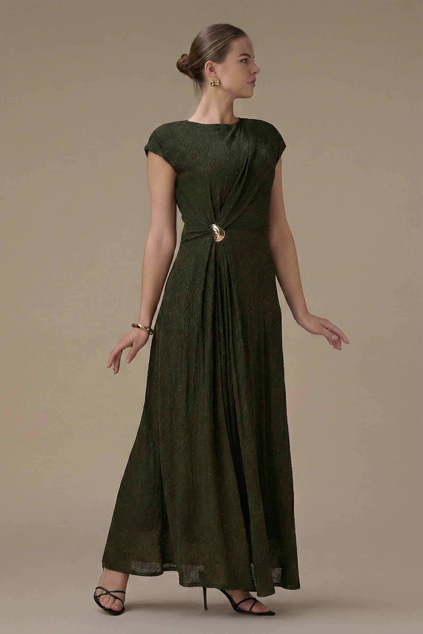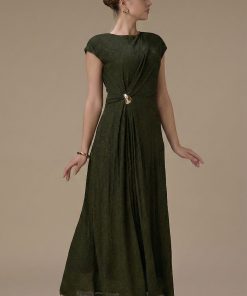 اكتان – فستان طويل اخضر بتفصيلية جانبية