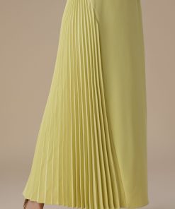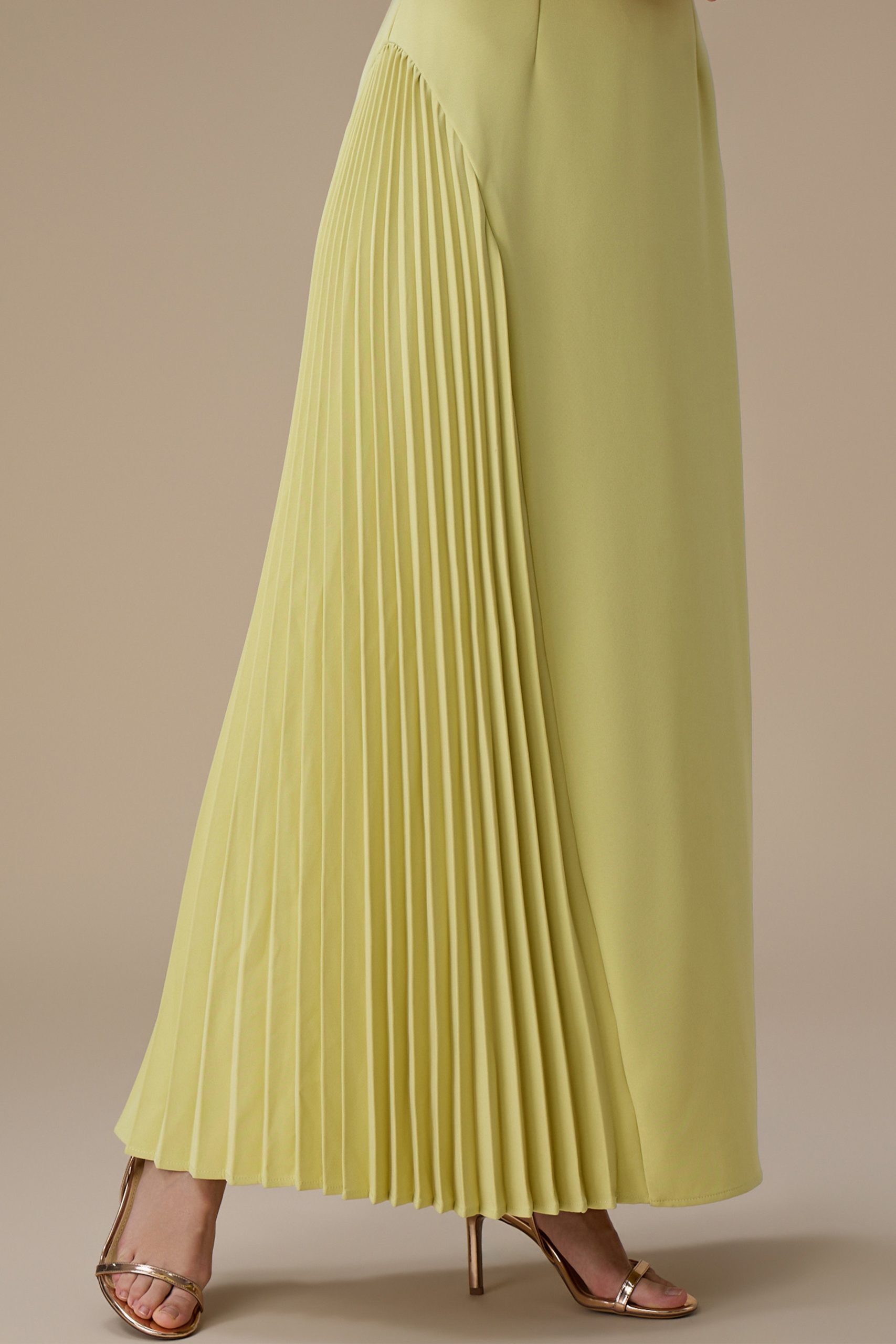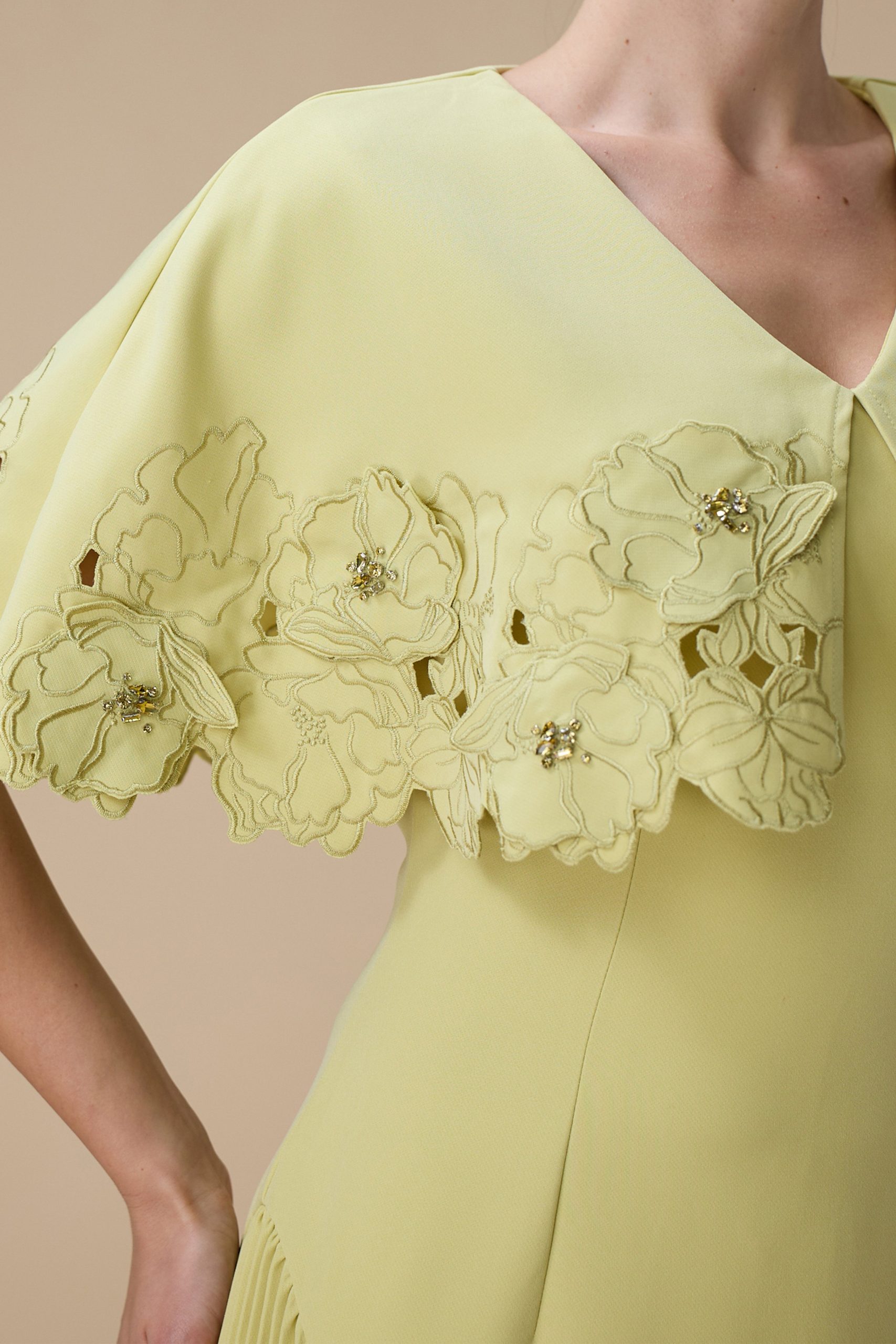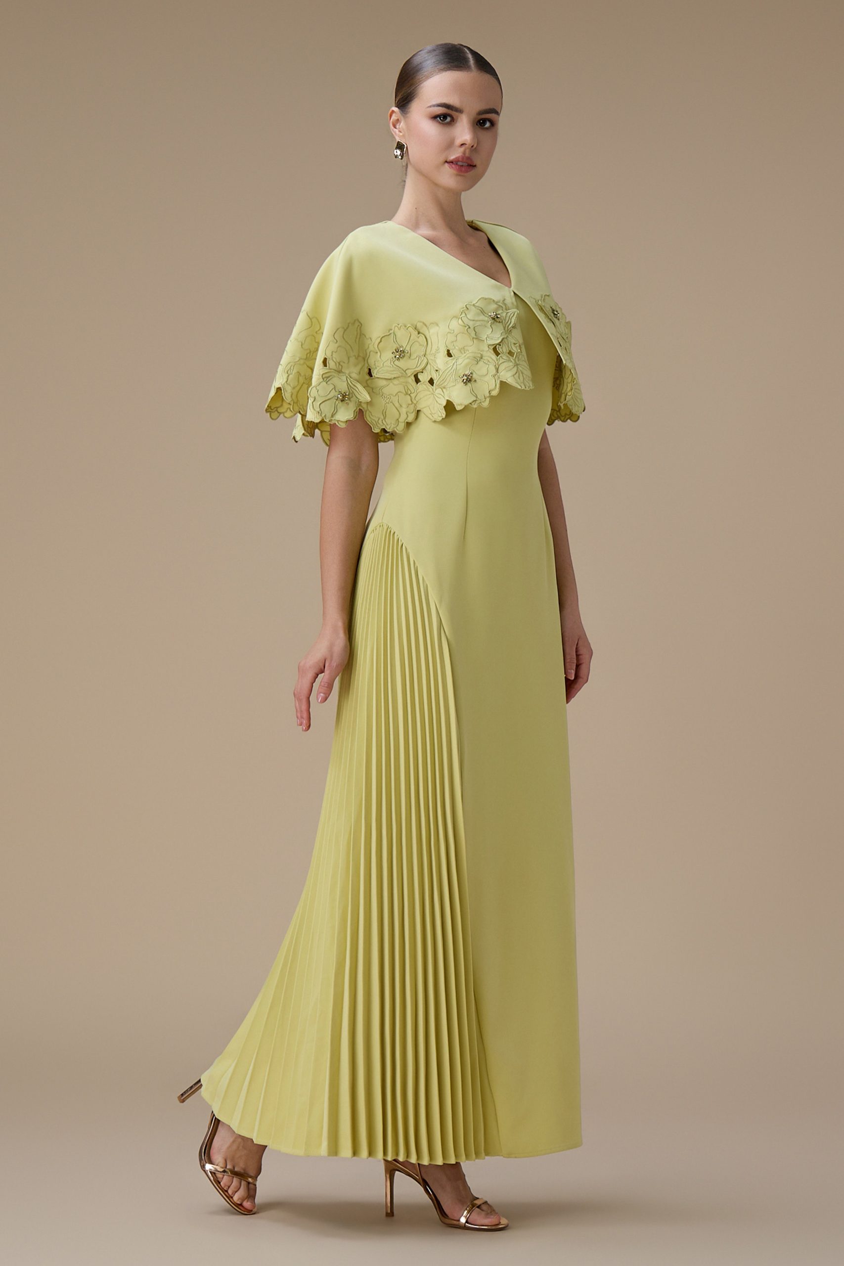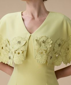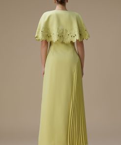 اكتان – فستان طويل اخضر ليموني بتطريزات زهرية