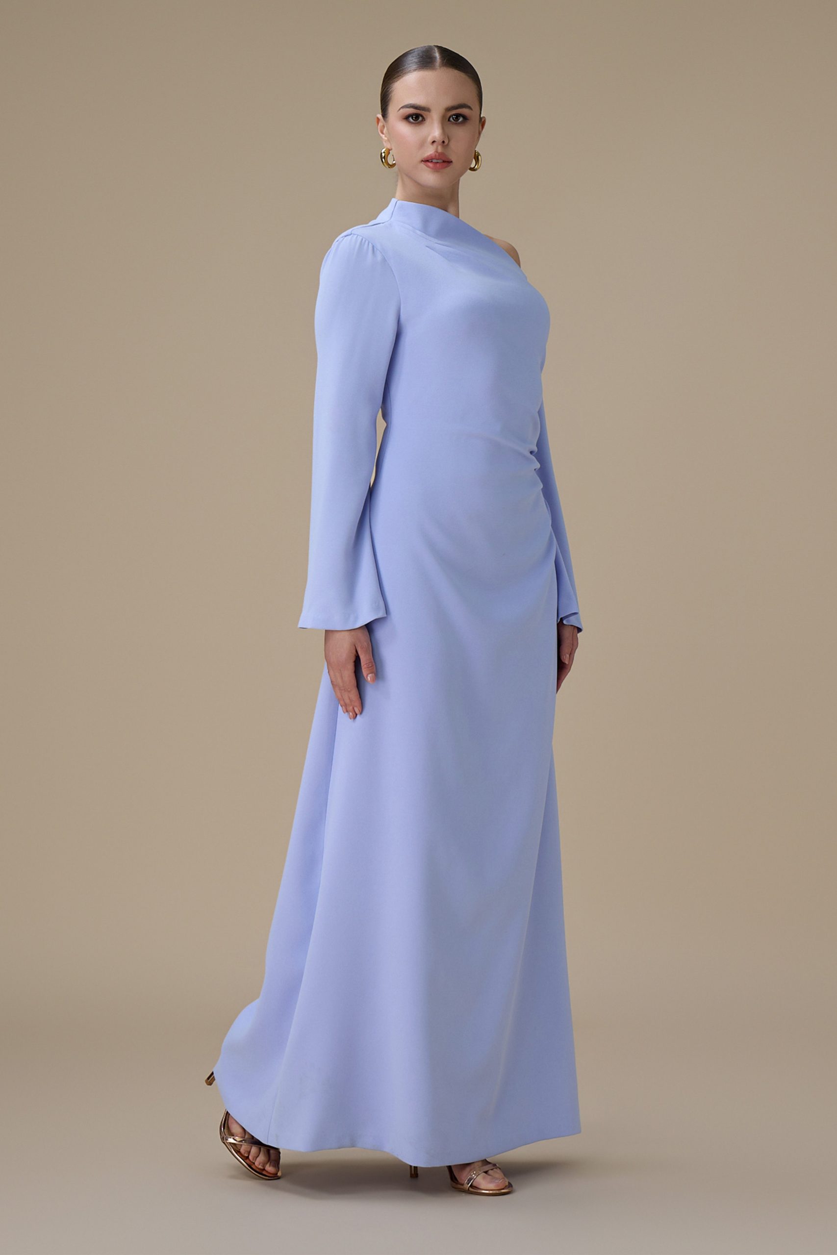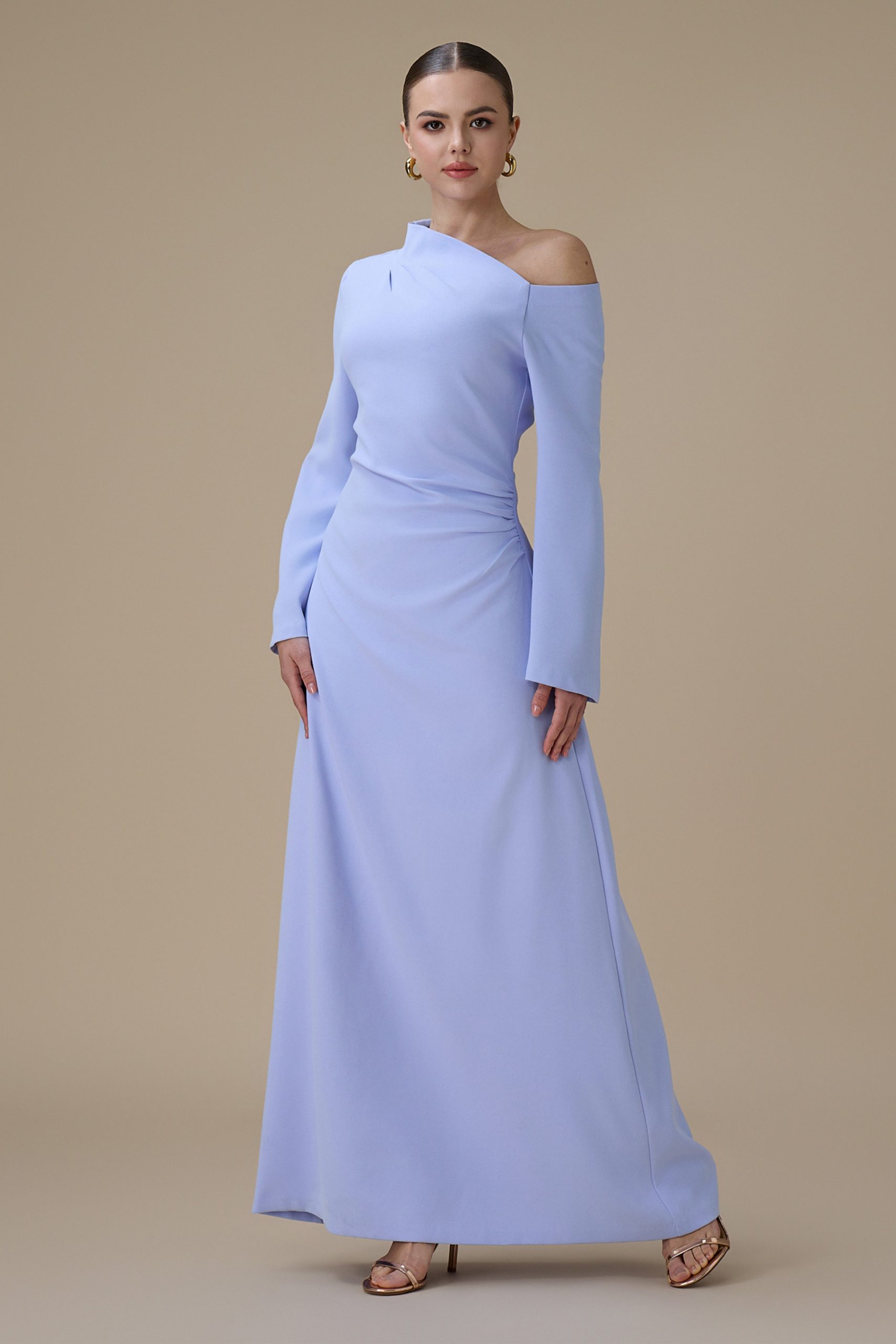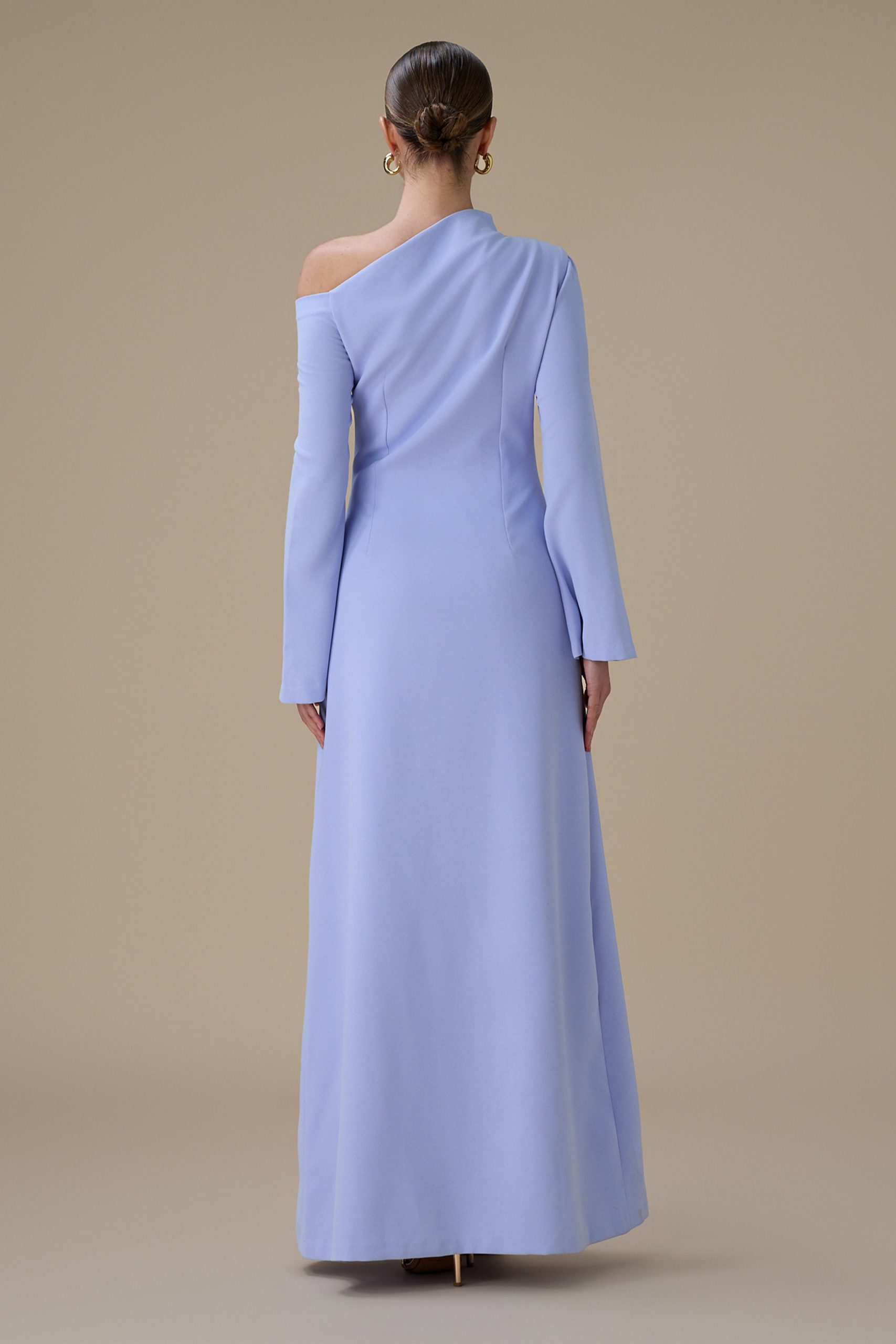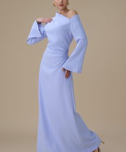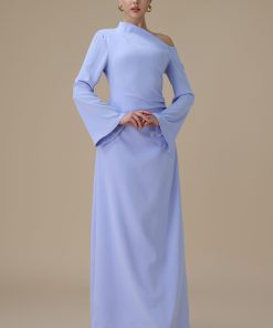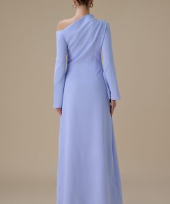 اكتان – فستان طويل ازرق بتصميم كتف واحد