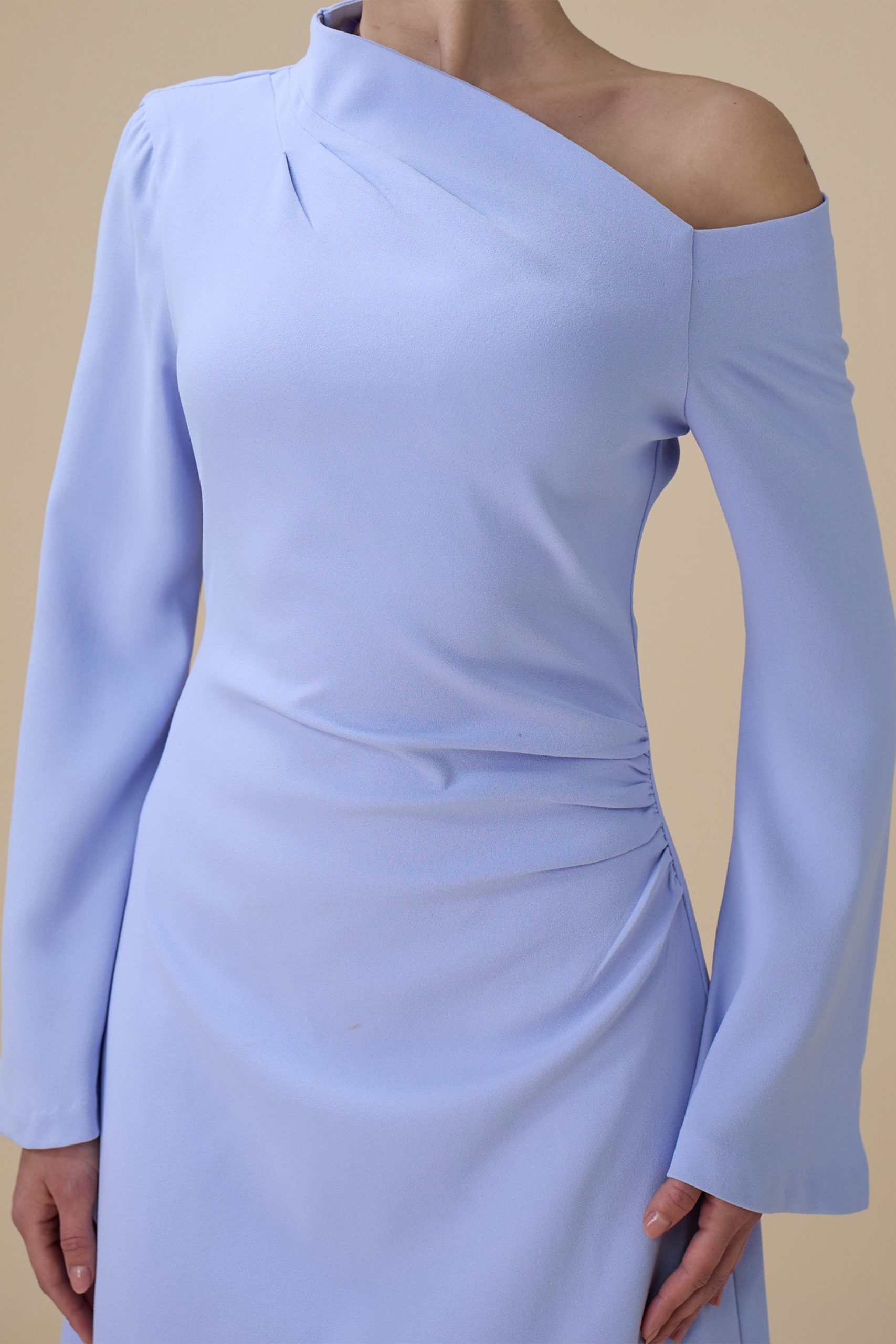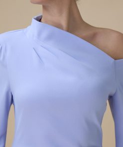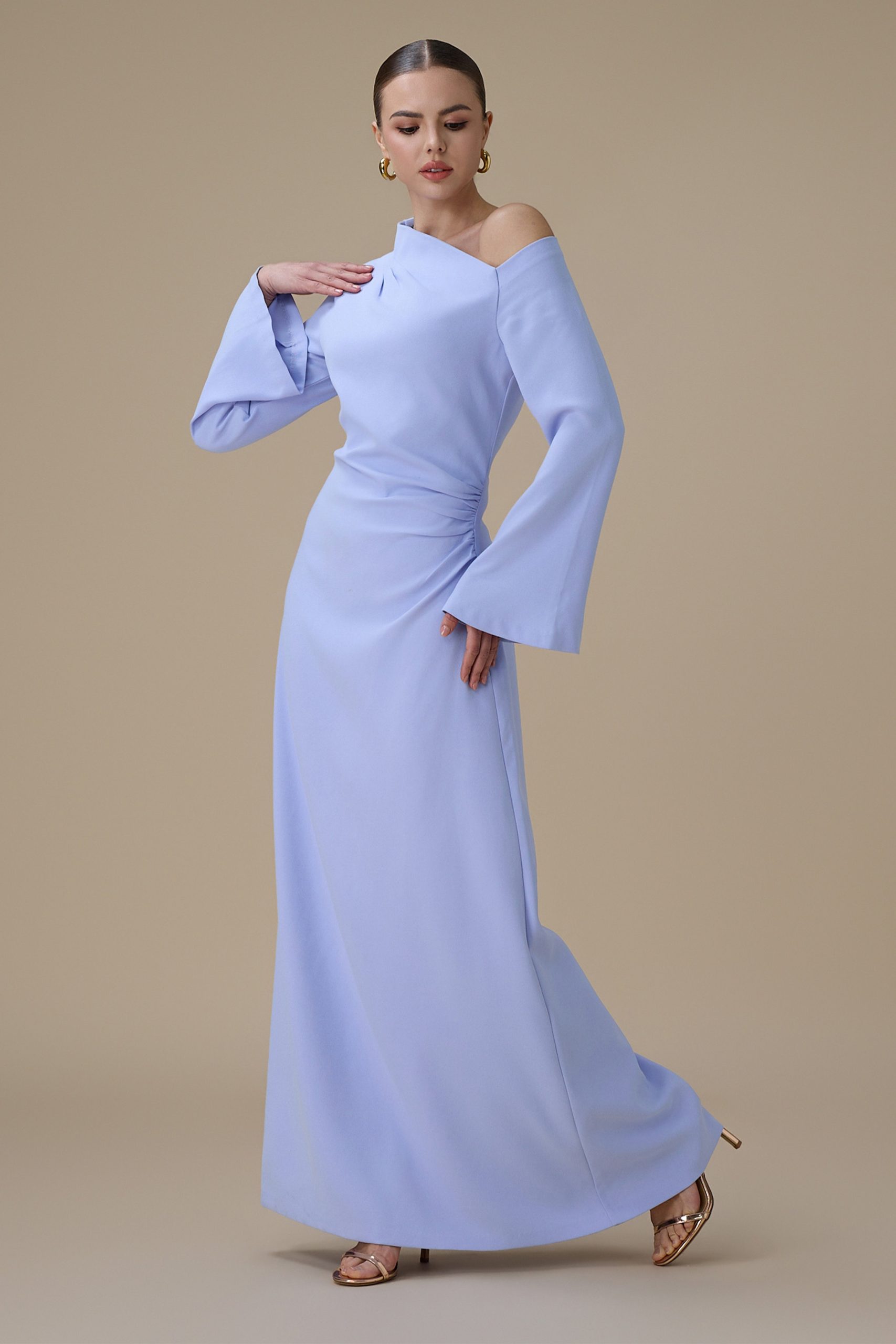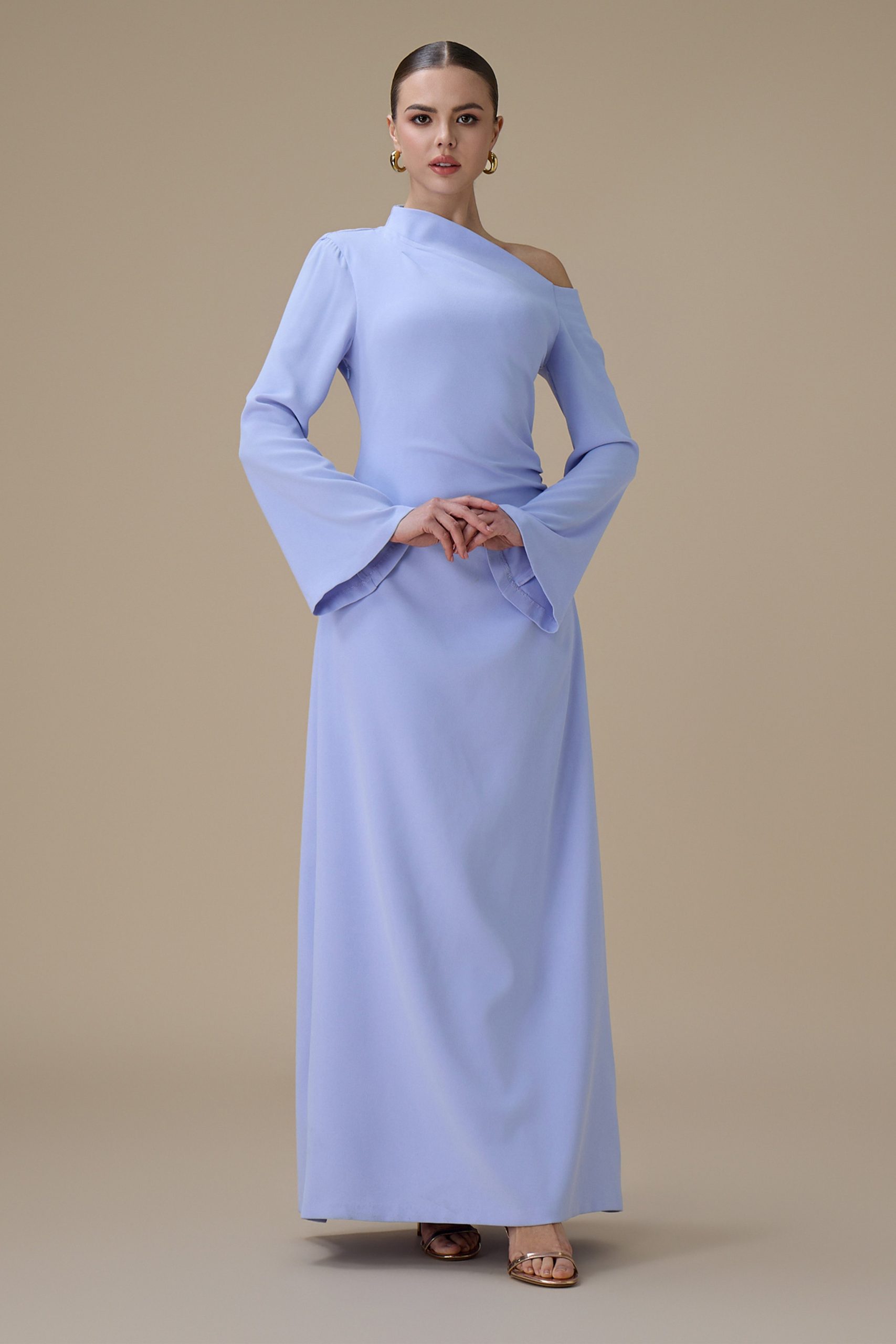 اكتان – فستان طويل ازرق بتصميم كتف واحد