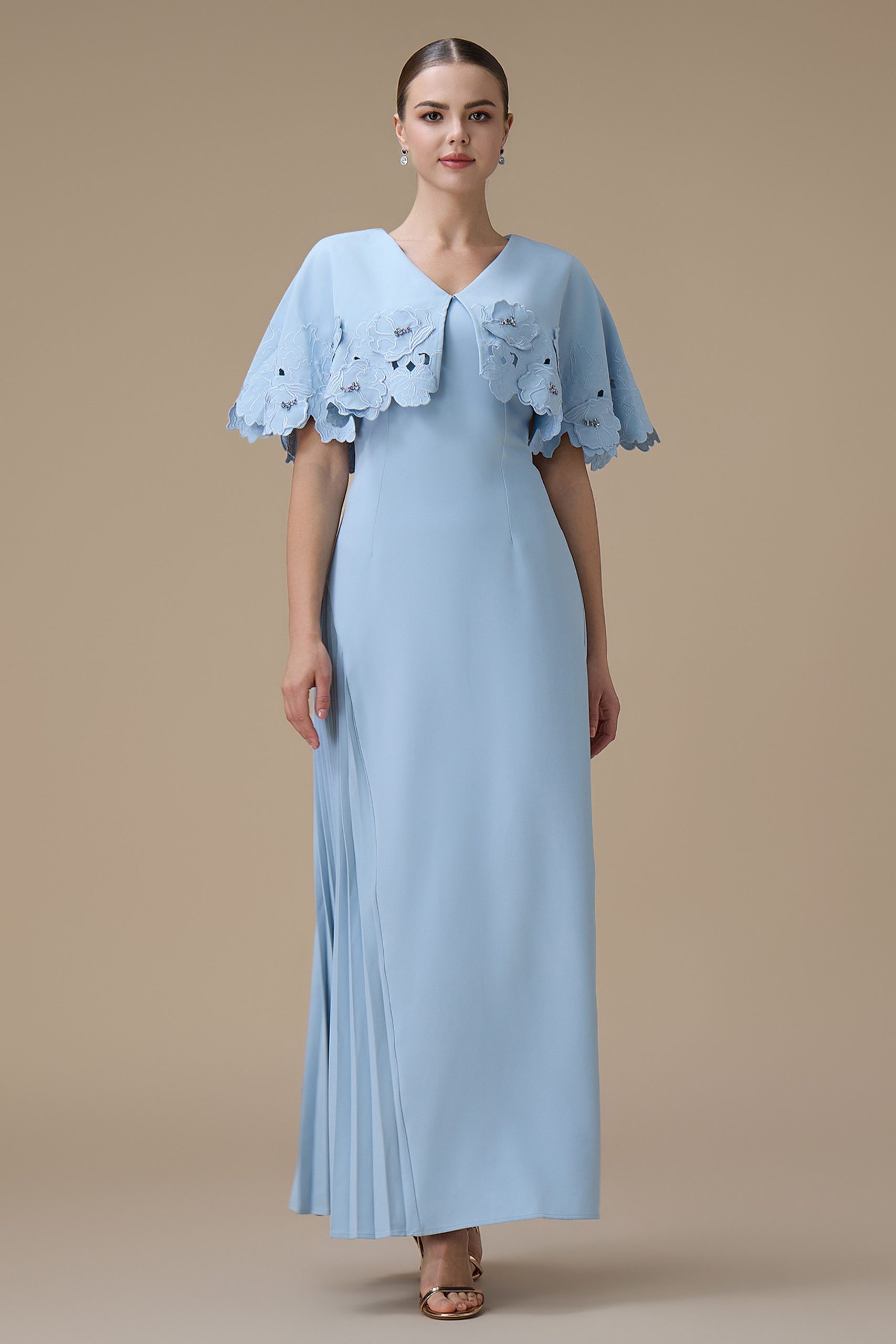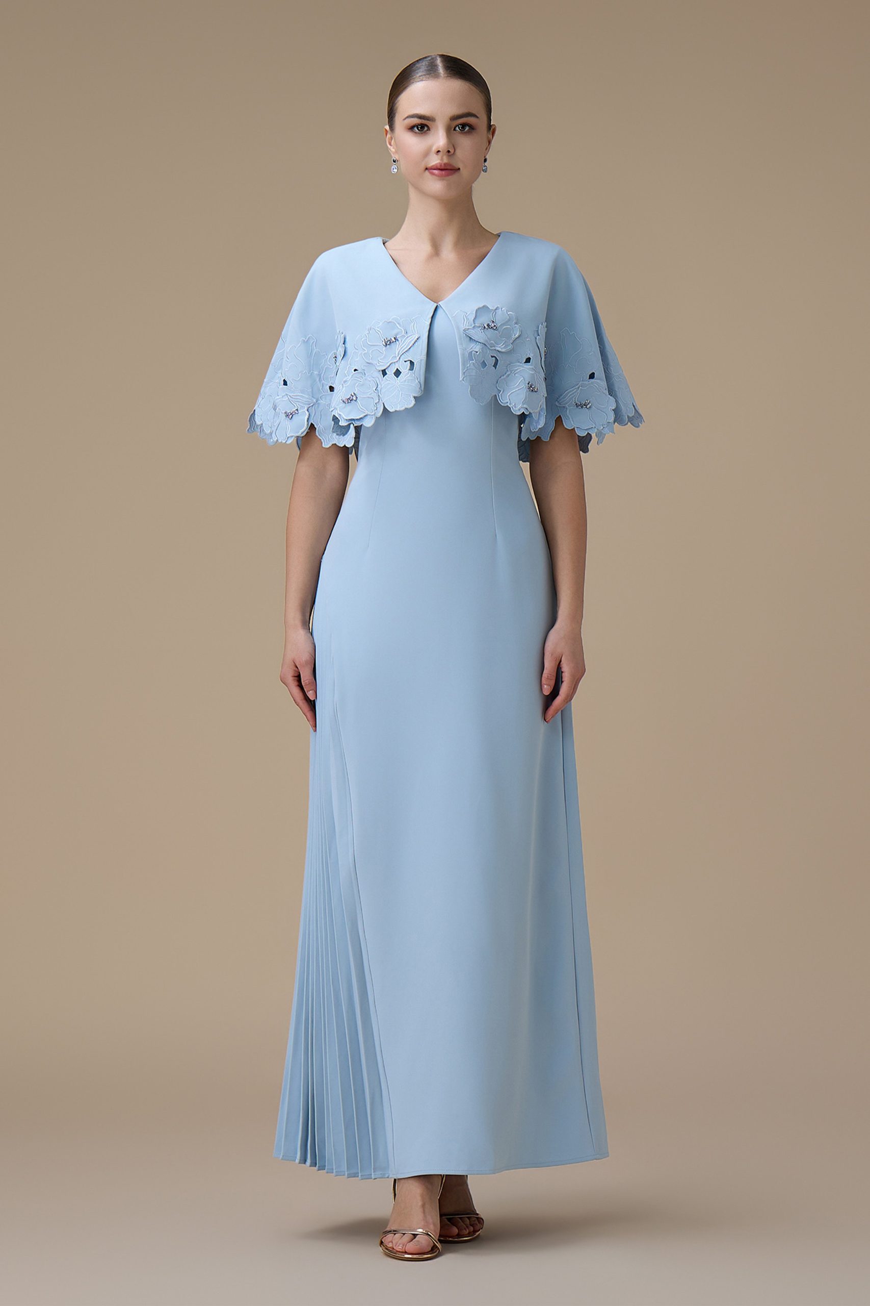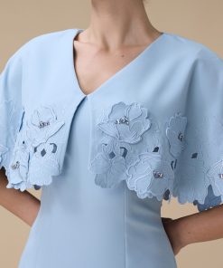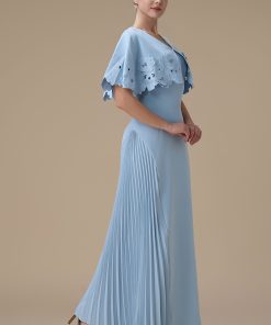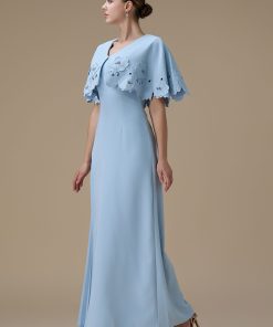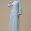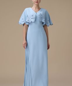 اكتان – فستان طويل ازرق بتطريزات زهرية