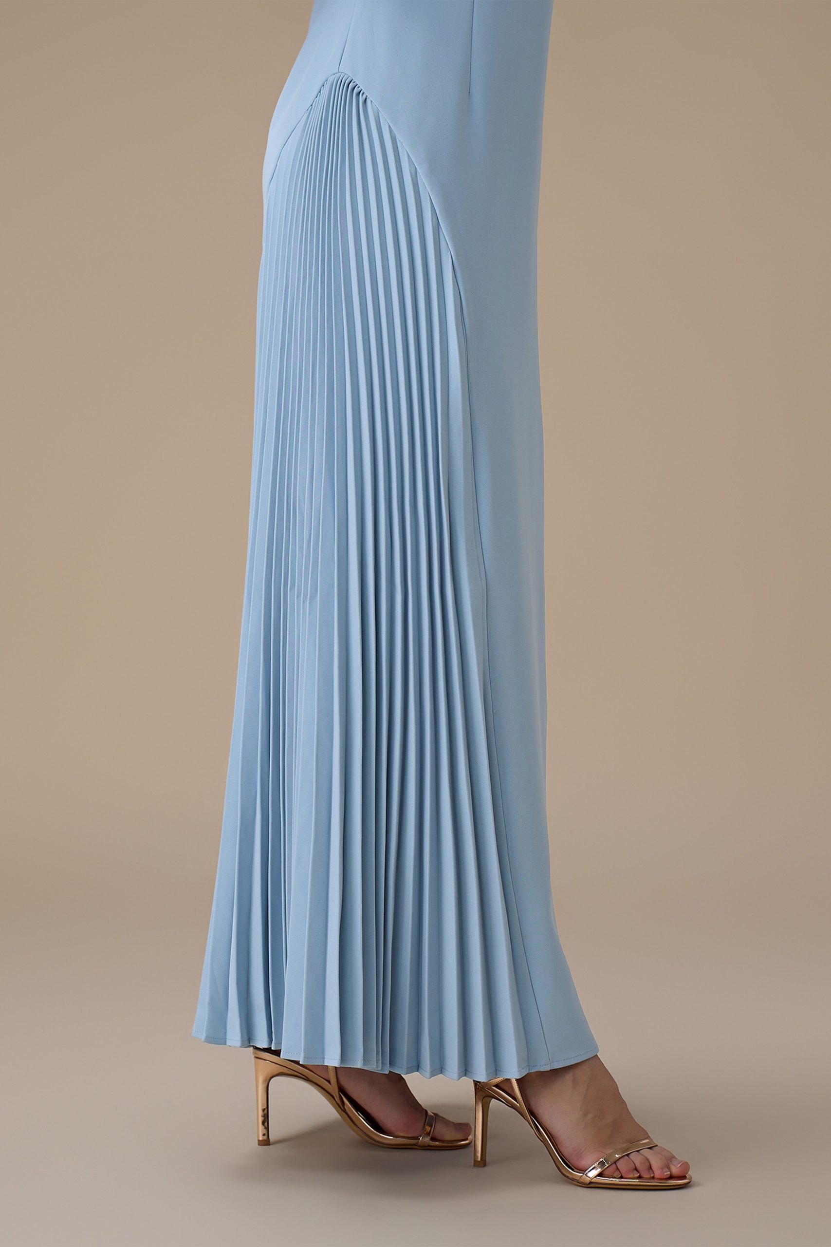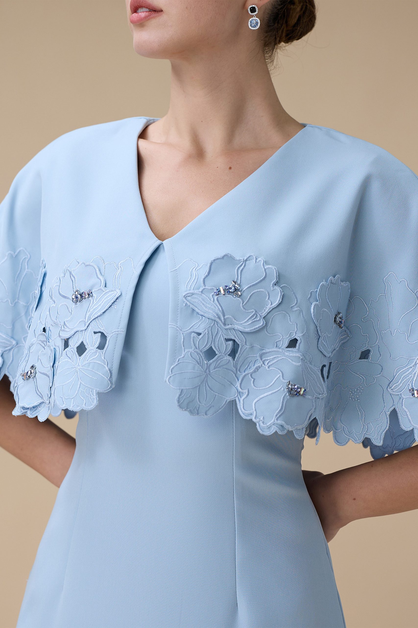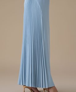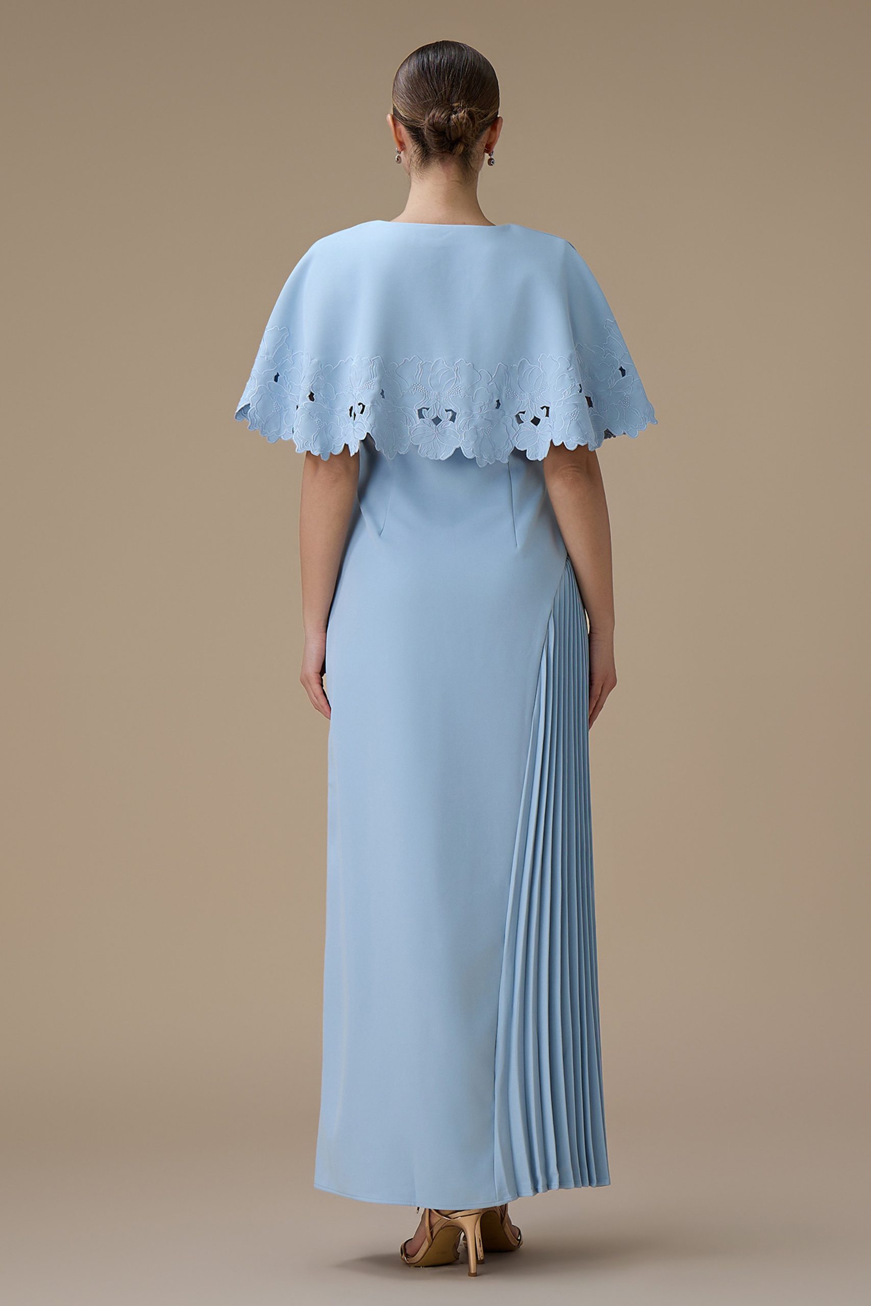 اكتان – فستان طويل ازرق بتطريزات زهرية