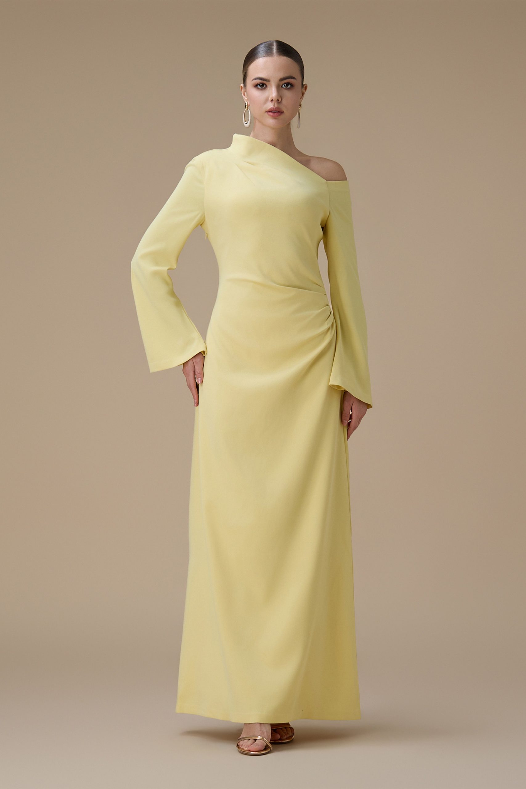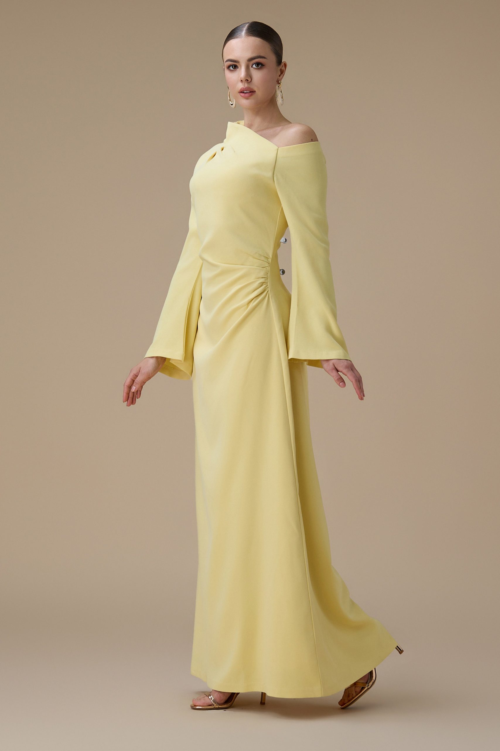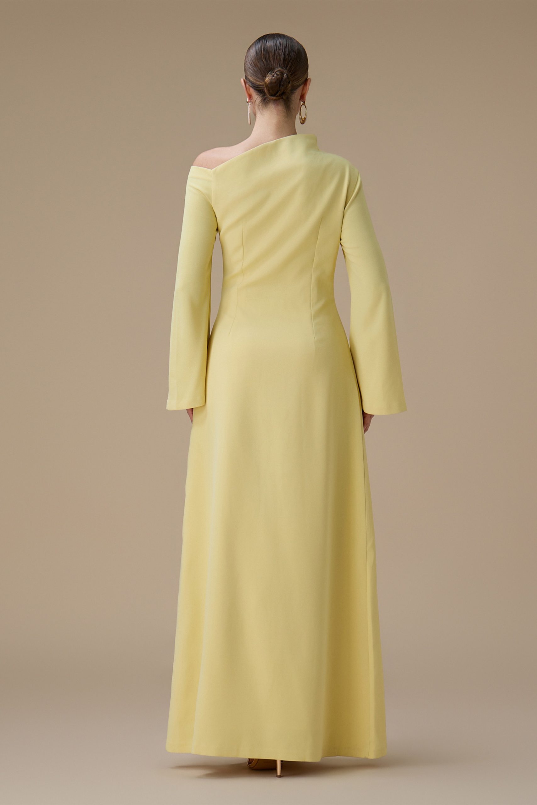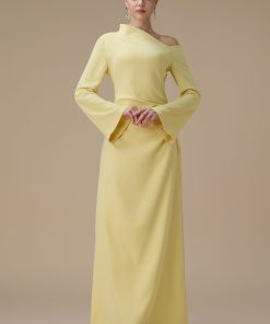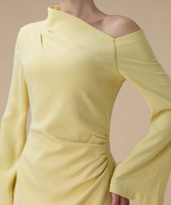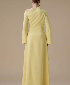 اكتان – فستان طويل اصفر بتصميم كتف واحد