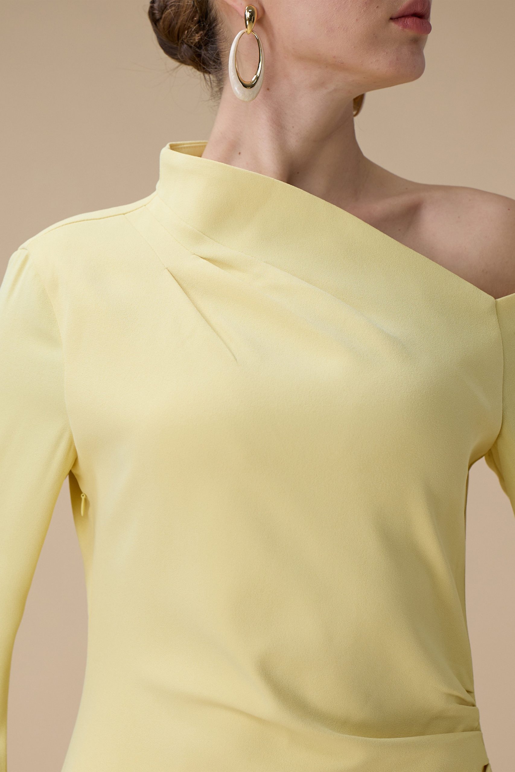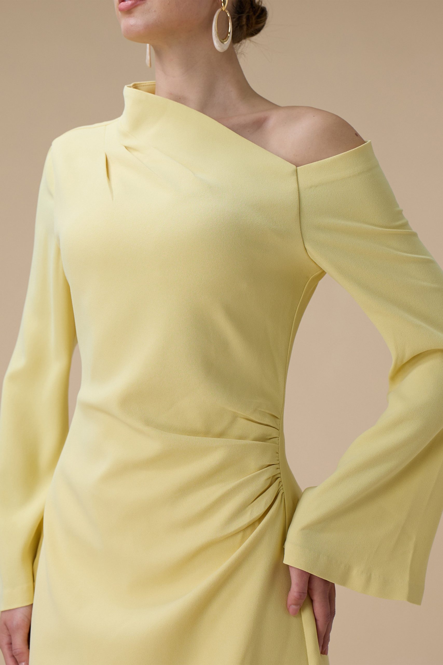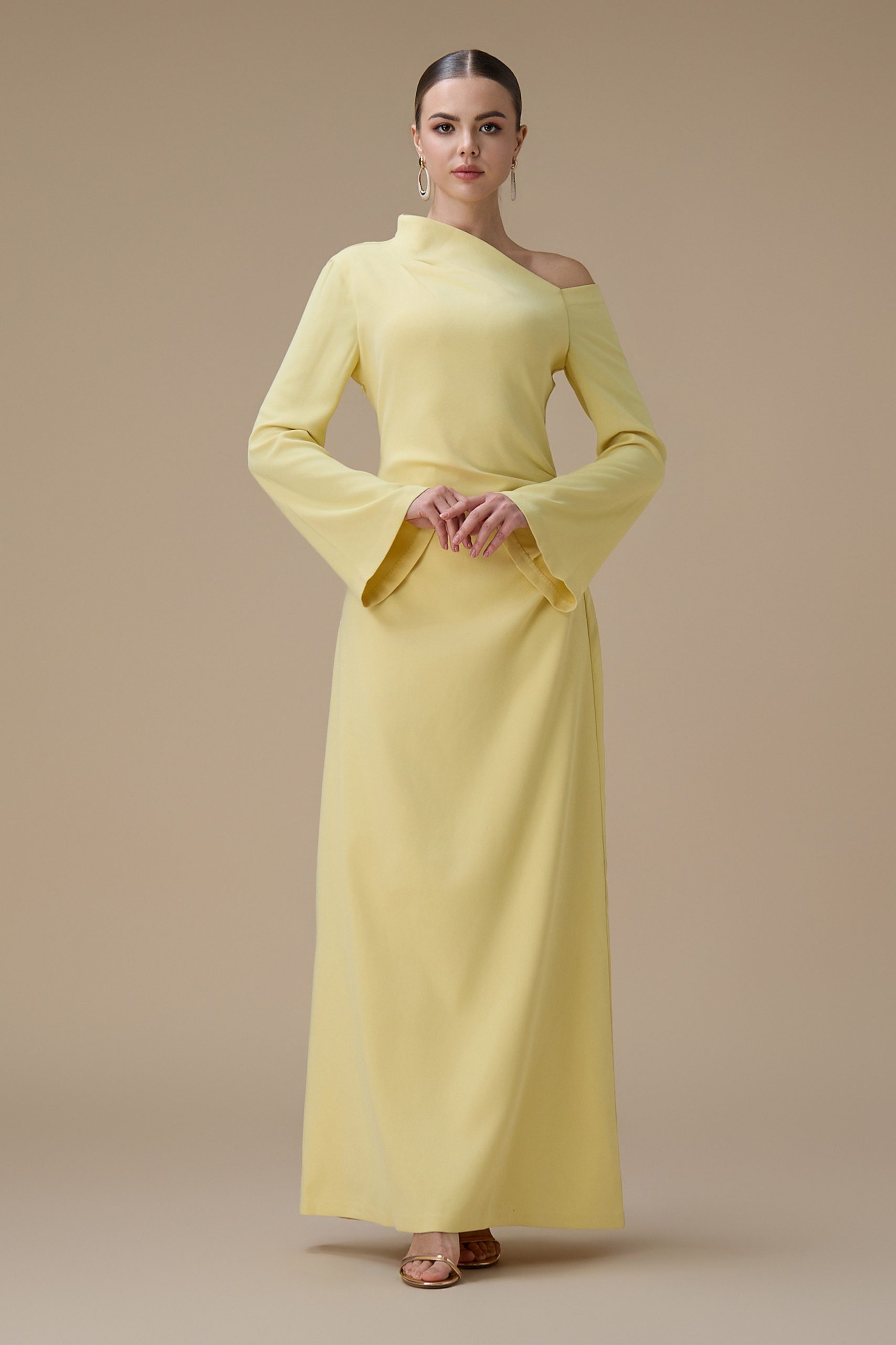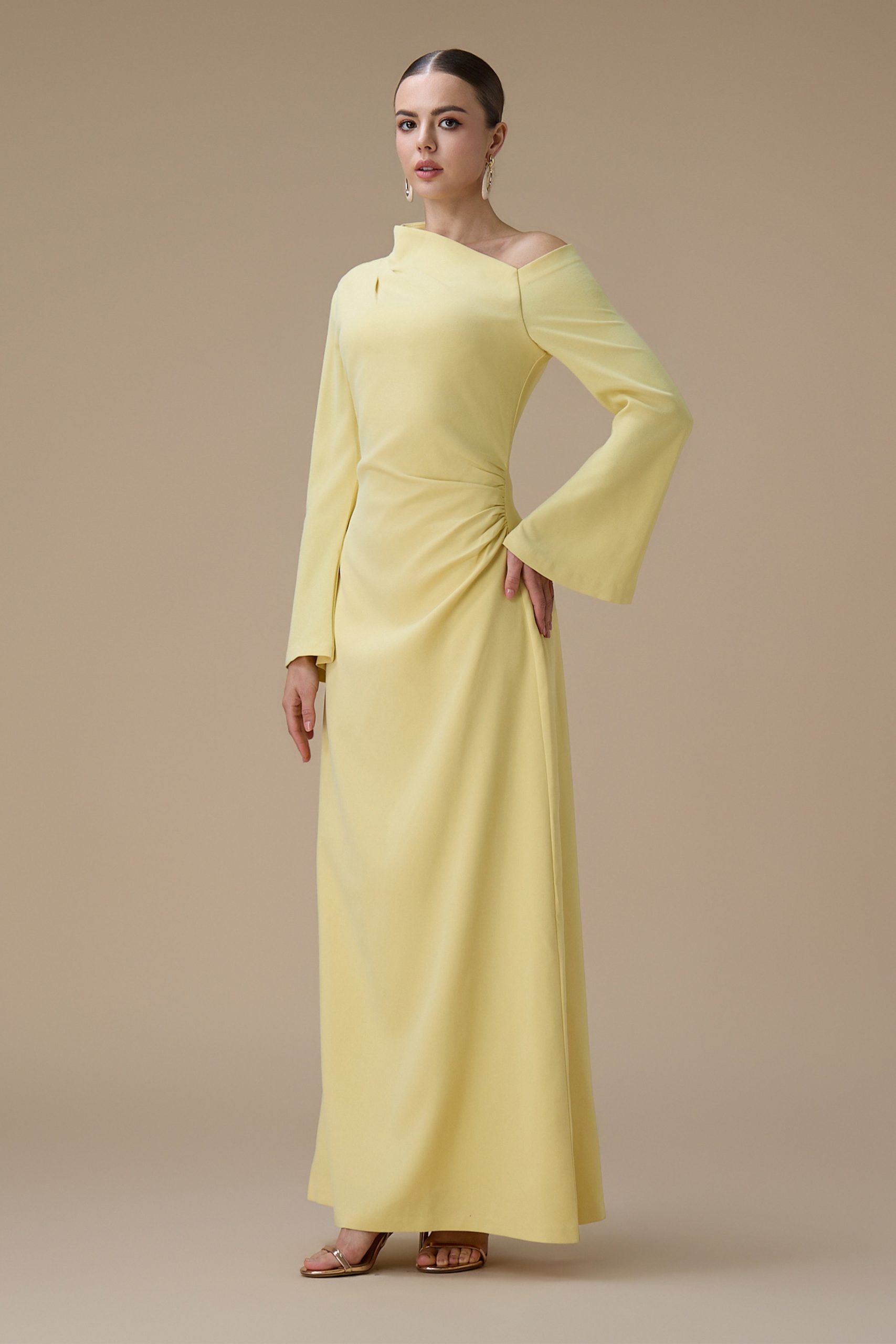 اكتان – فستان طويل اصفر بتصميم كتف واحد