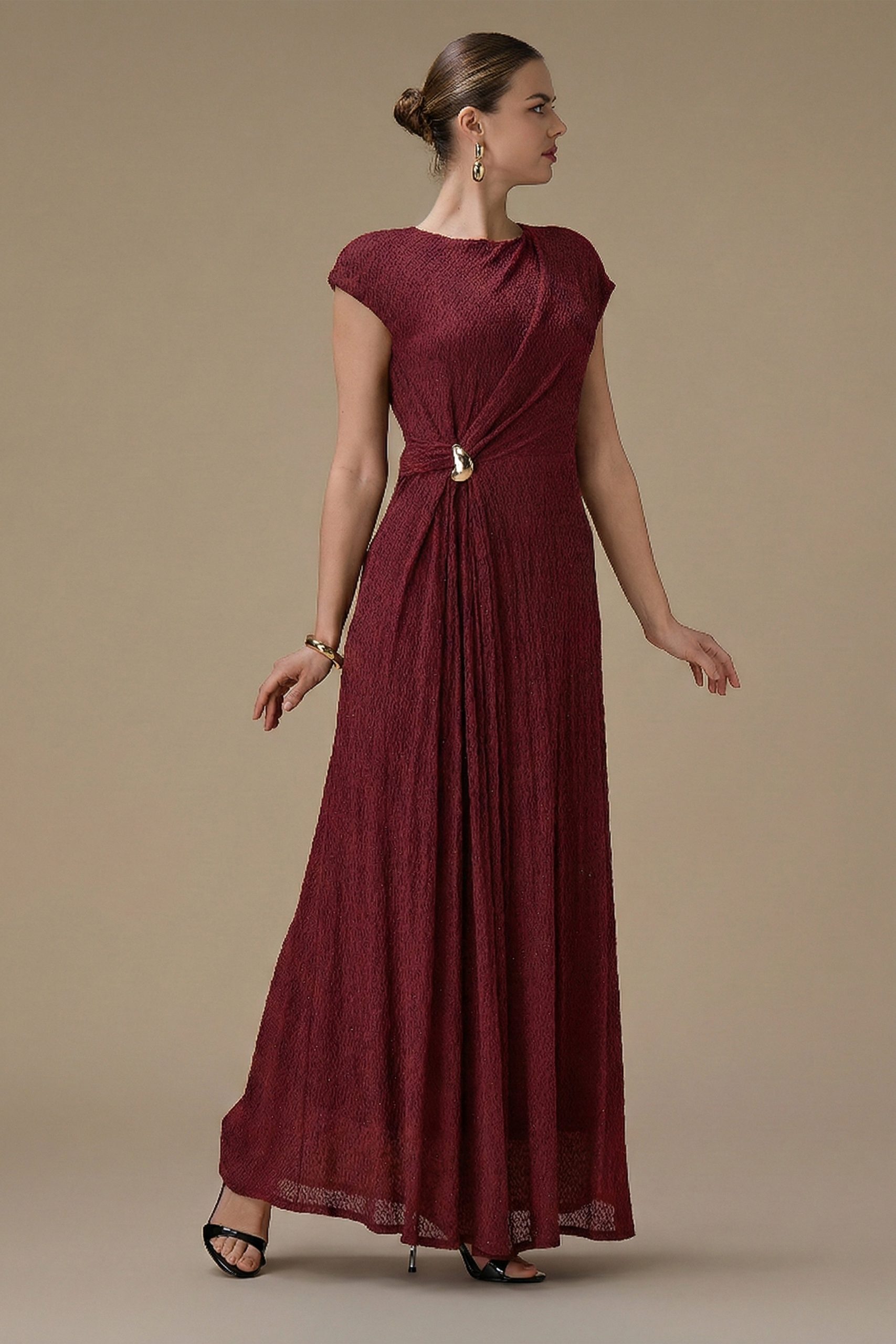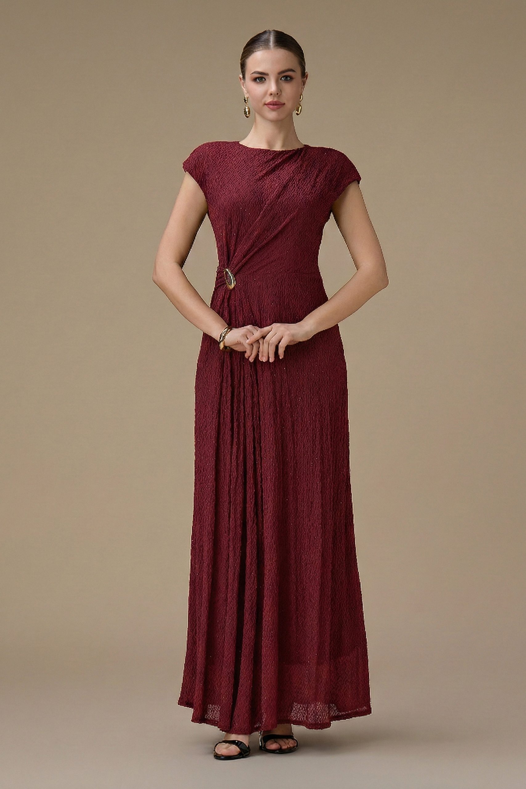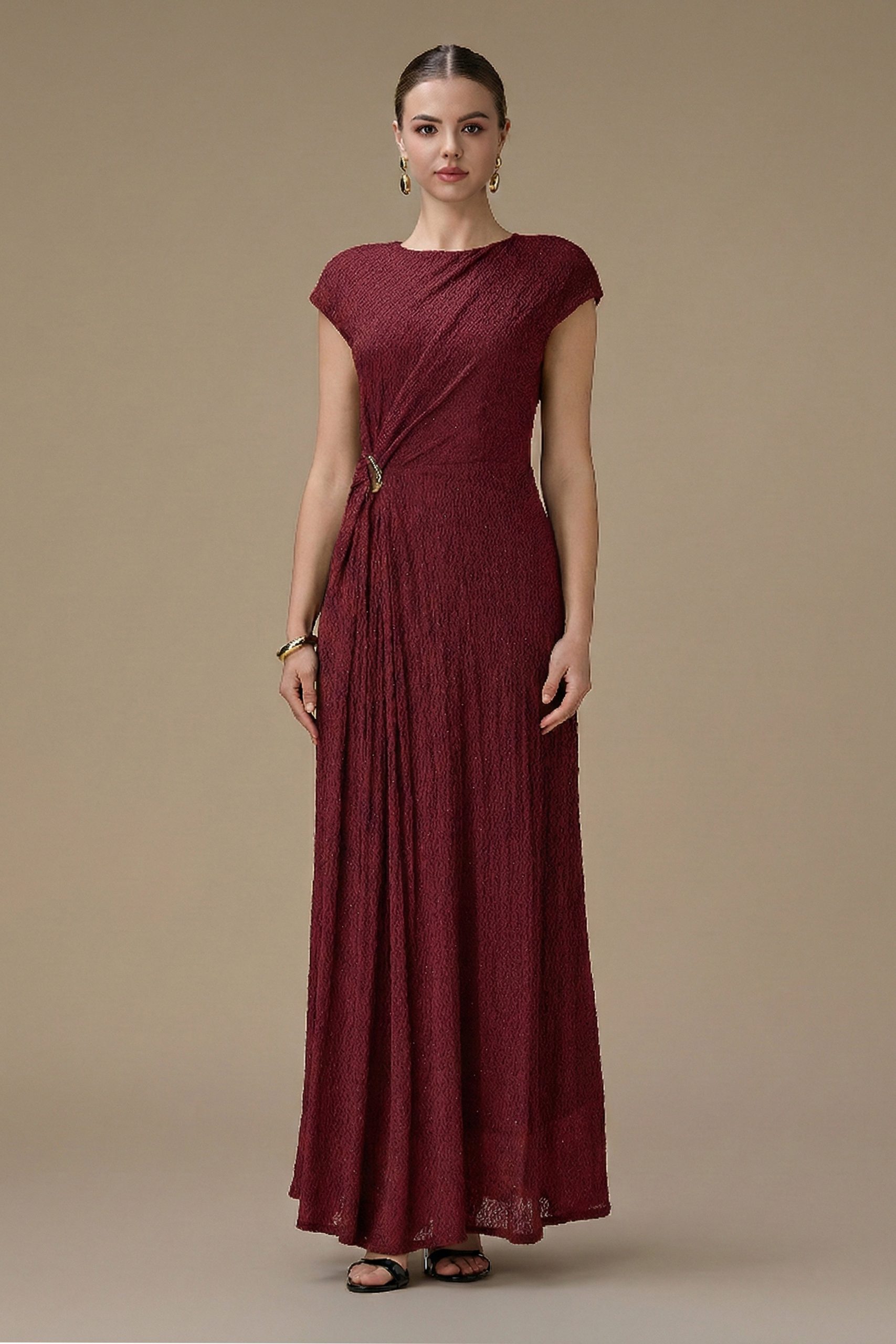 اكتان – فستان طويل برغندي بتفصيلية جانبية
