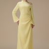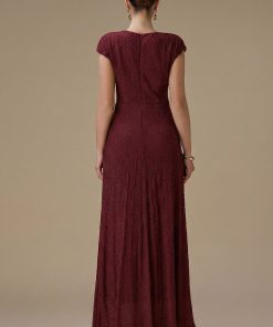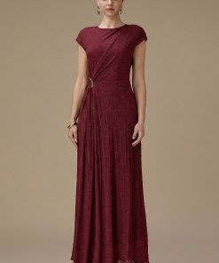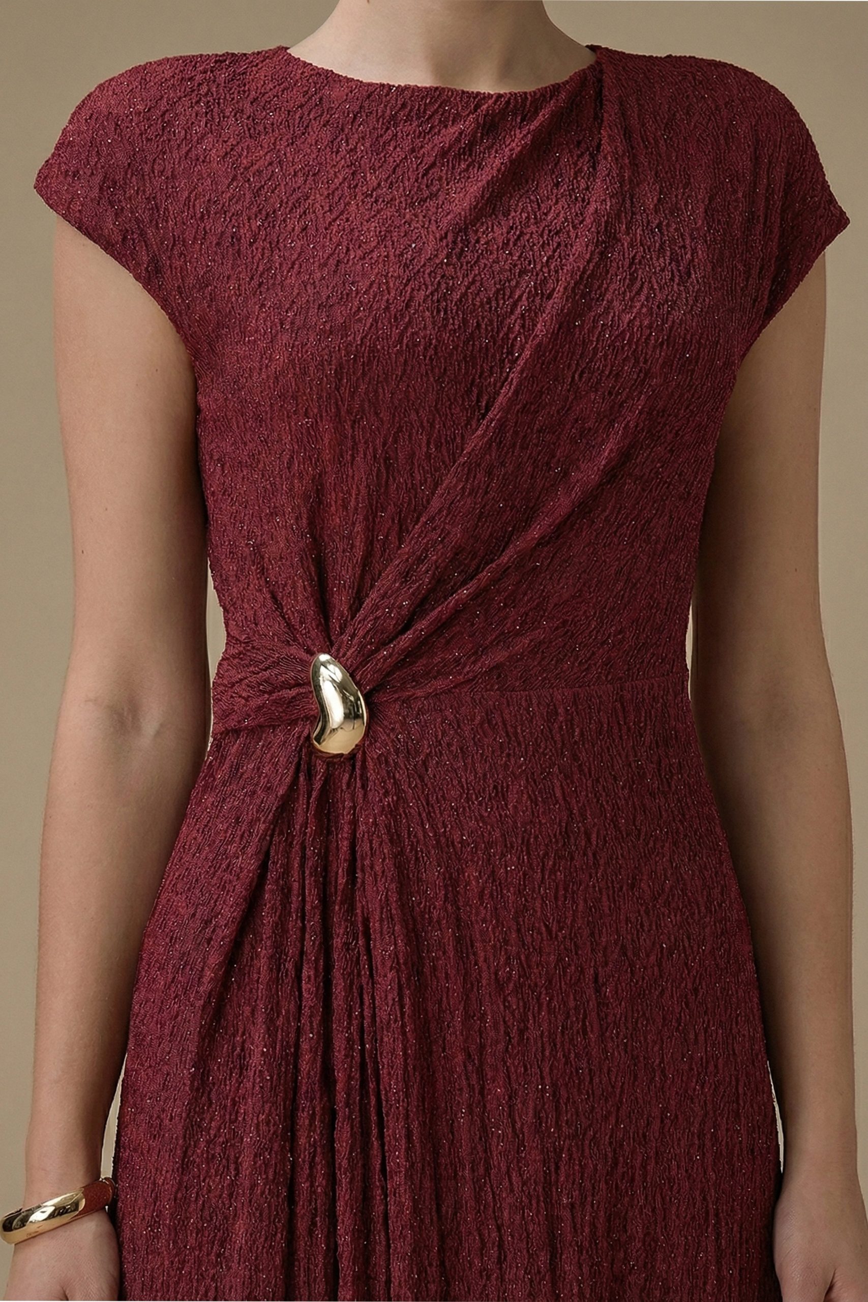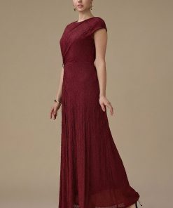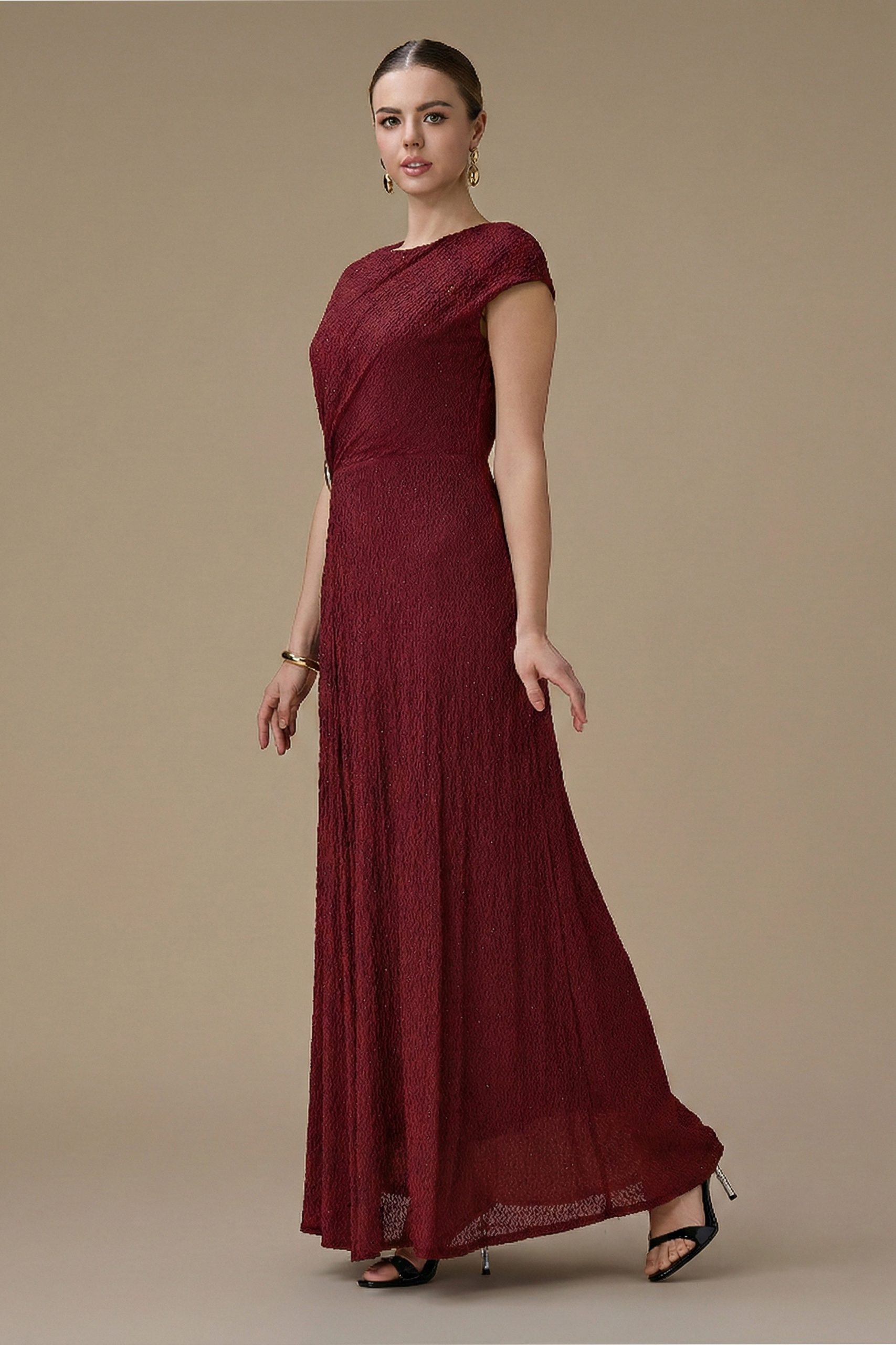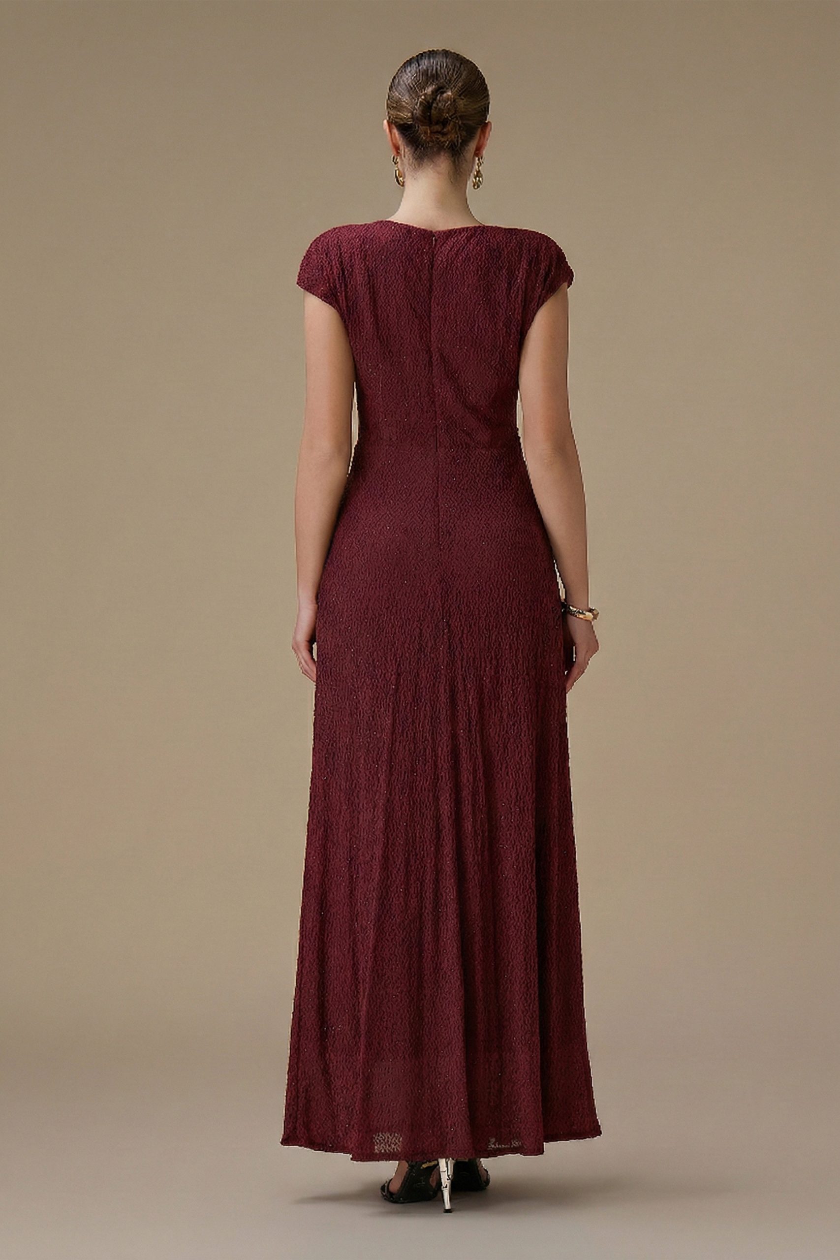 اكتان – فستان طويل برغندي بتفصيلية جانبية
