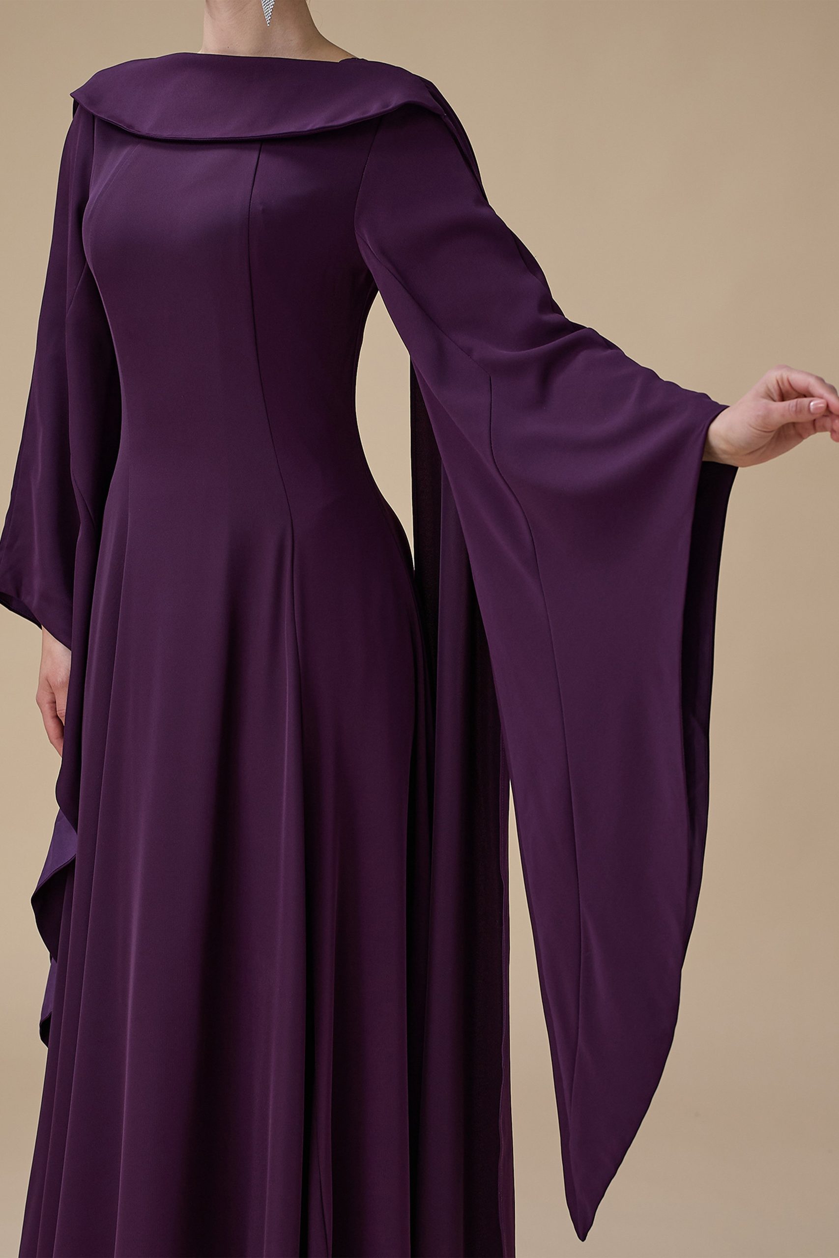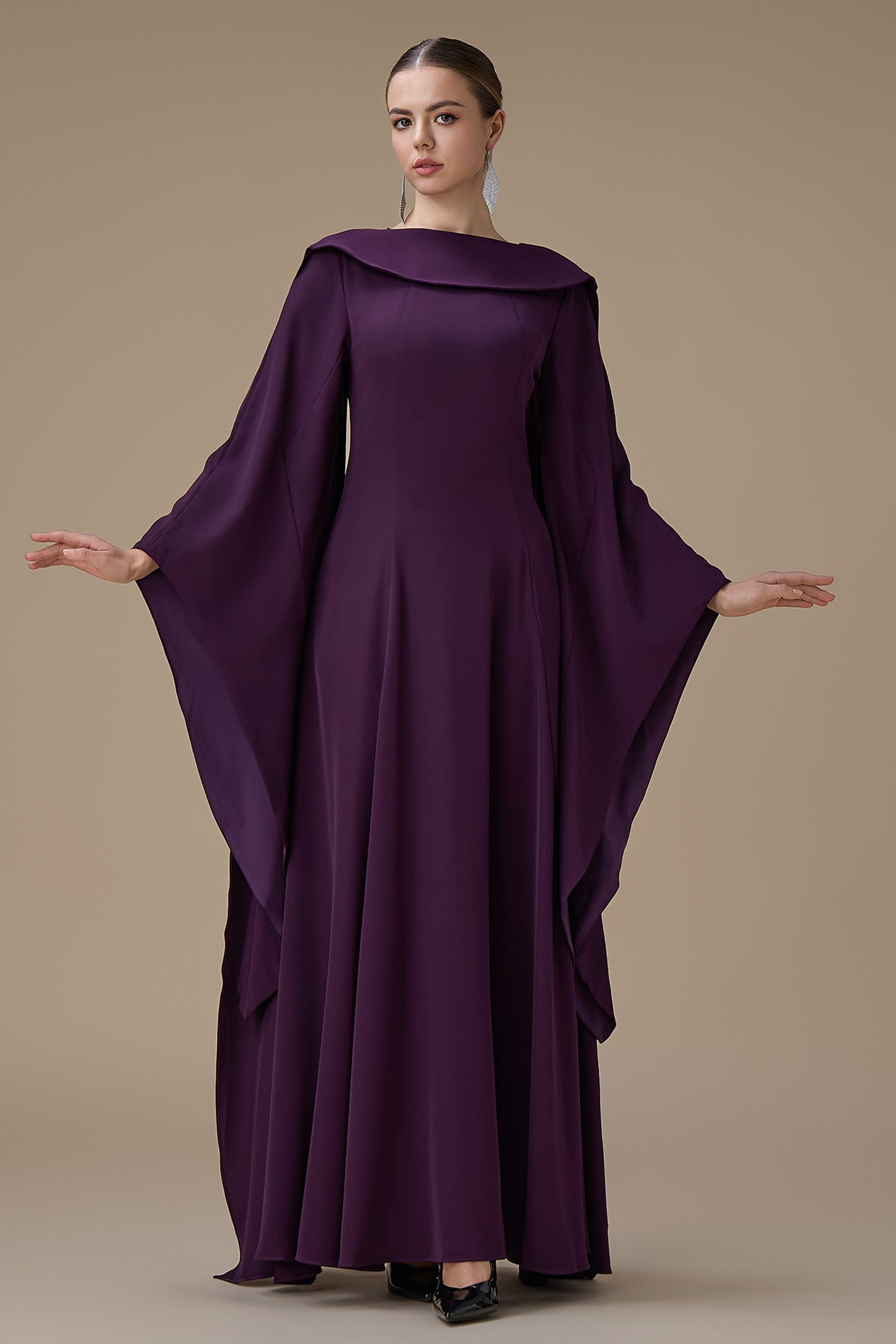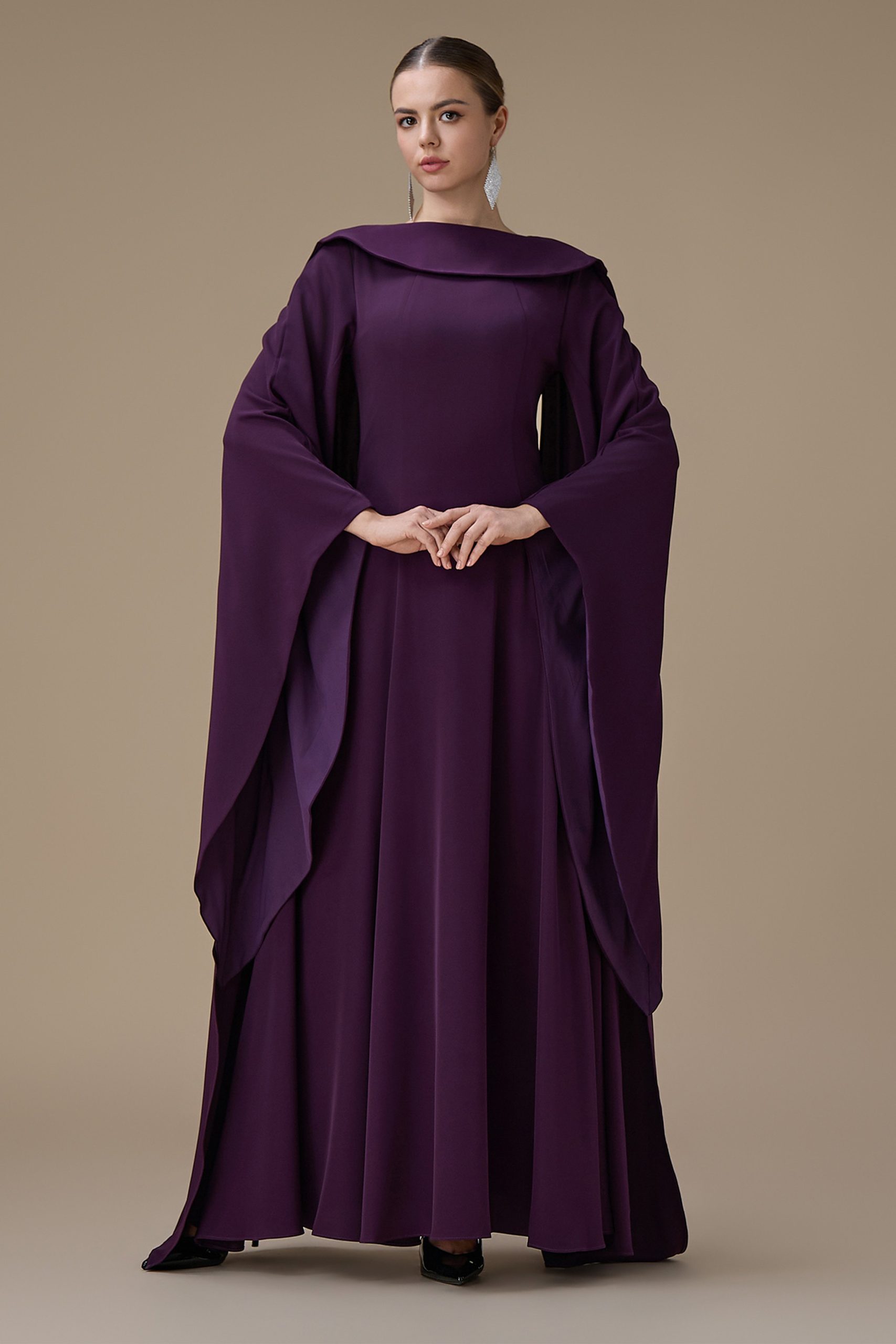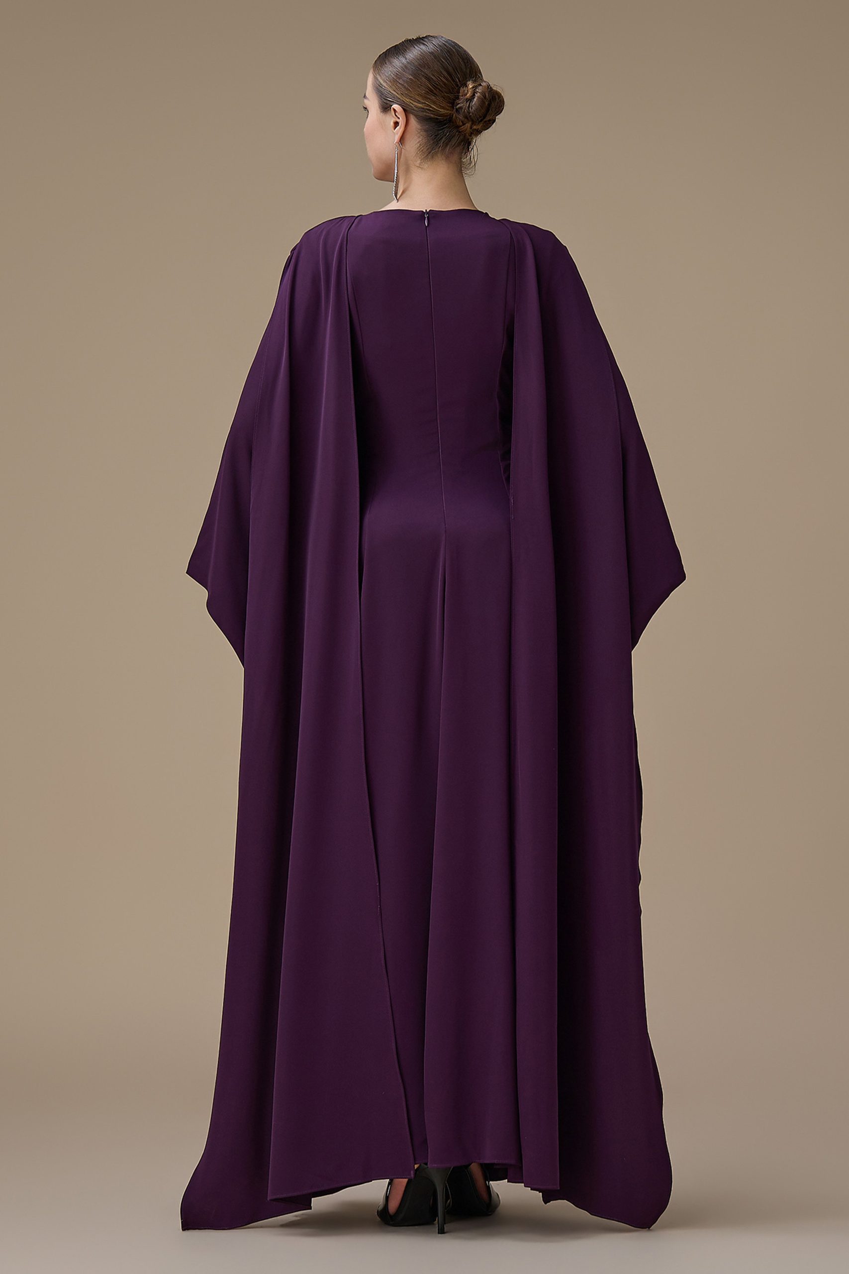 اكتان – فستان طويل بنفسجي بأكمام كيب