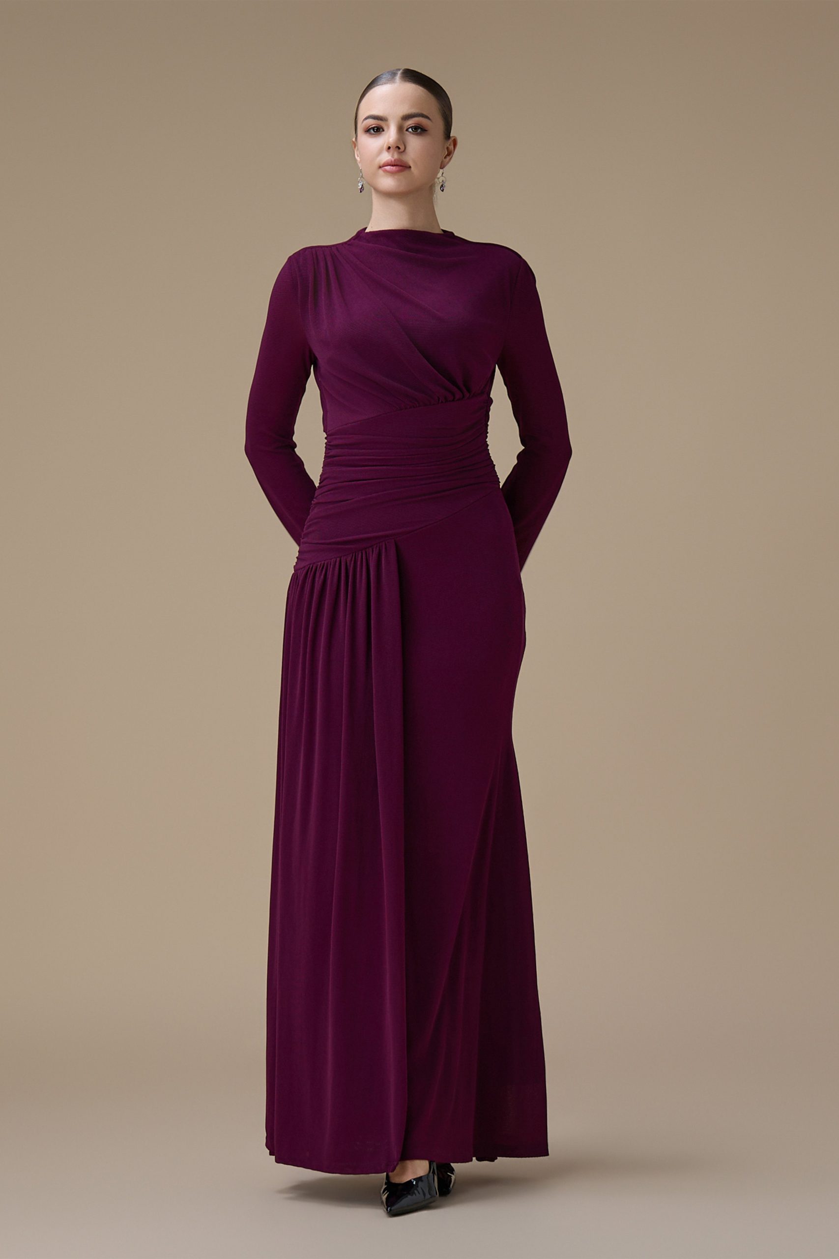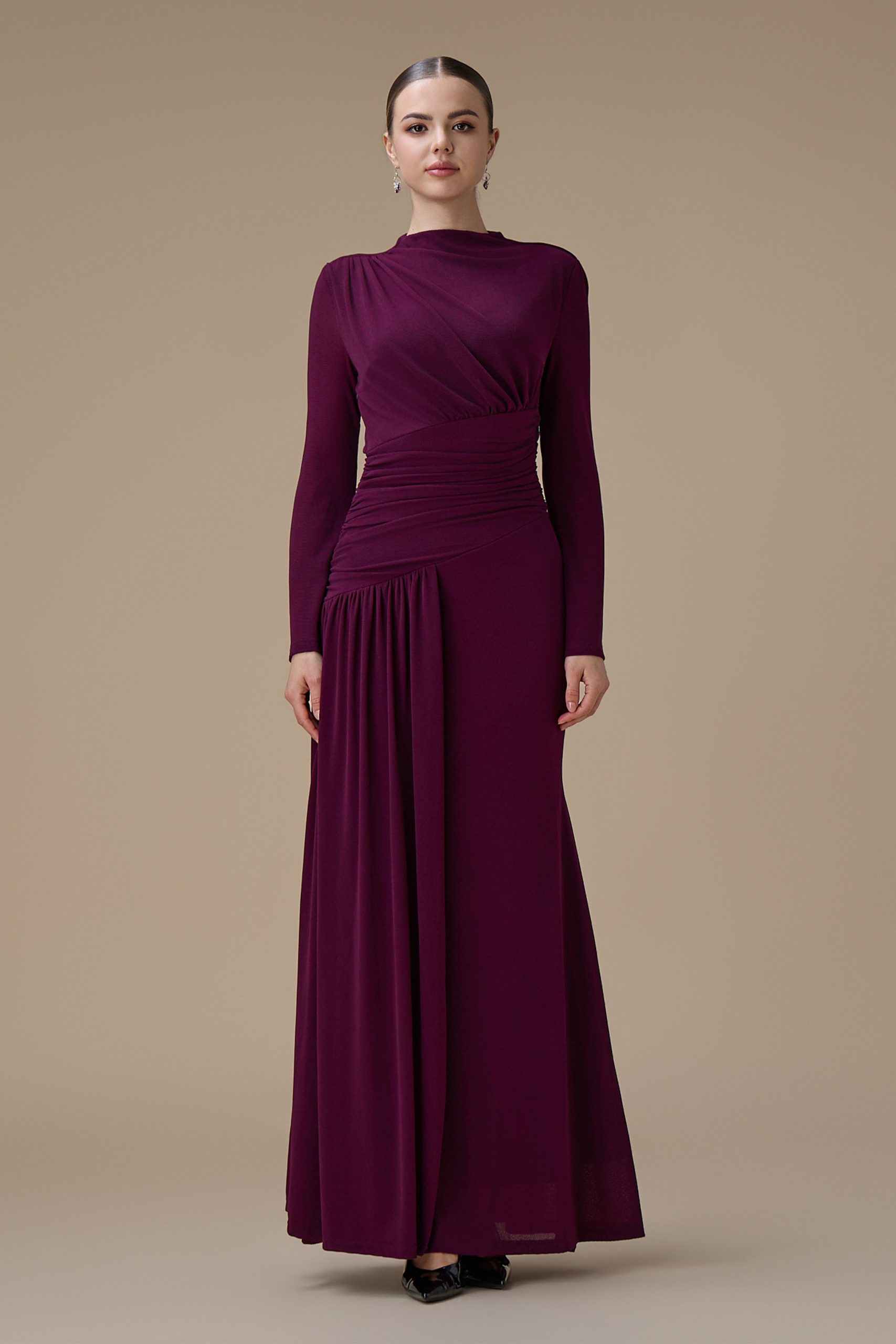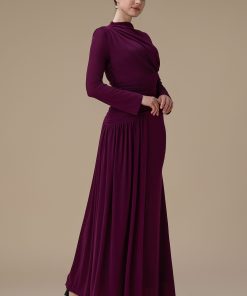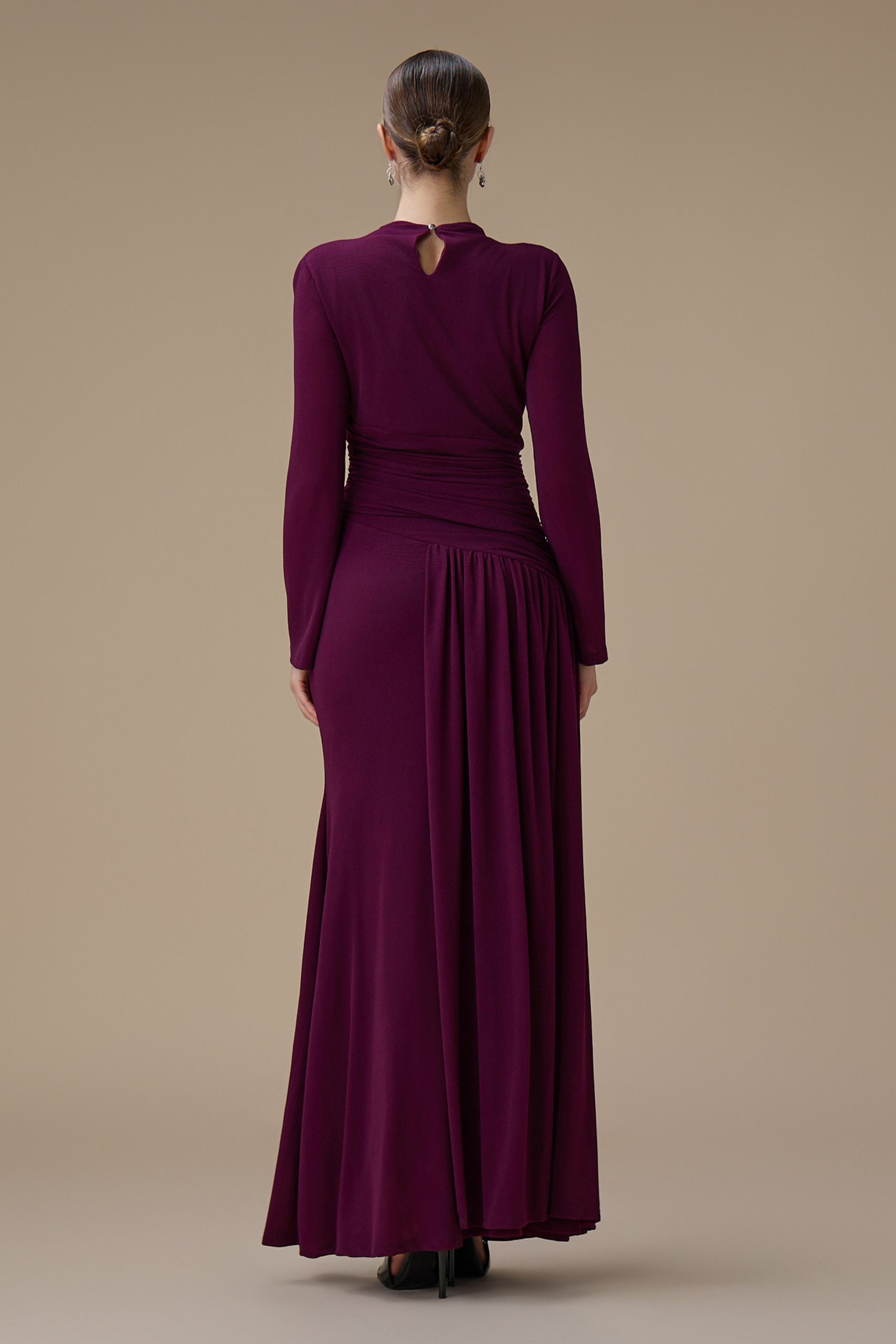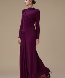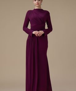 اكتان – فستان طويل بنفسجي بكسرات جانبية