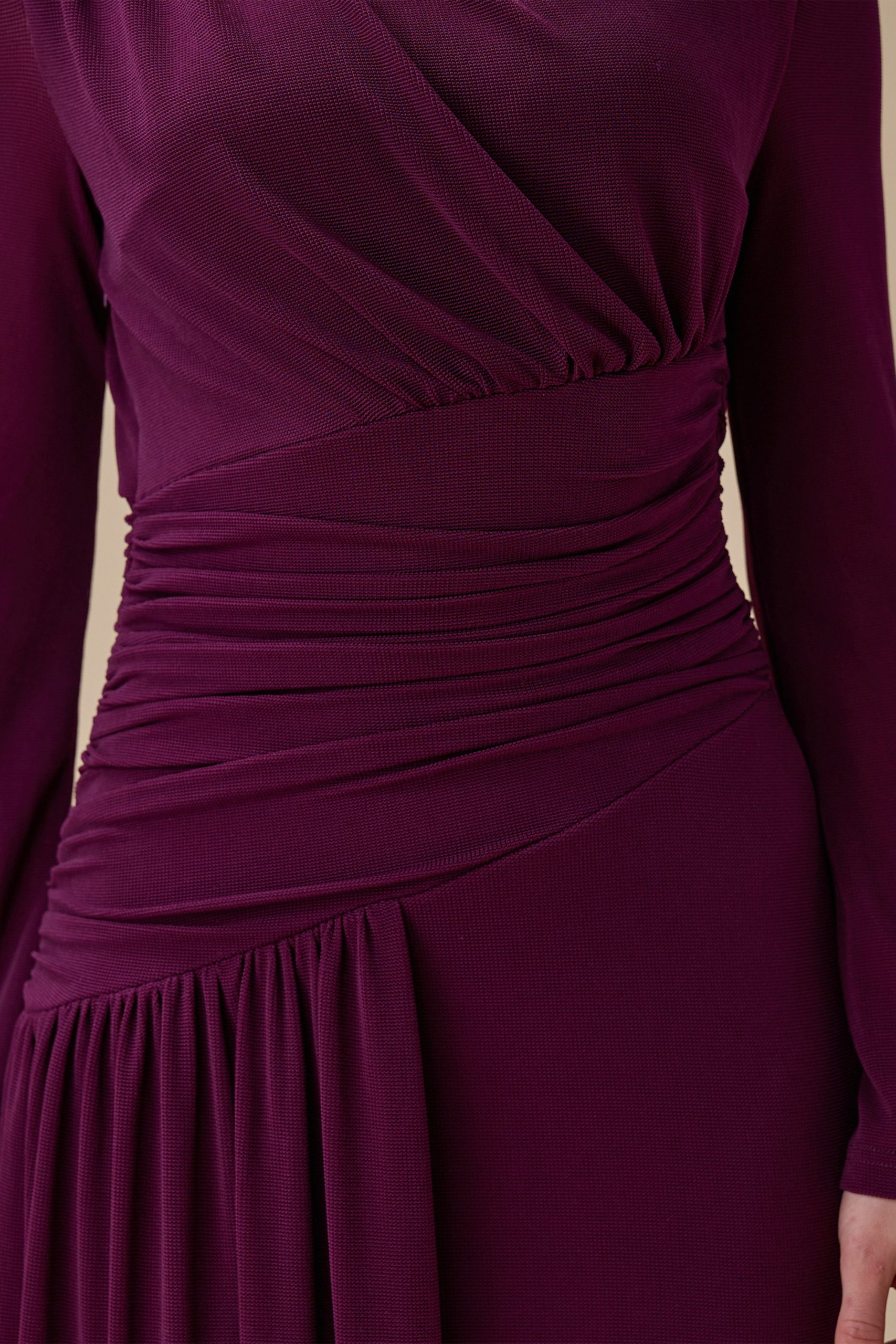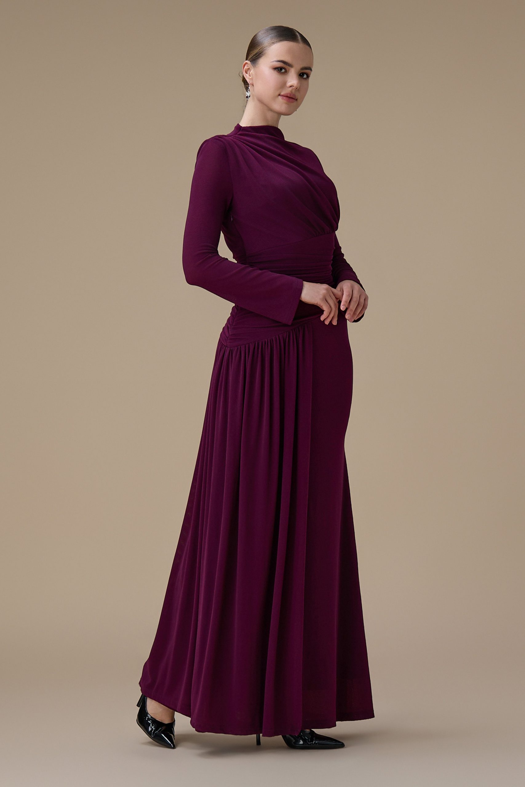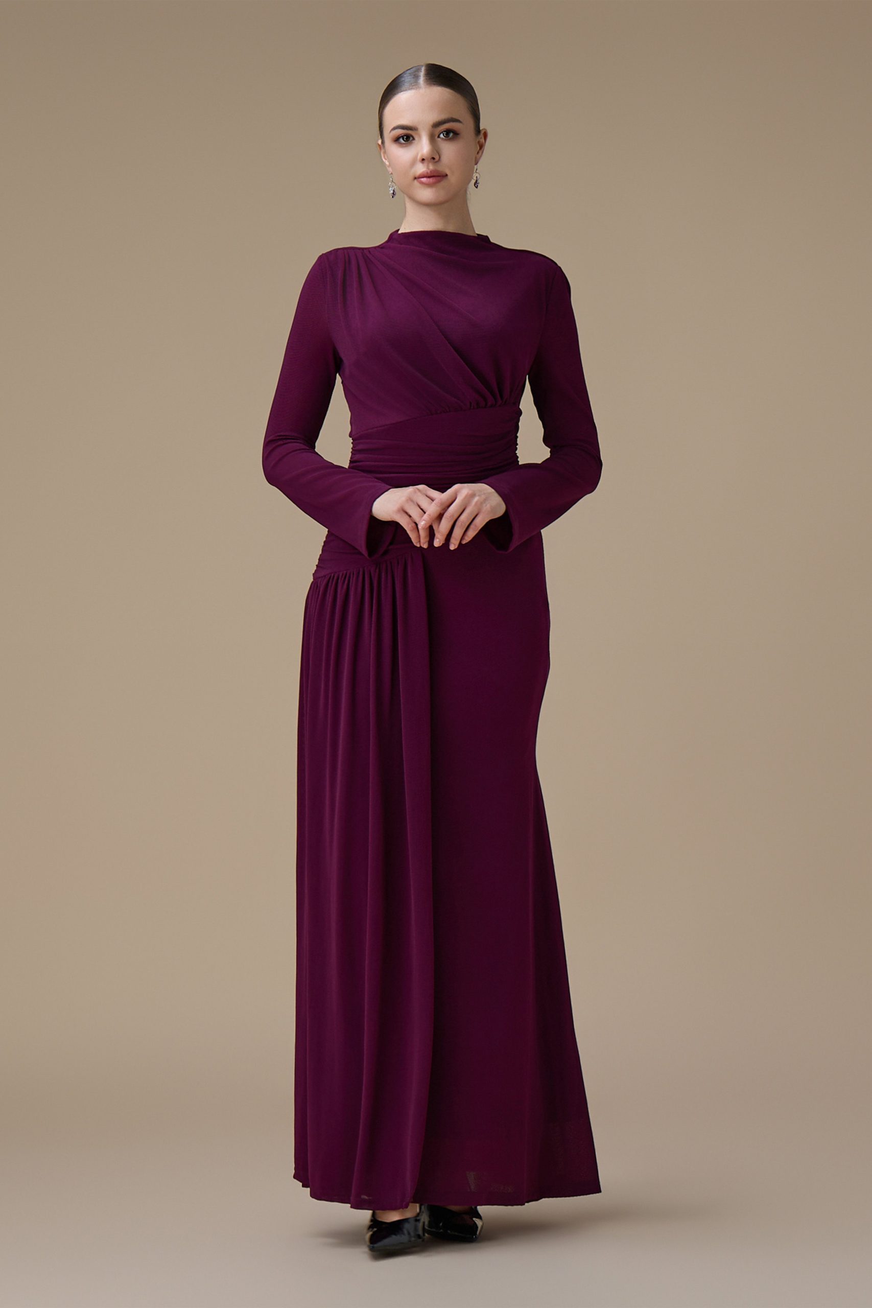 اكتان – فستان طويل بنفسجي بكسرات جانبية