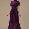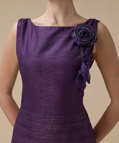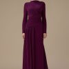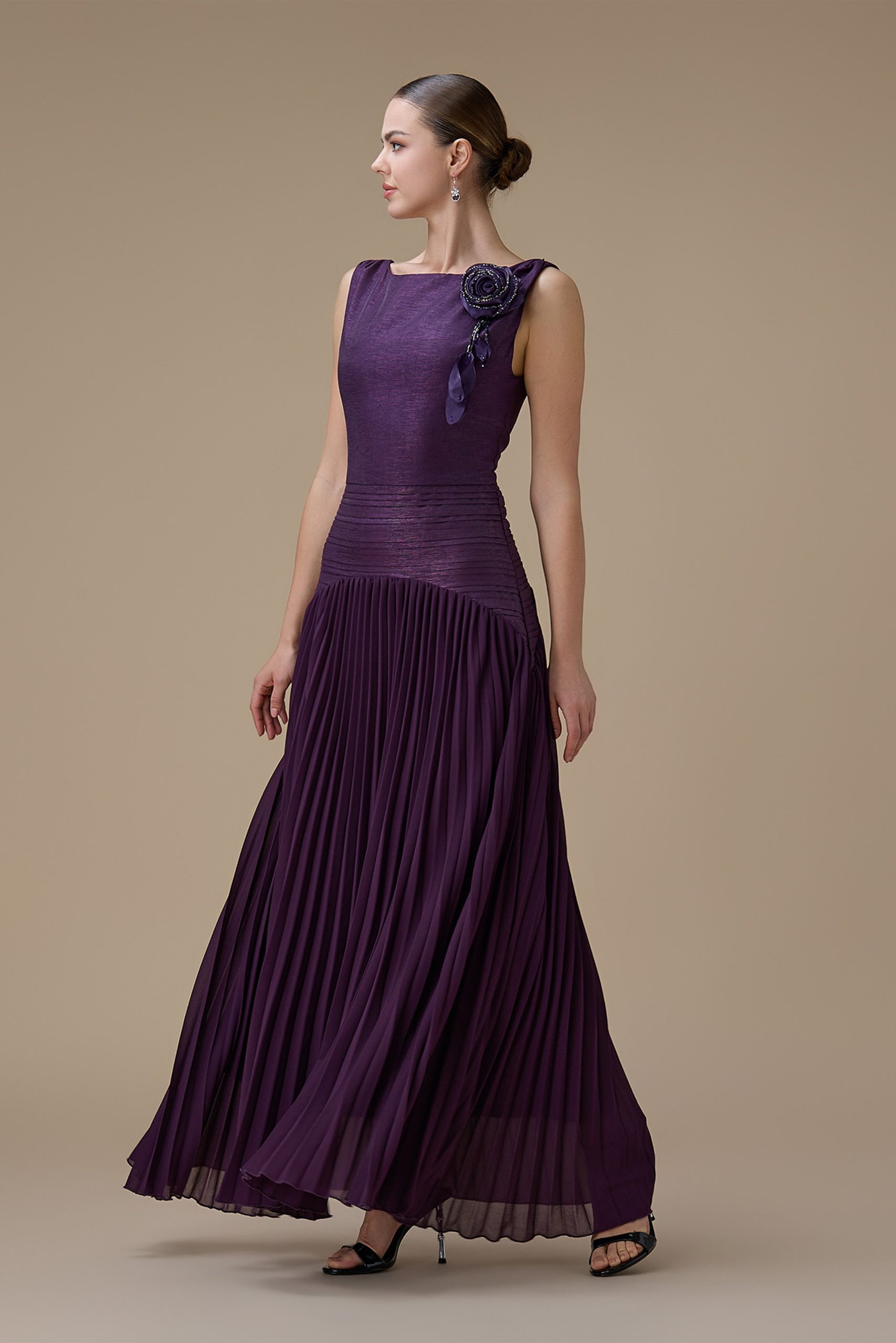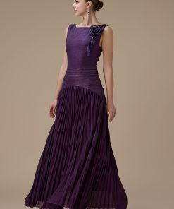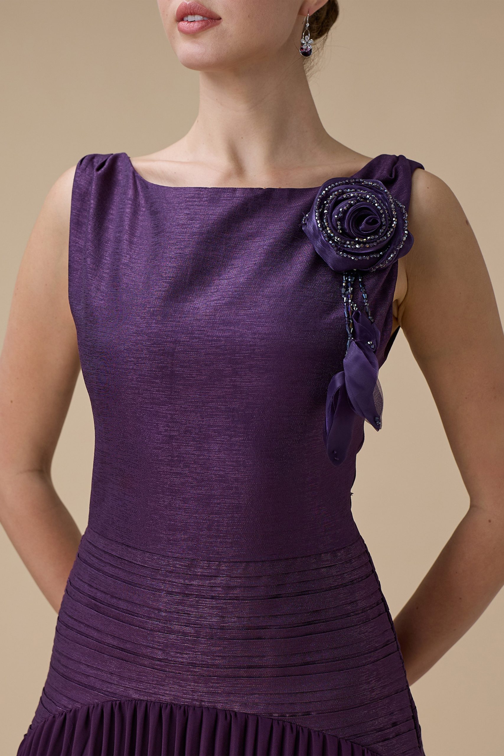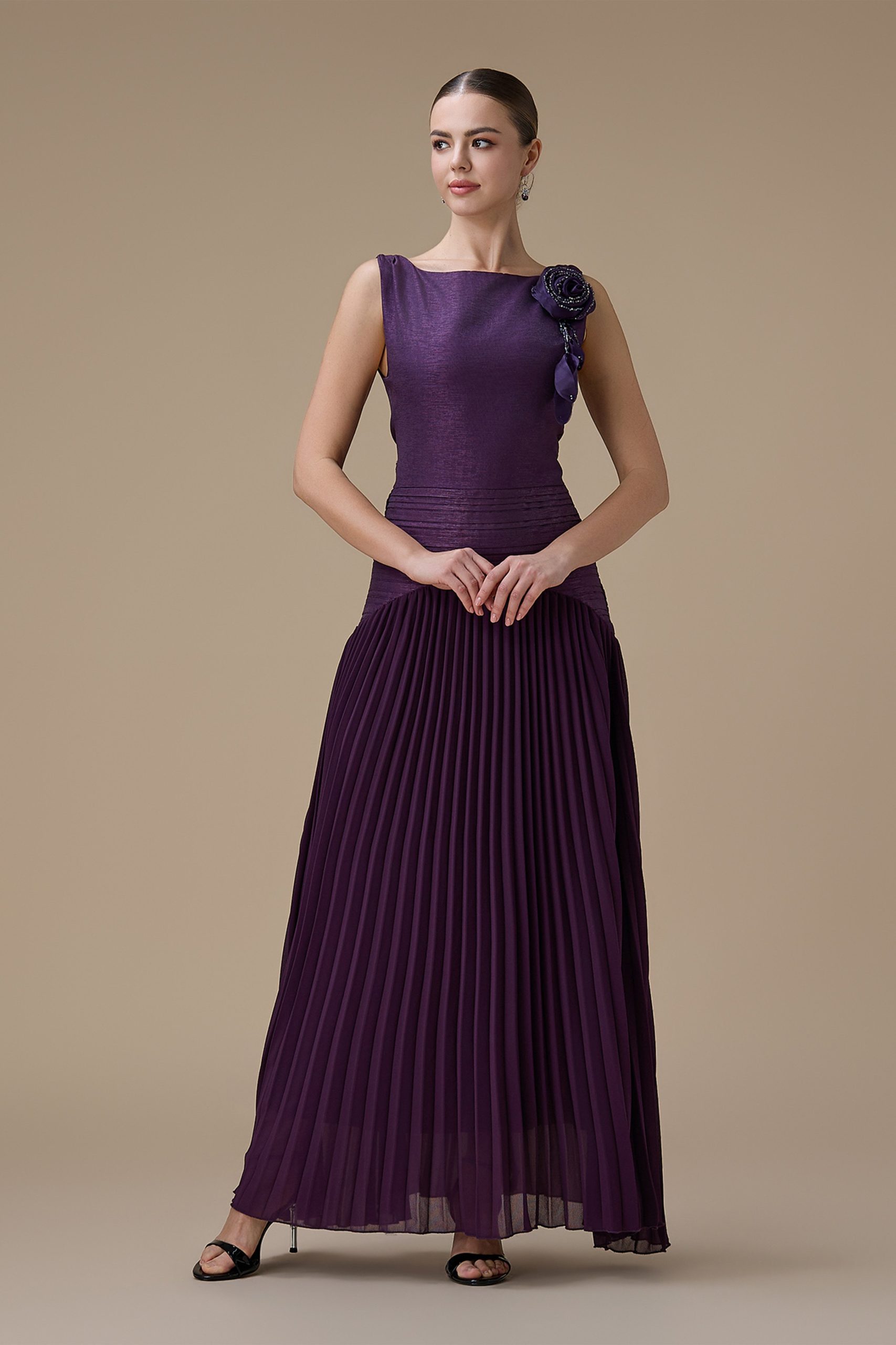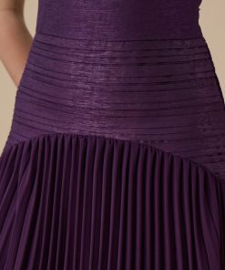 اكتان – فستان طويل بنفسجي بليسيه بقصة انيقة