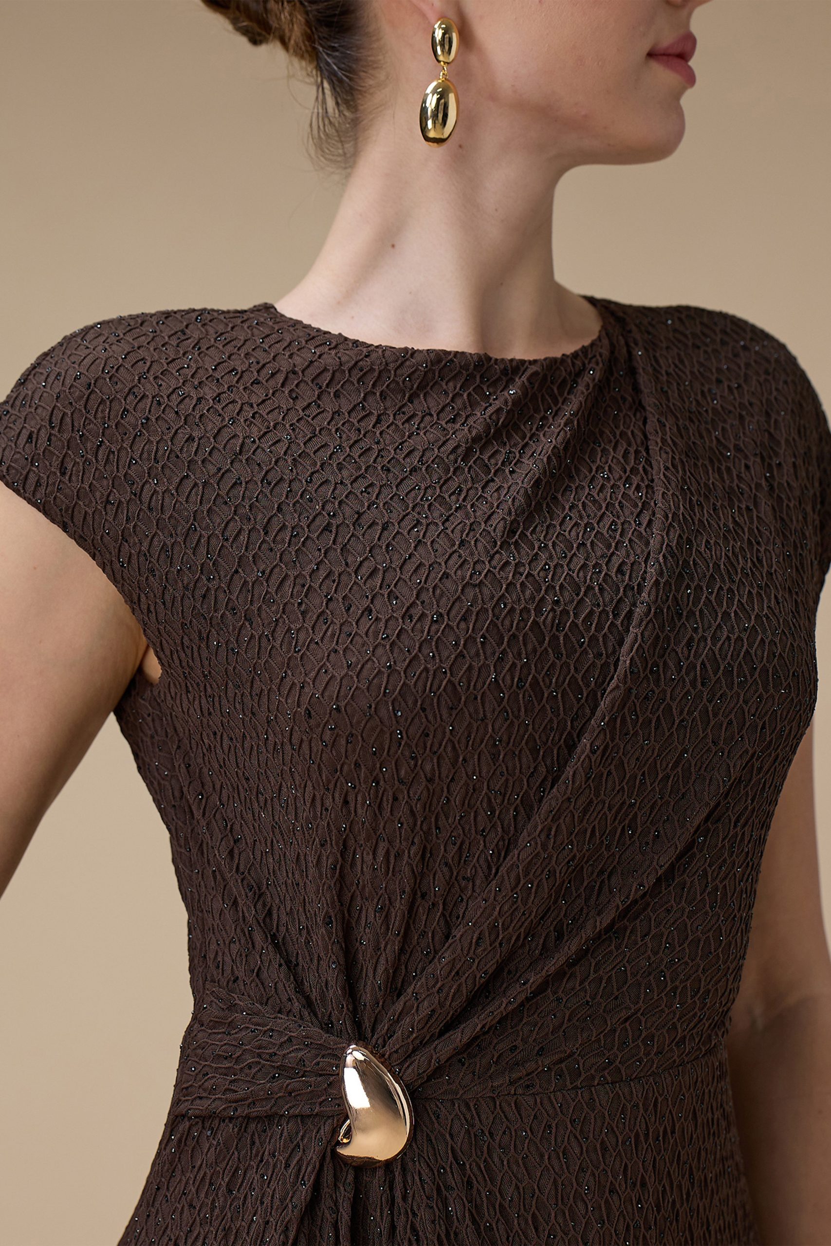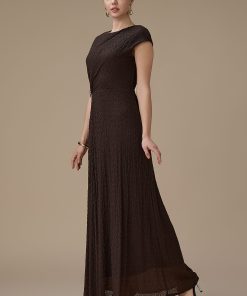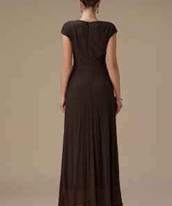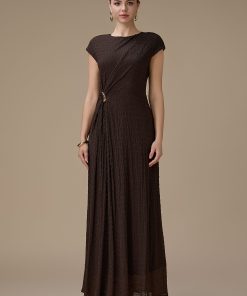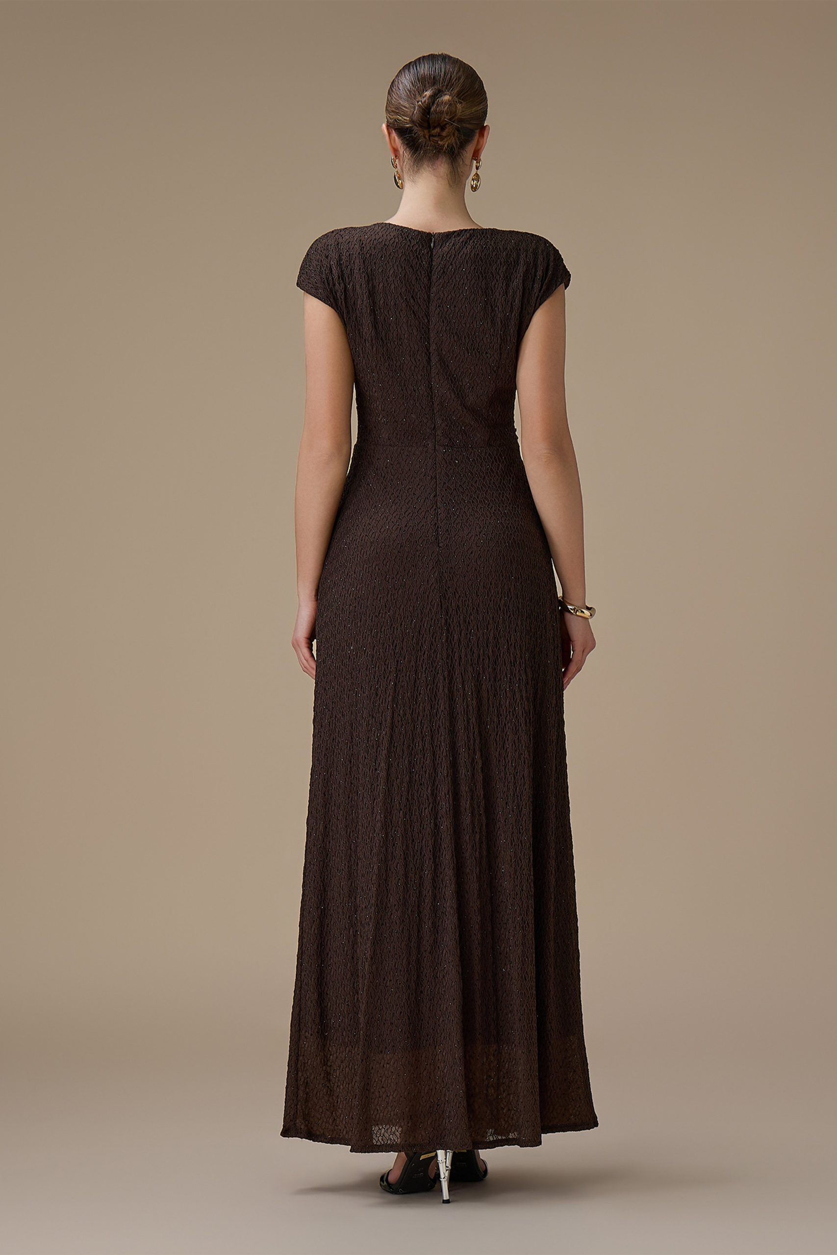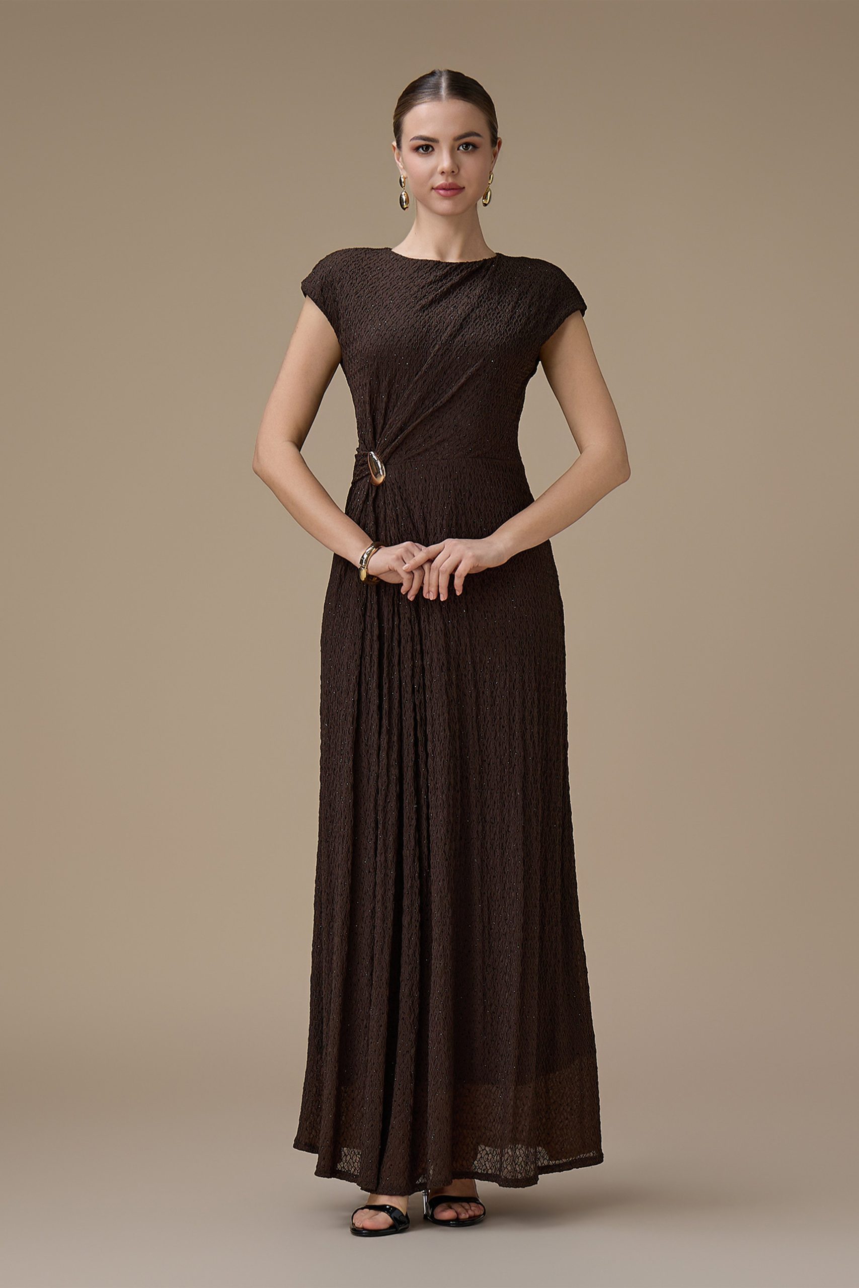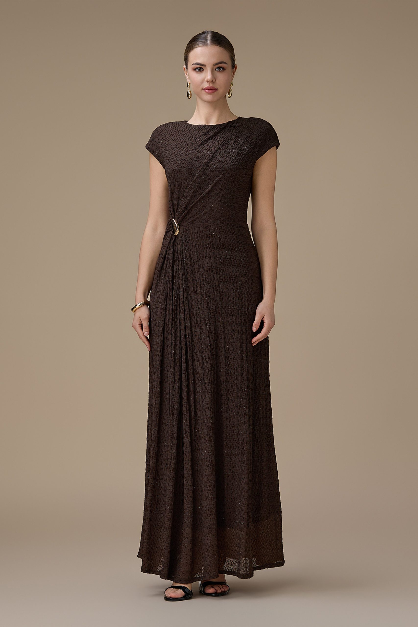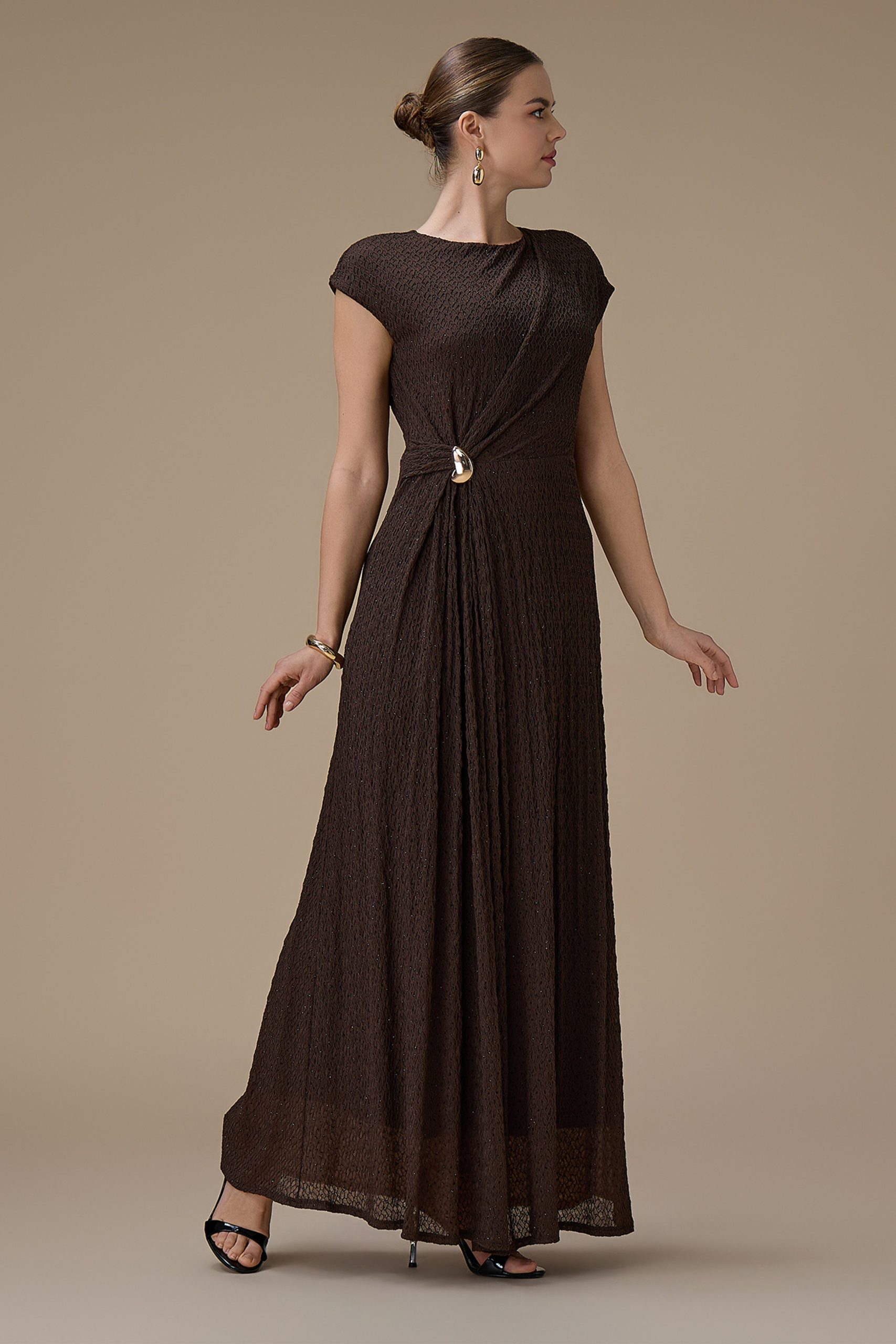 اكتان – فستان طويل بني بتفصيلية جانبية