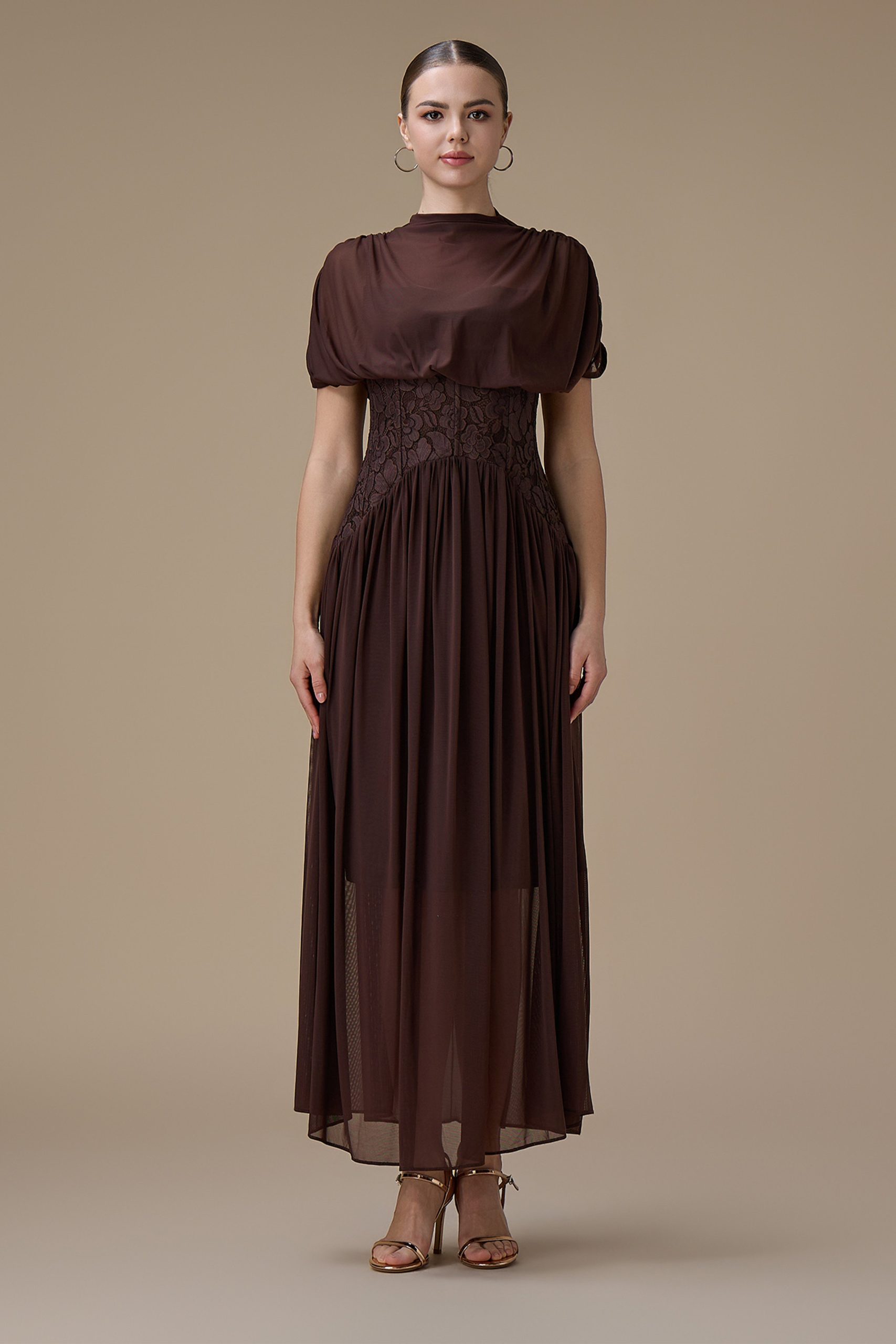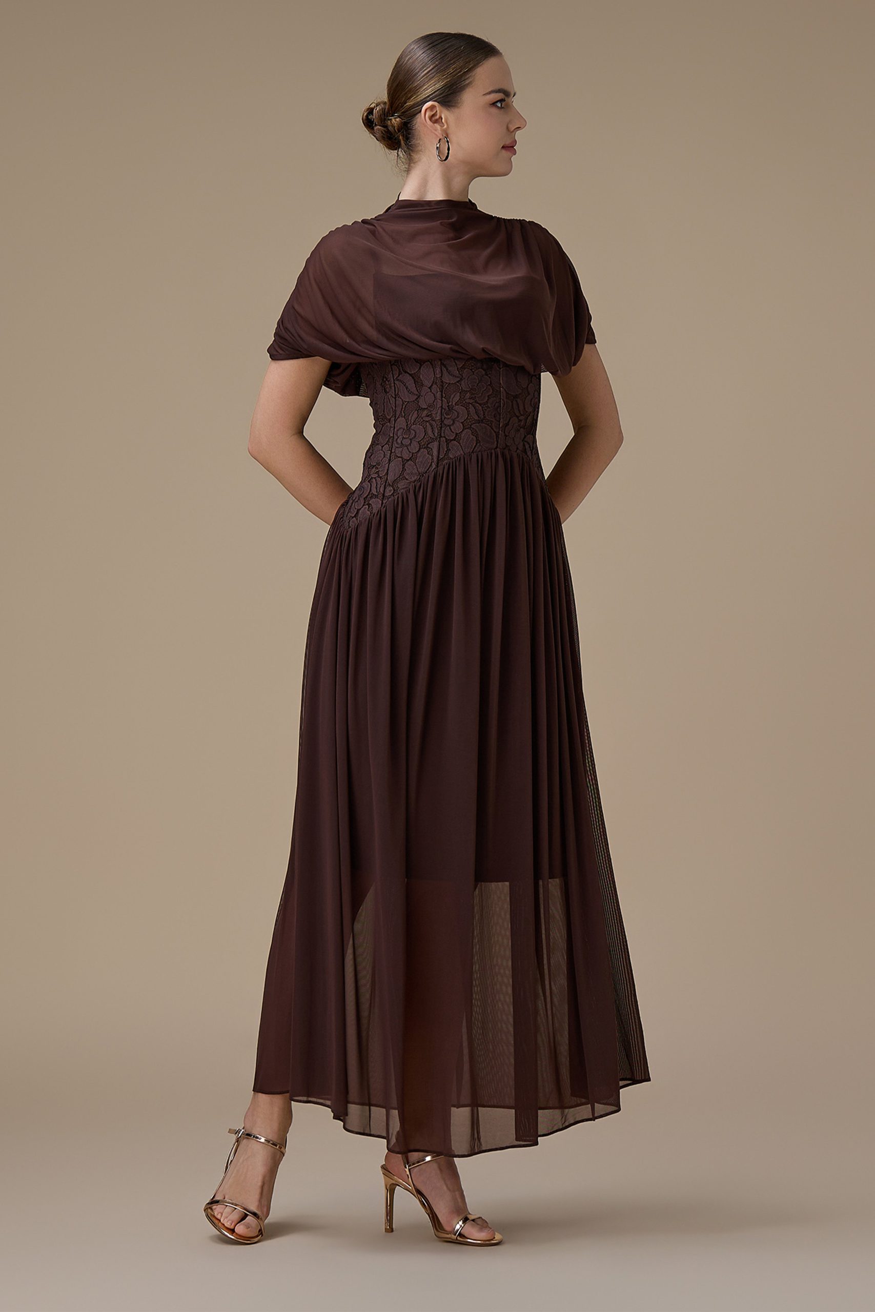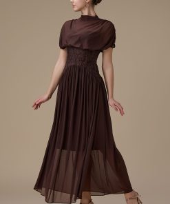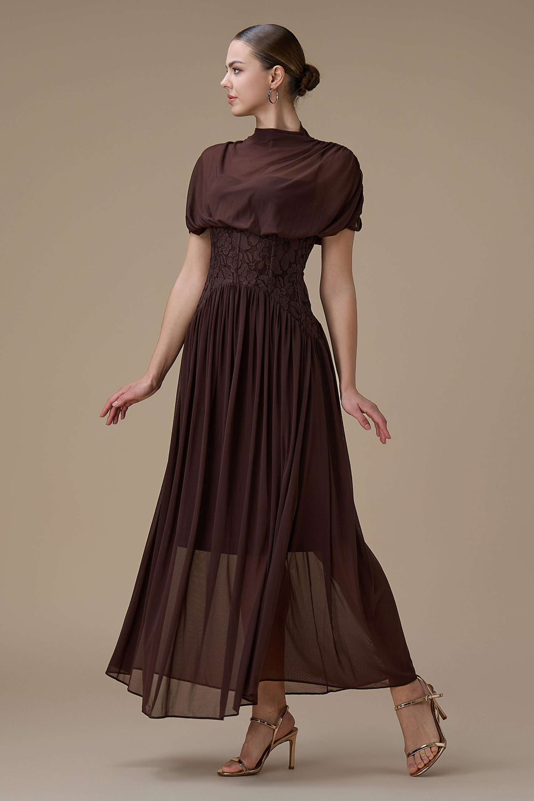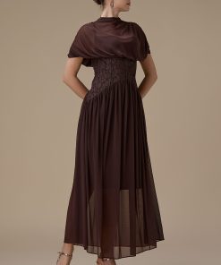 اكتان – فستان طويل بني شيفون