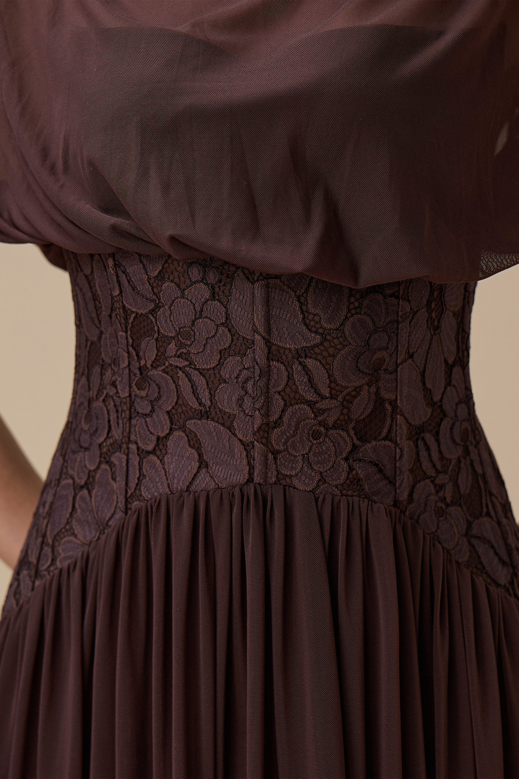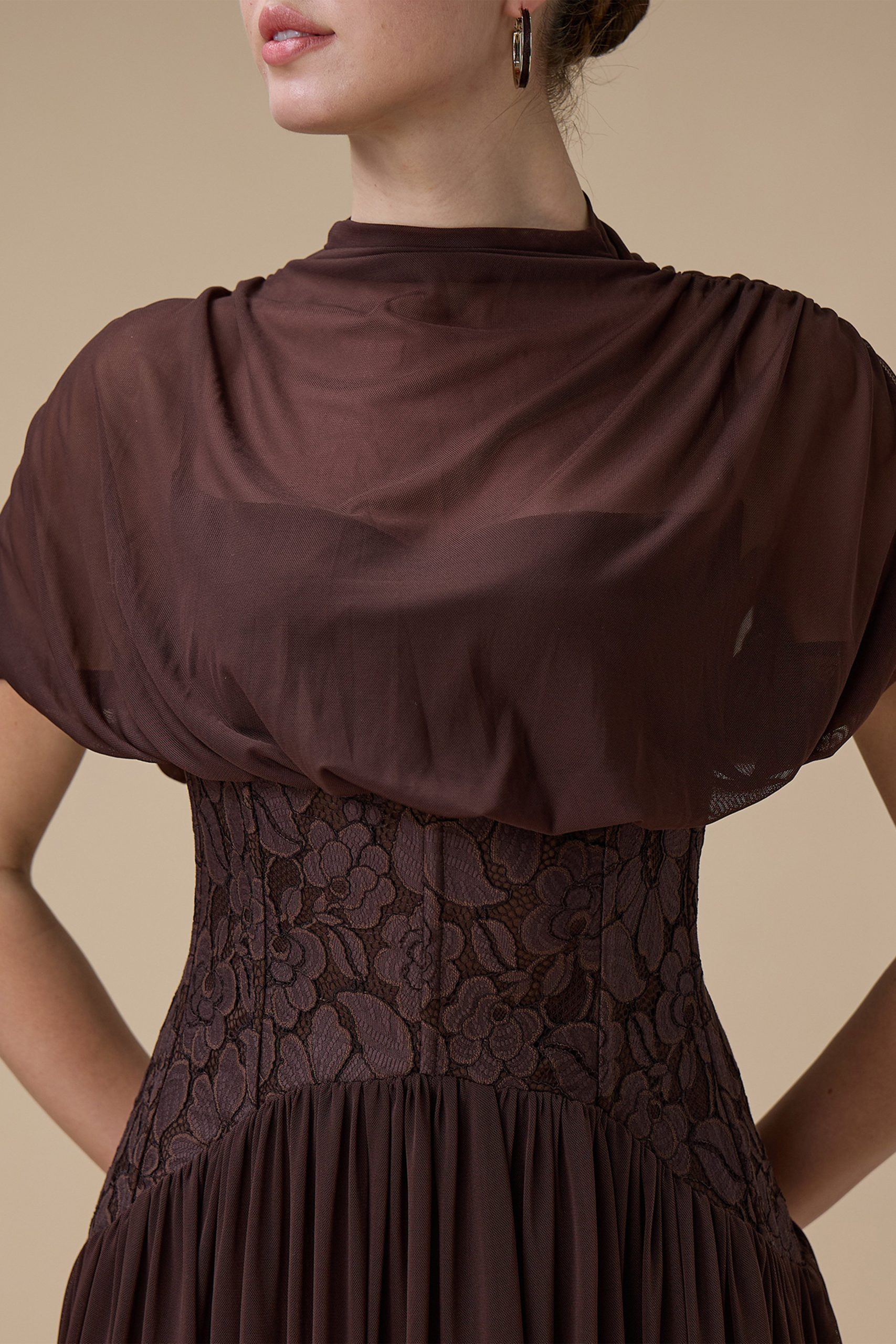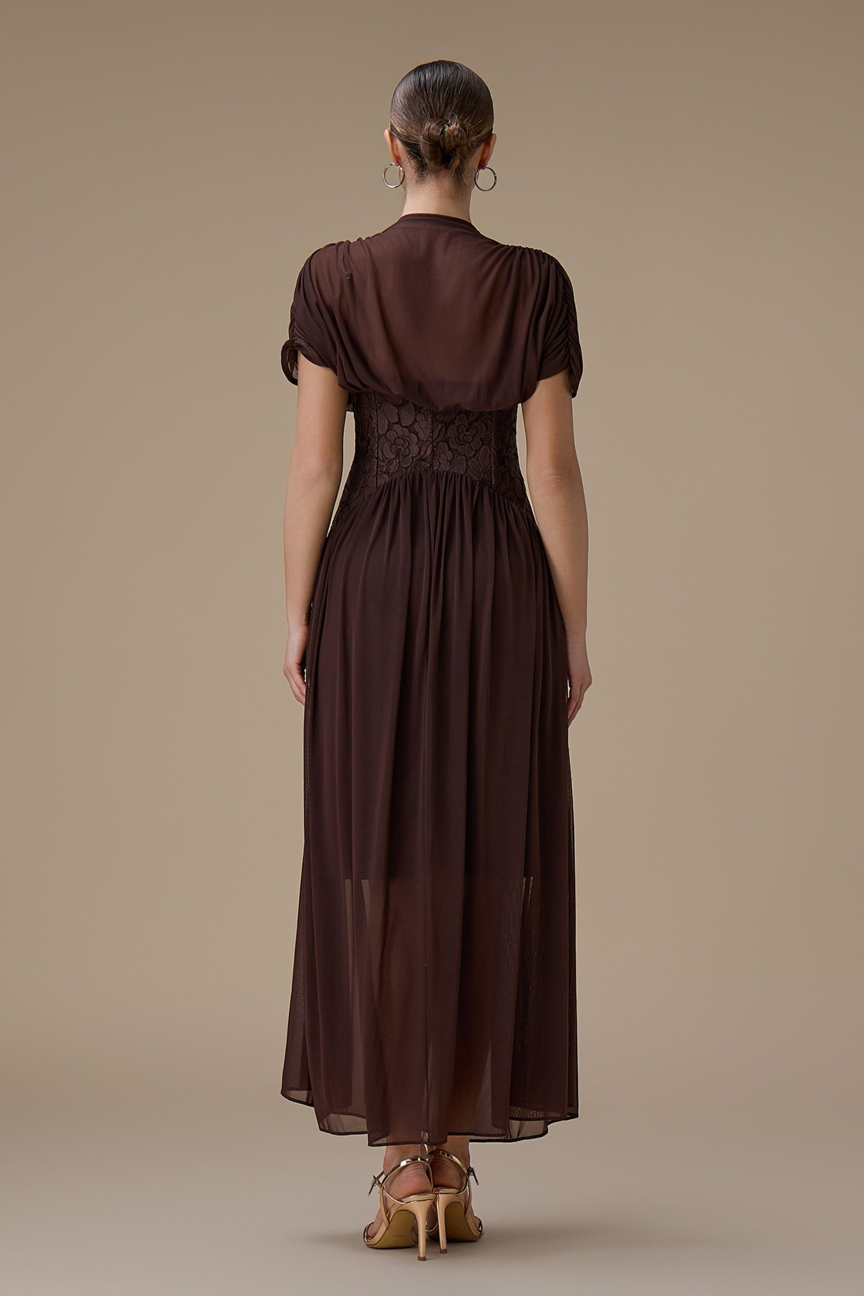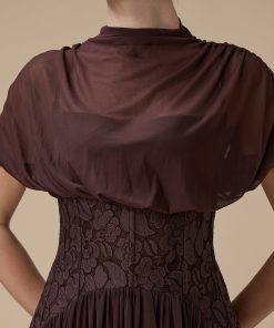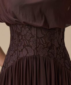 اكتان – فستان طويل بني شيفون