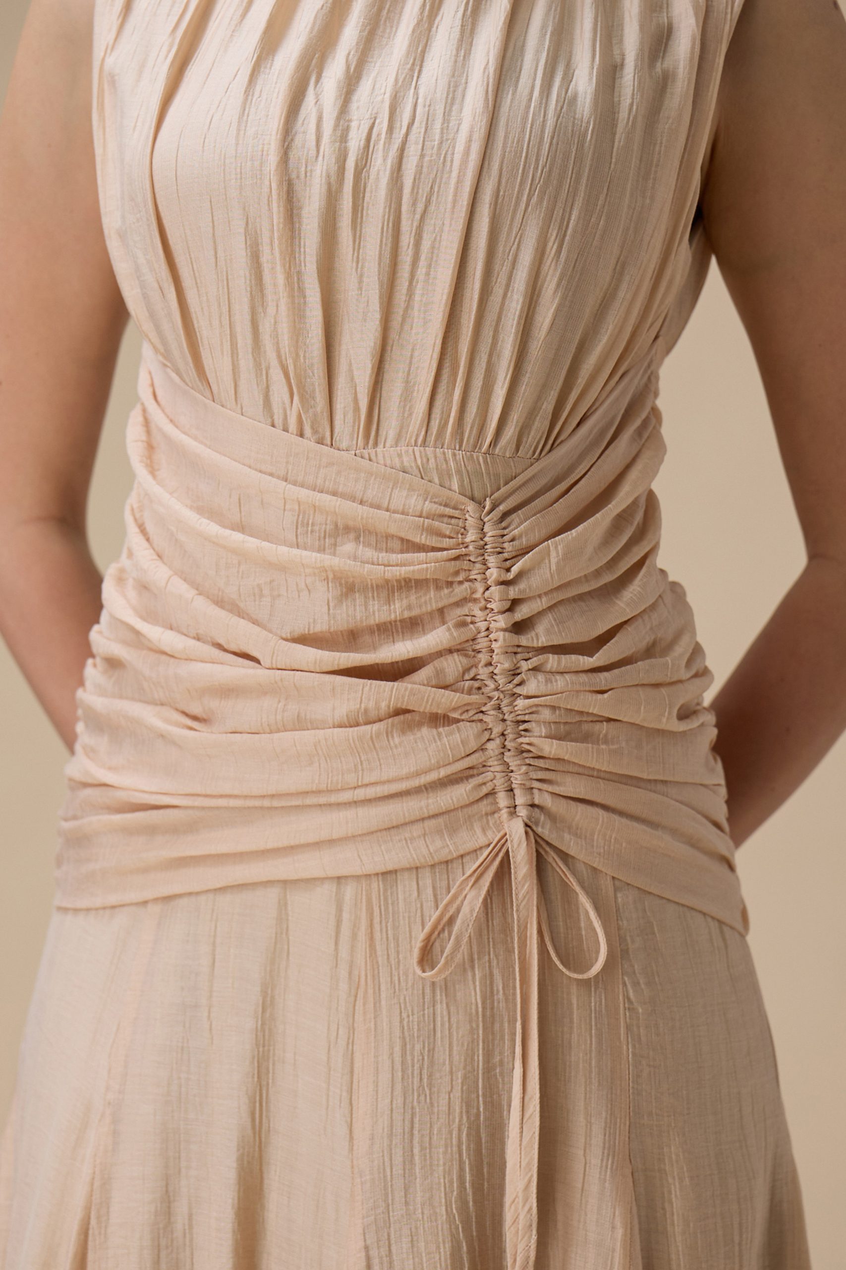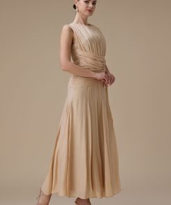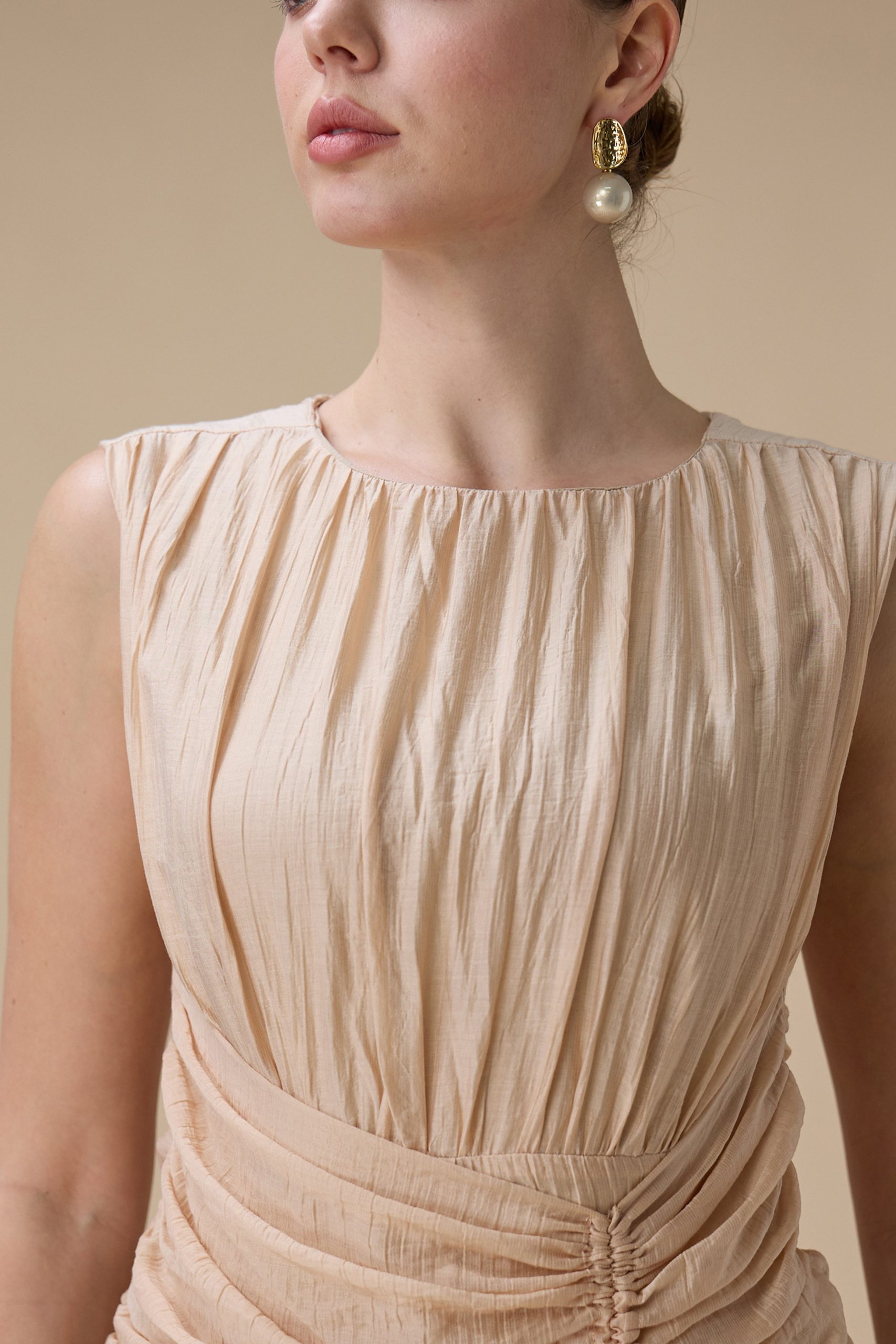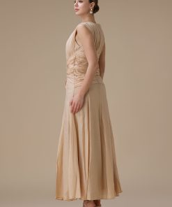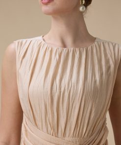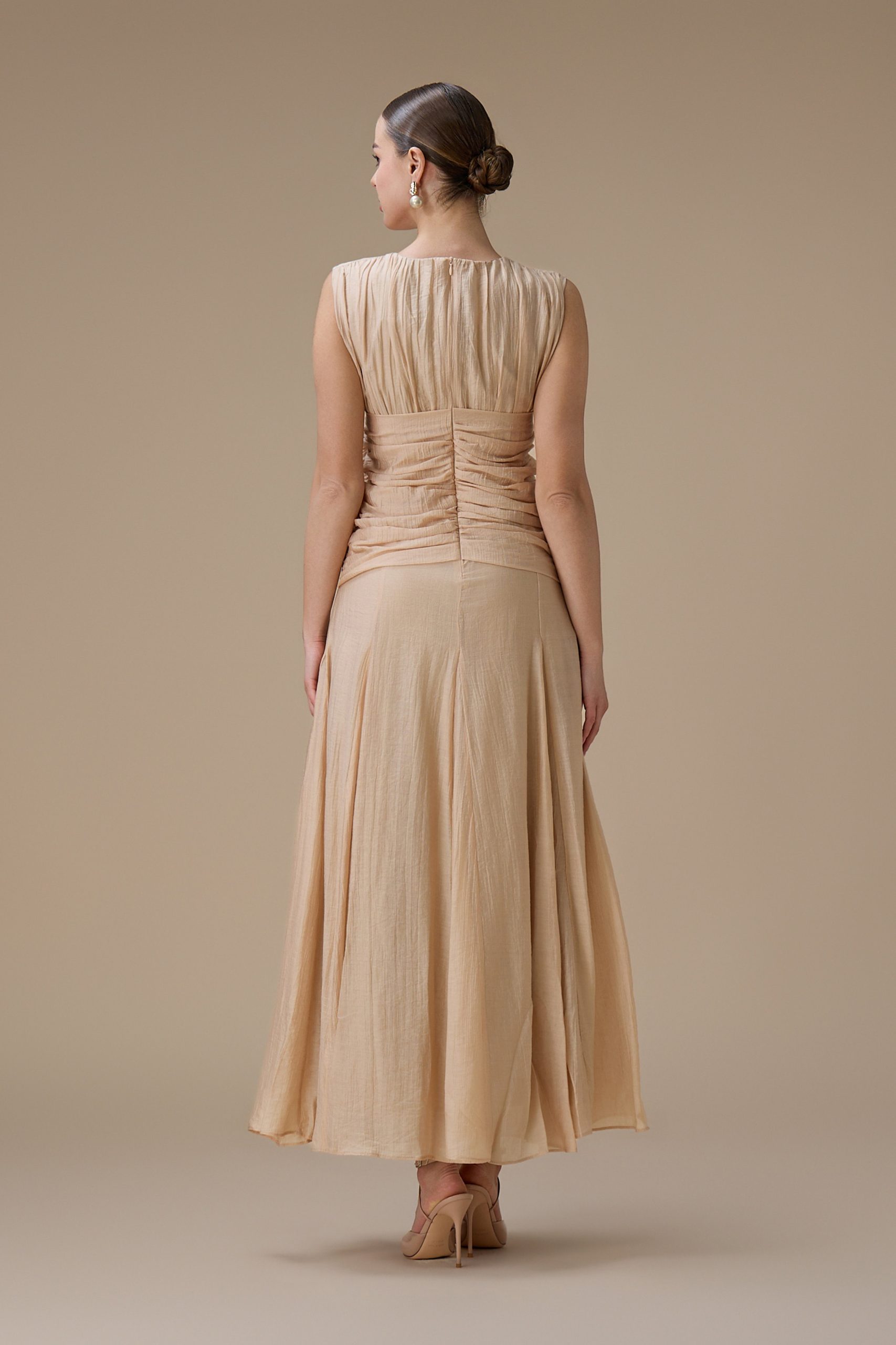اكتان – فستان طويل بيج مع كسرات جانبية