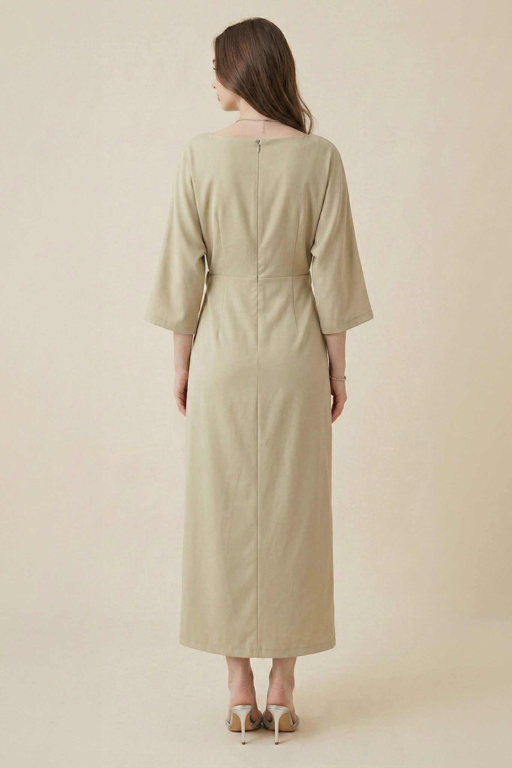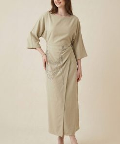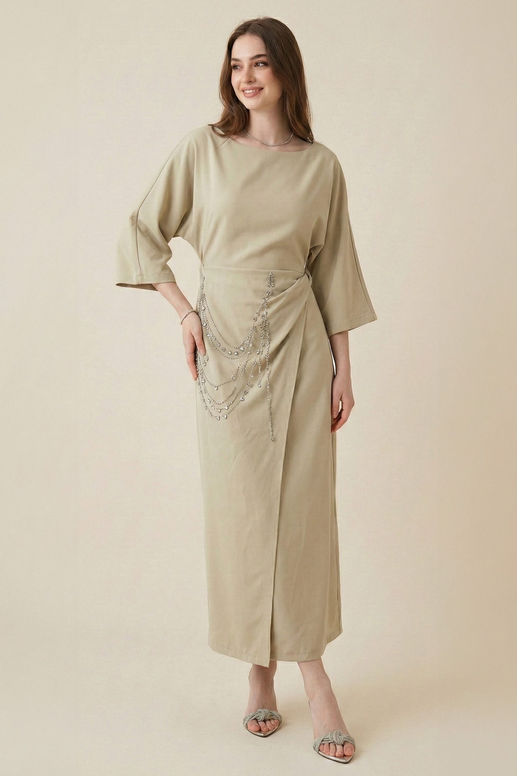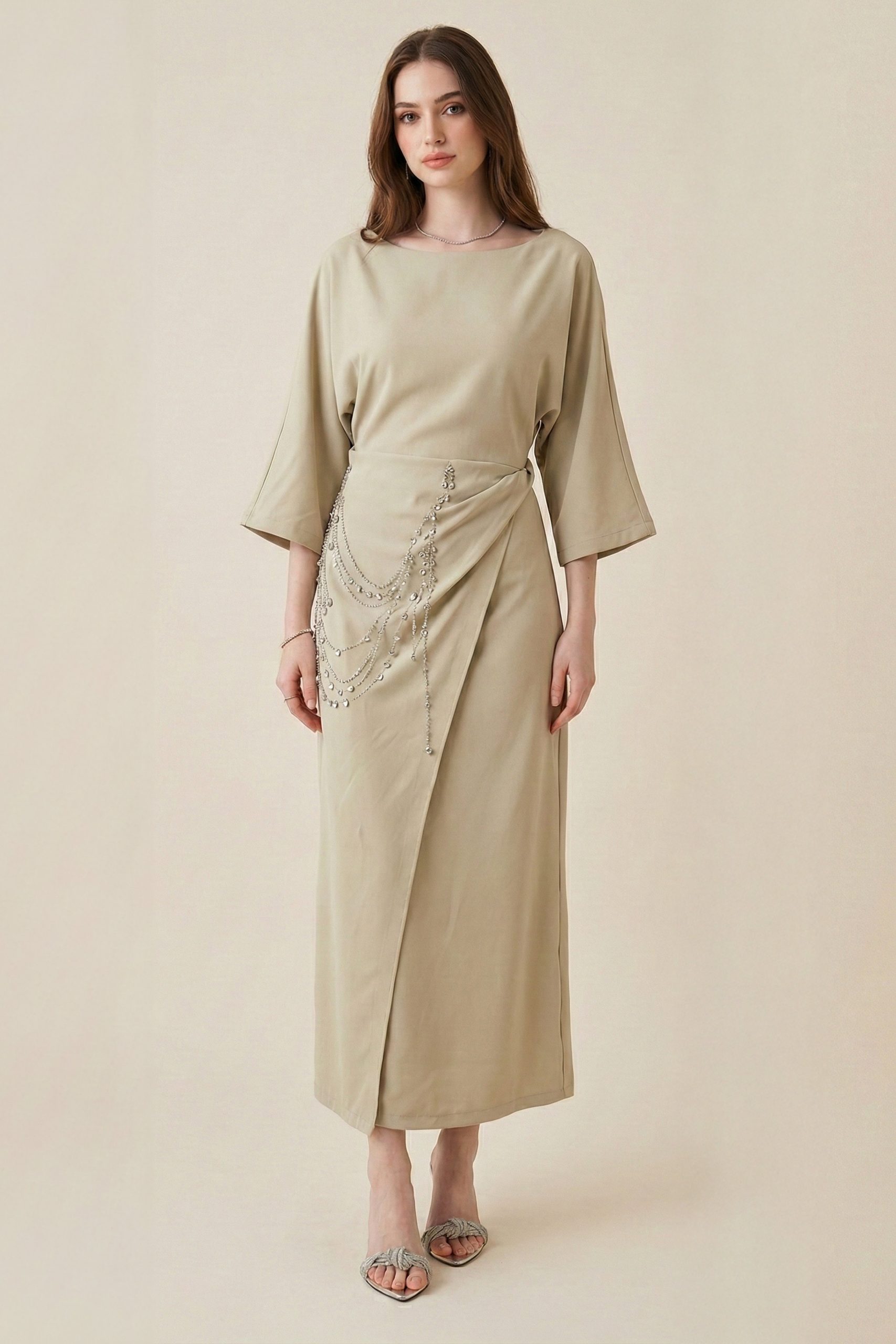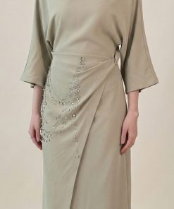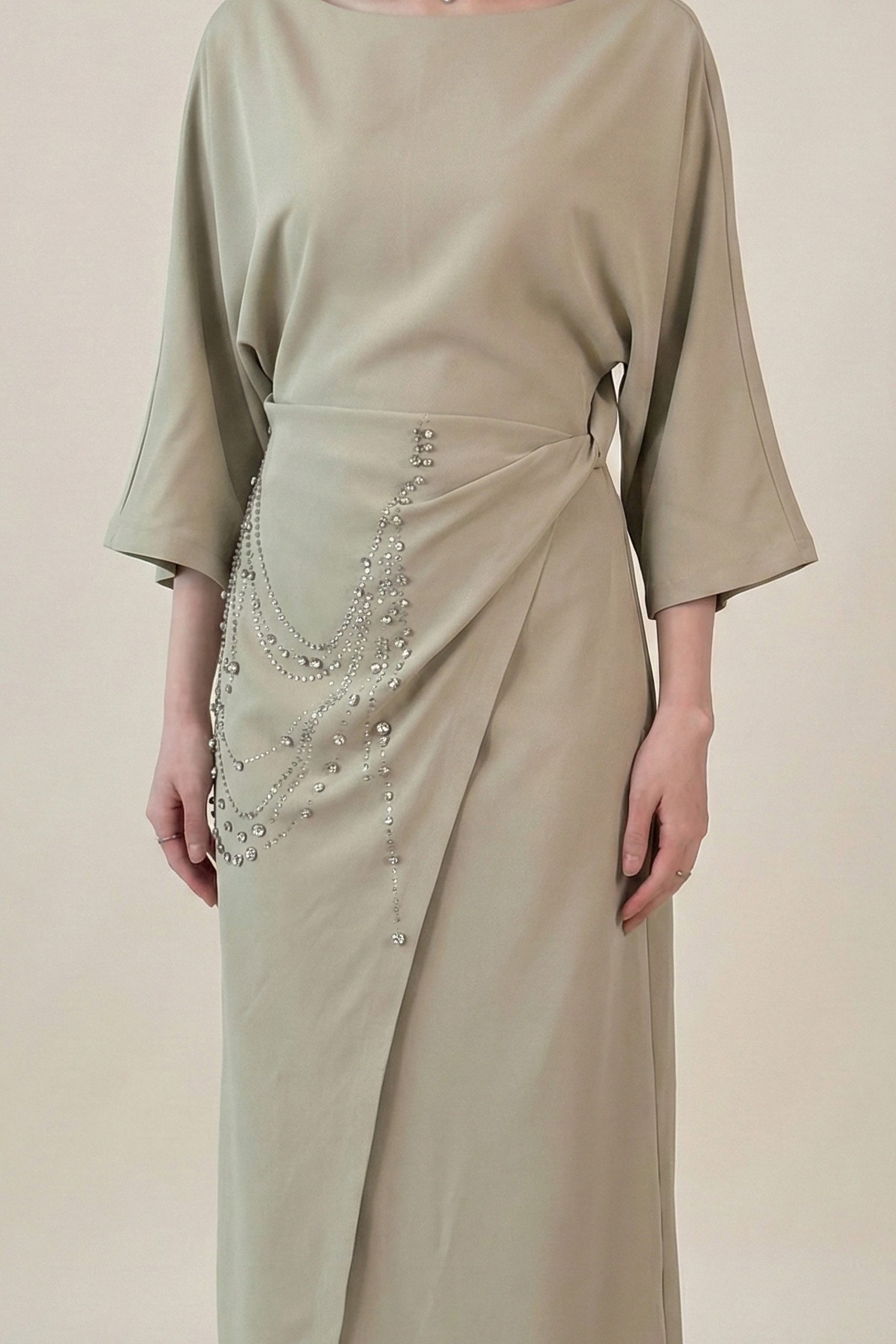 اكتان – فستان طويل مزين بالكريستال لون اخضر فاتح
