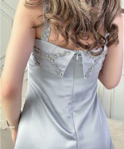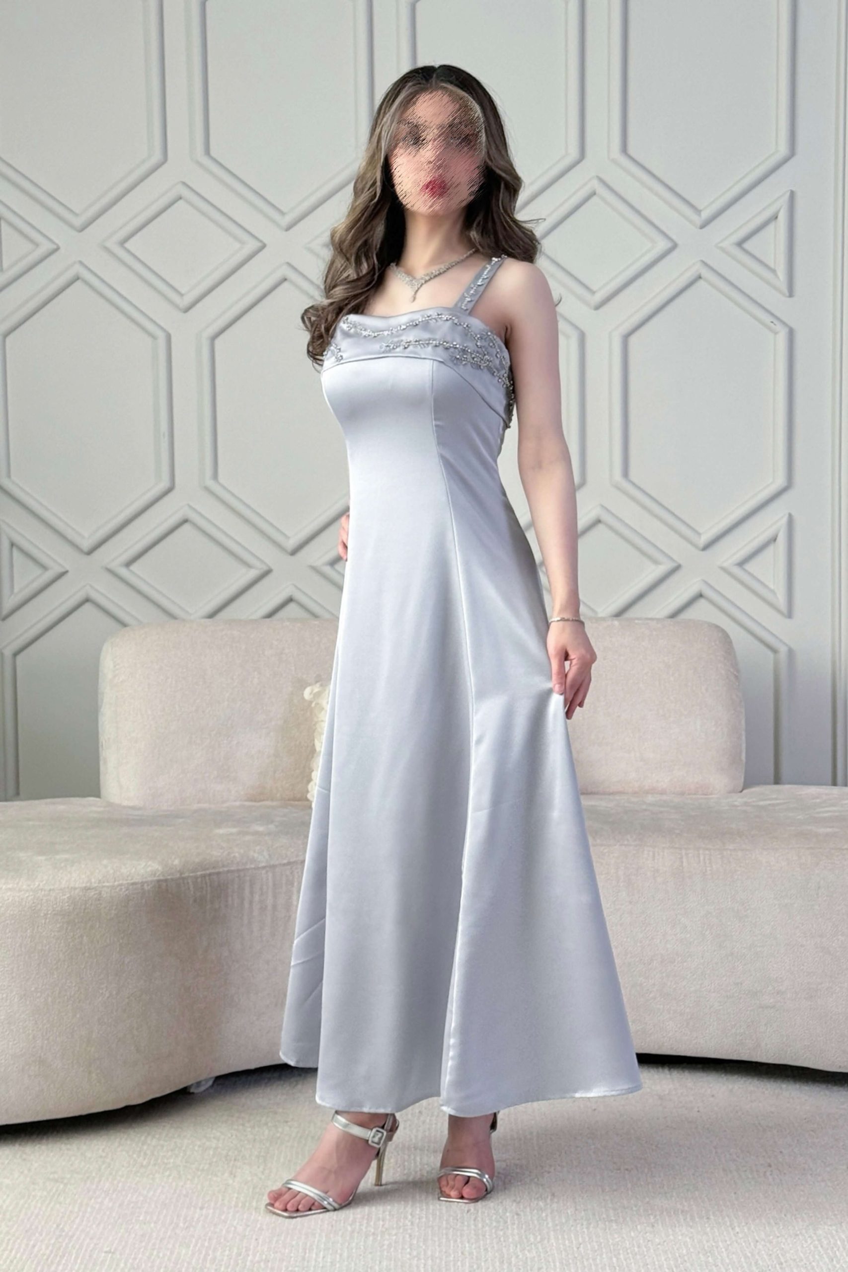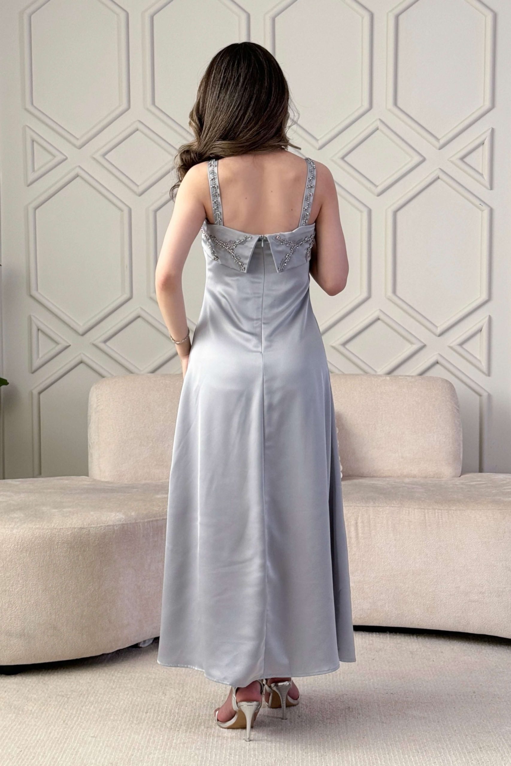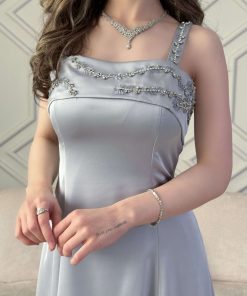 اكتان – فستان طويل مزين بالكريستال لون رصاصي