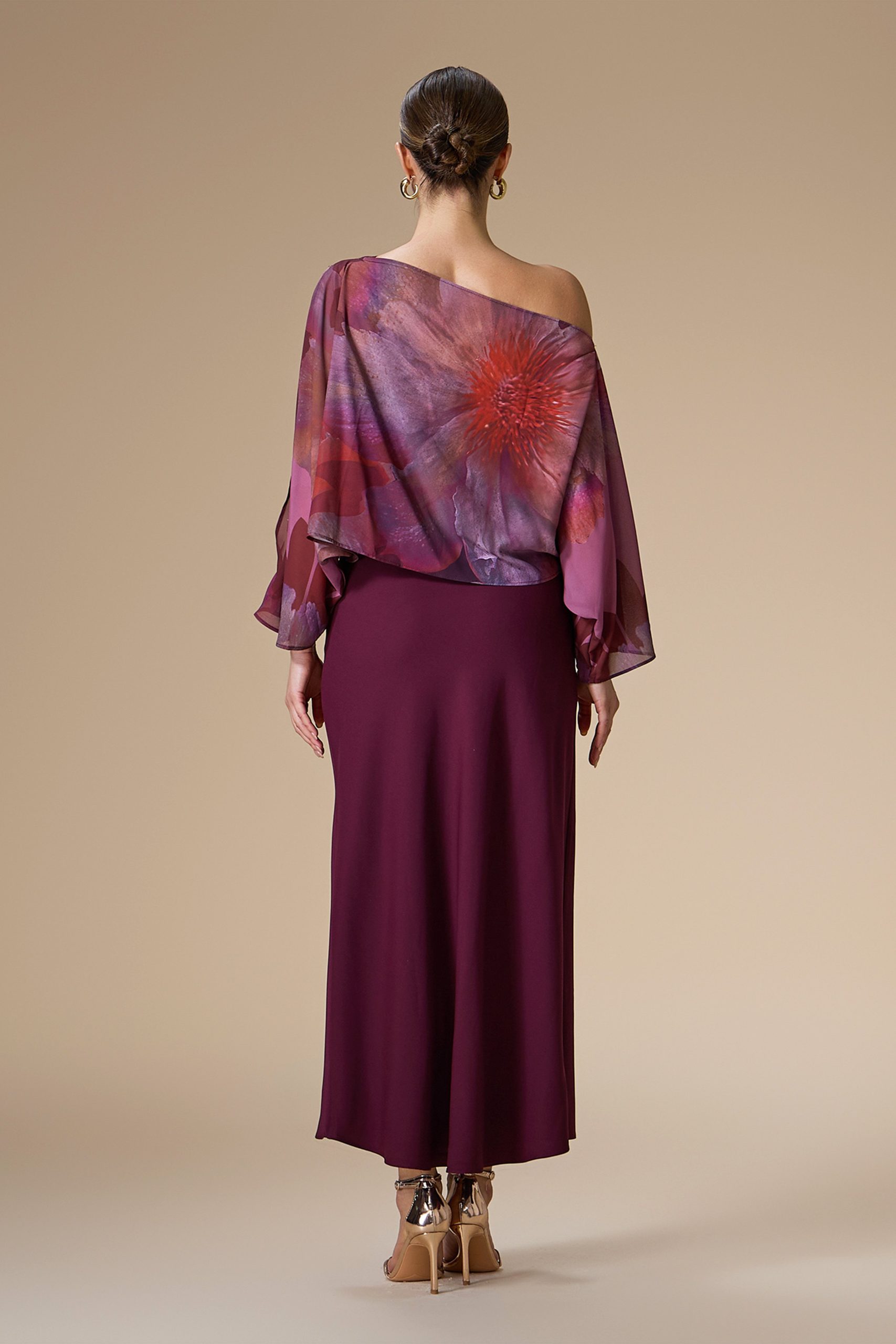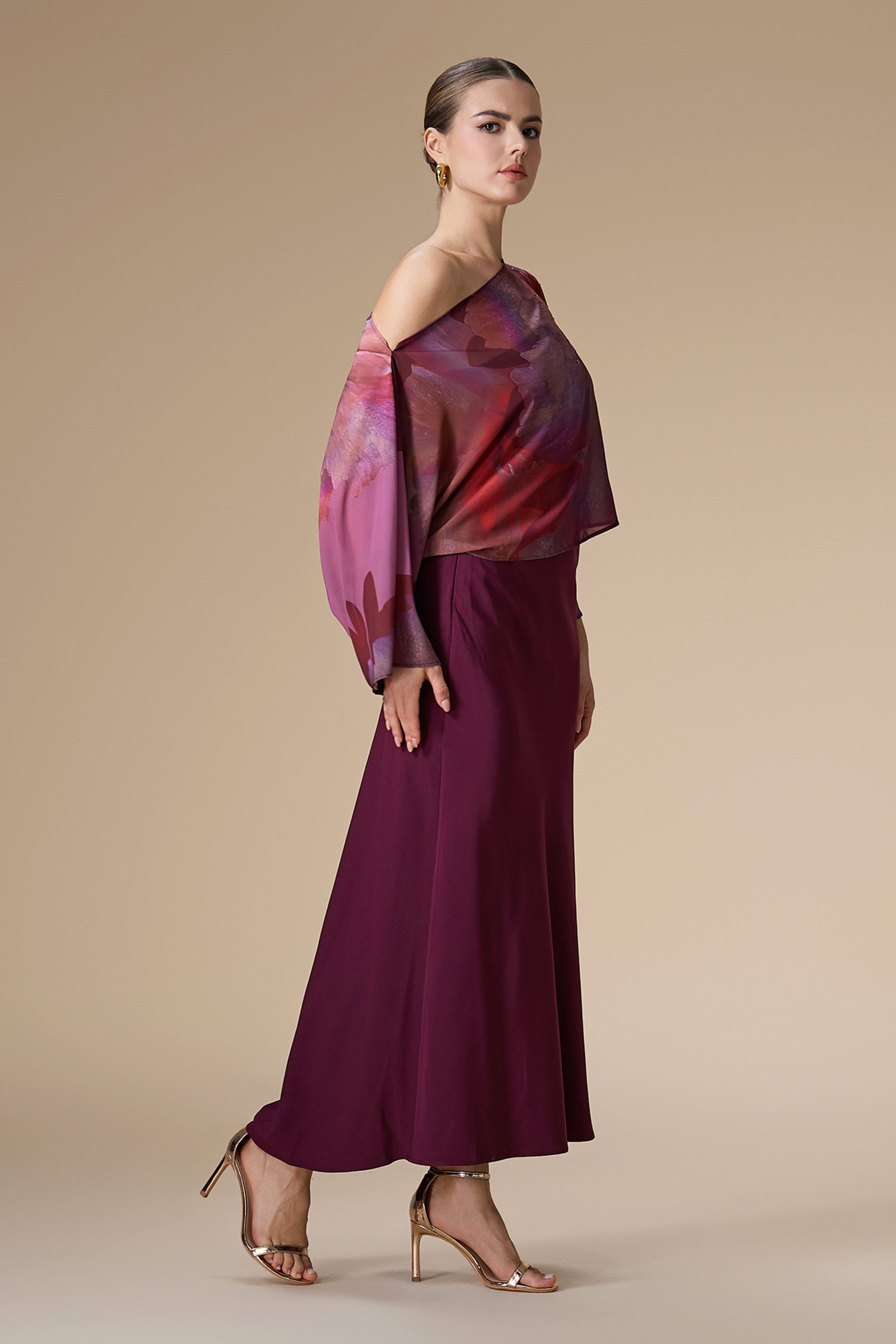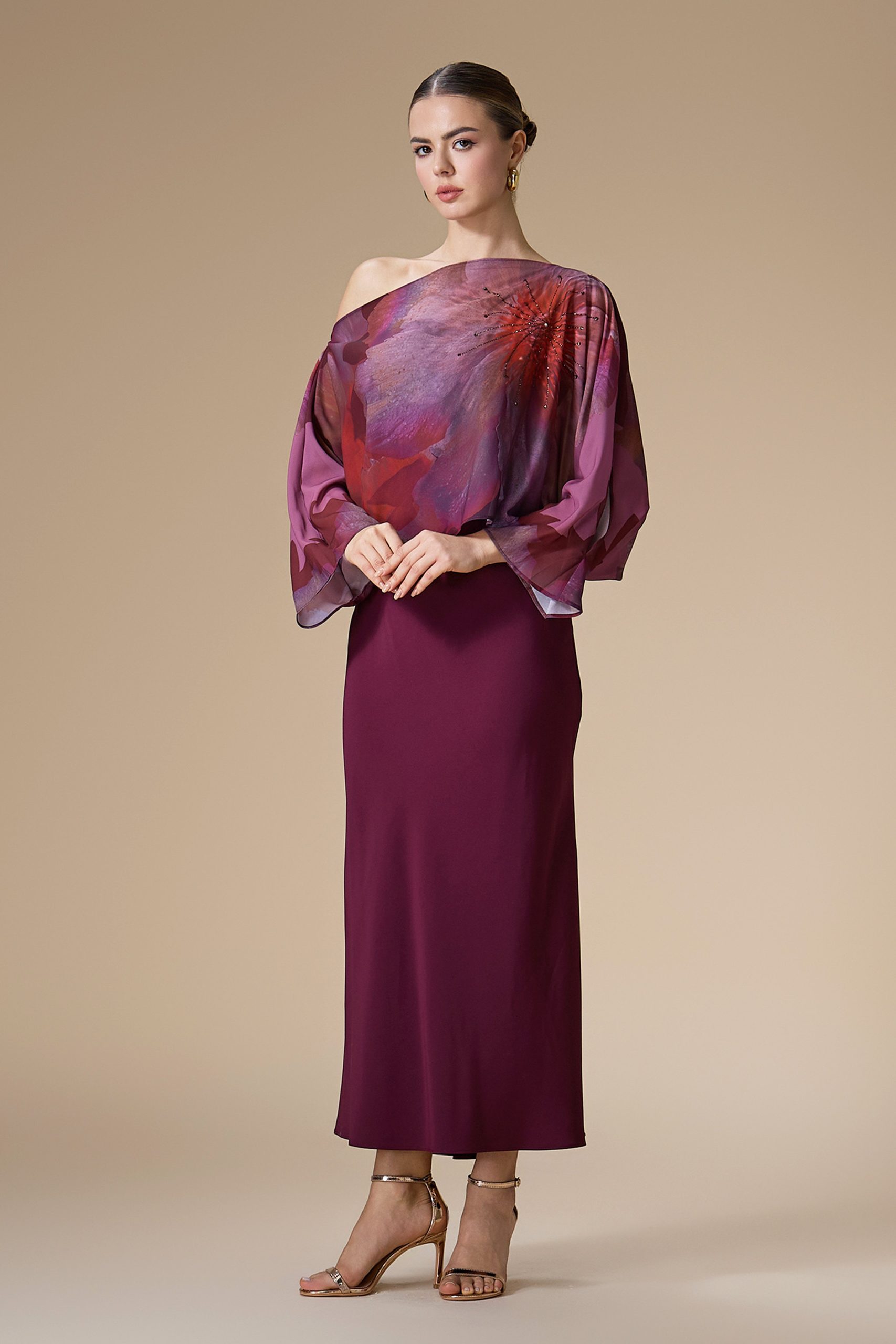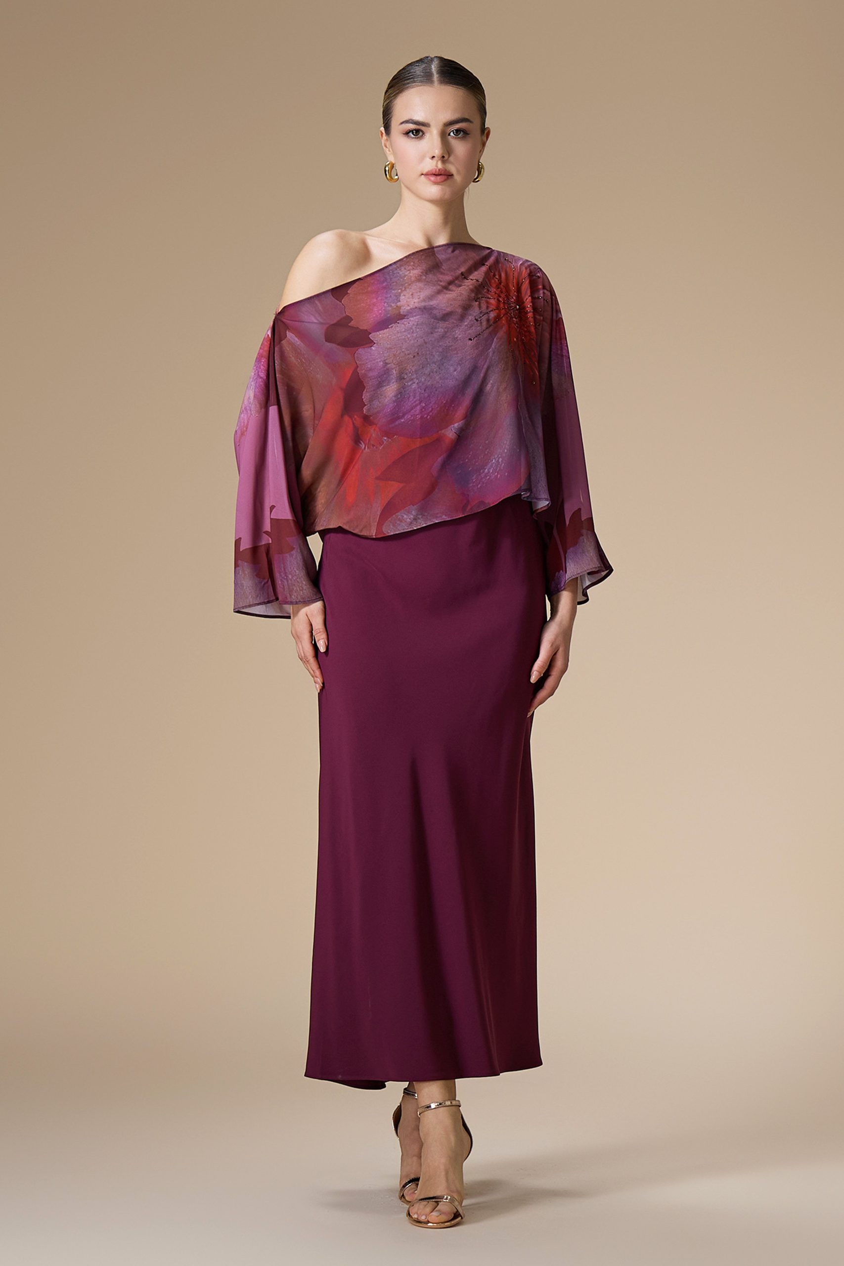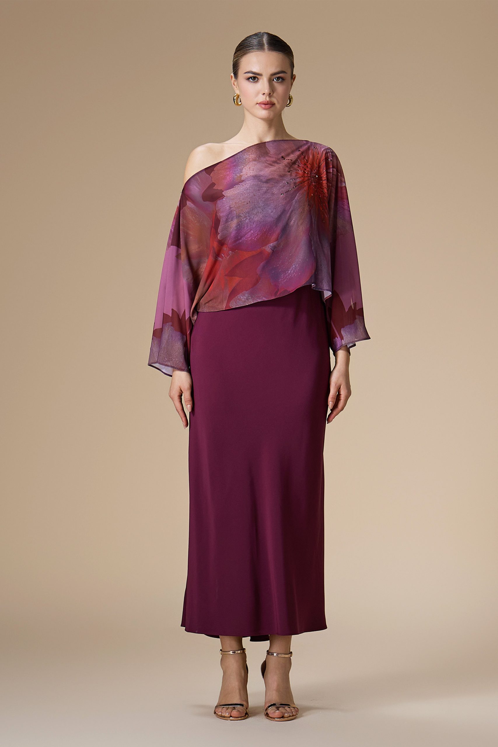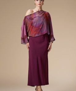 اكتان – فستان عنابي ميدي شيفون