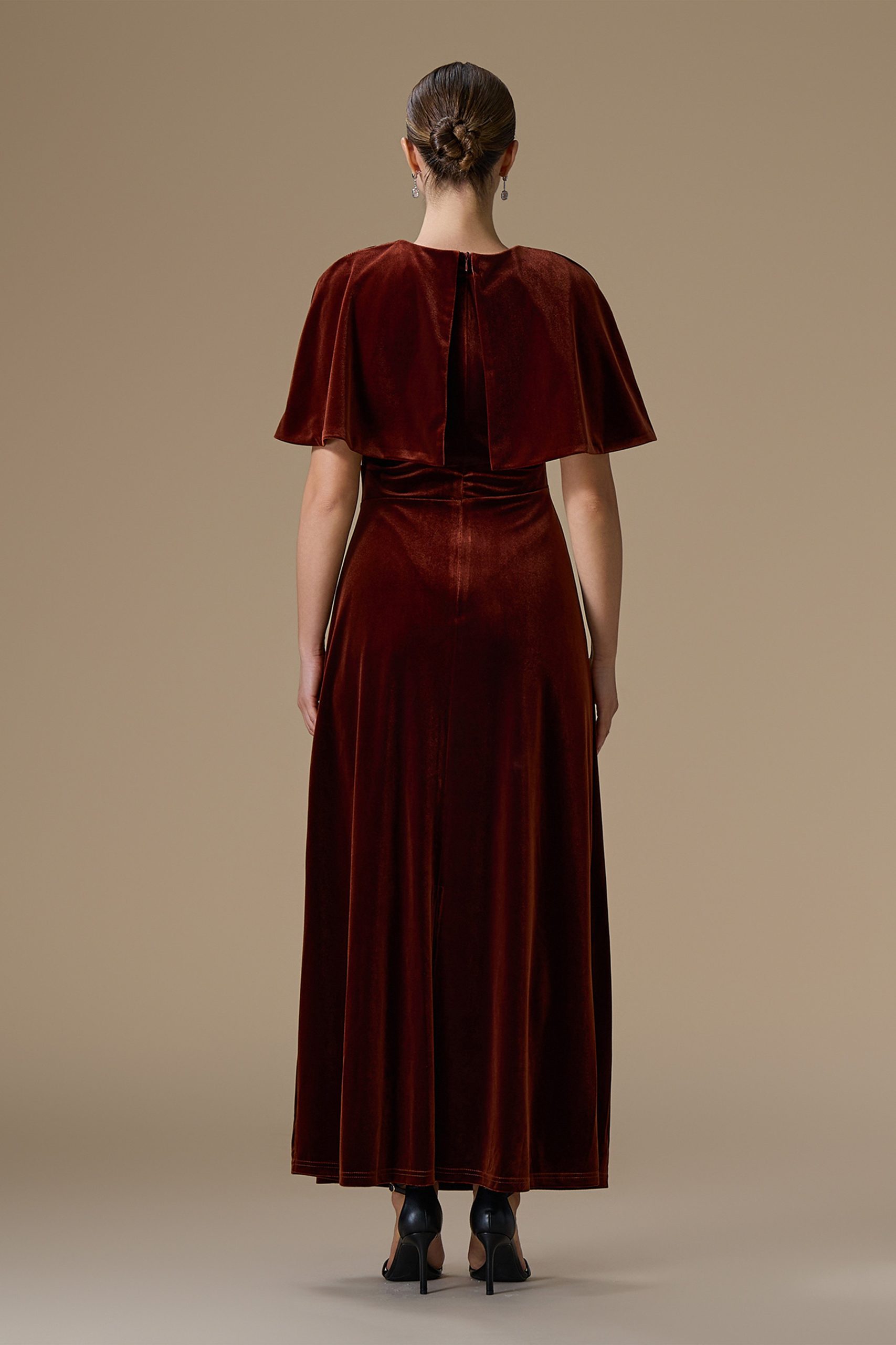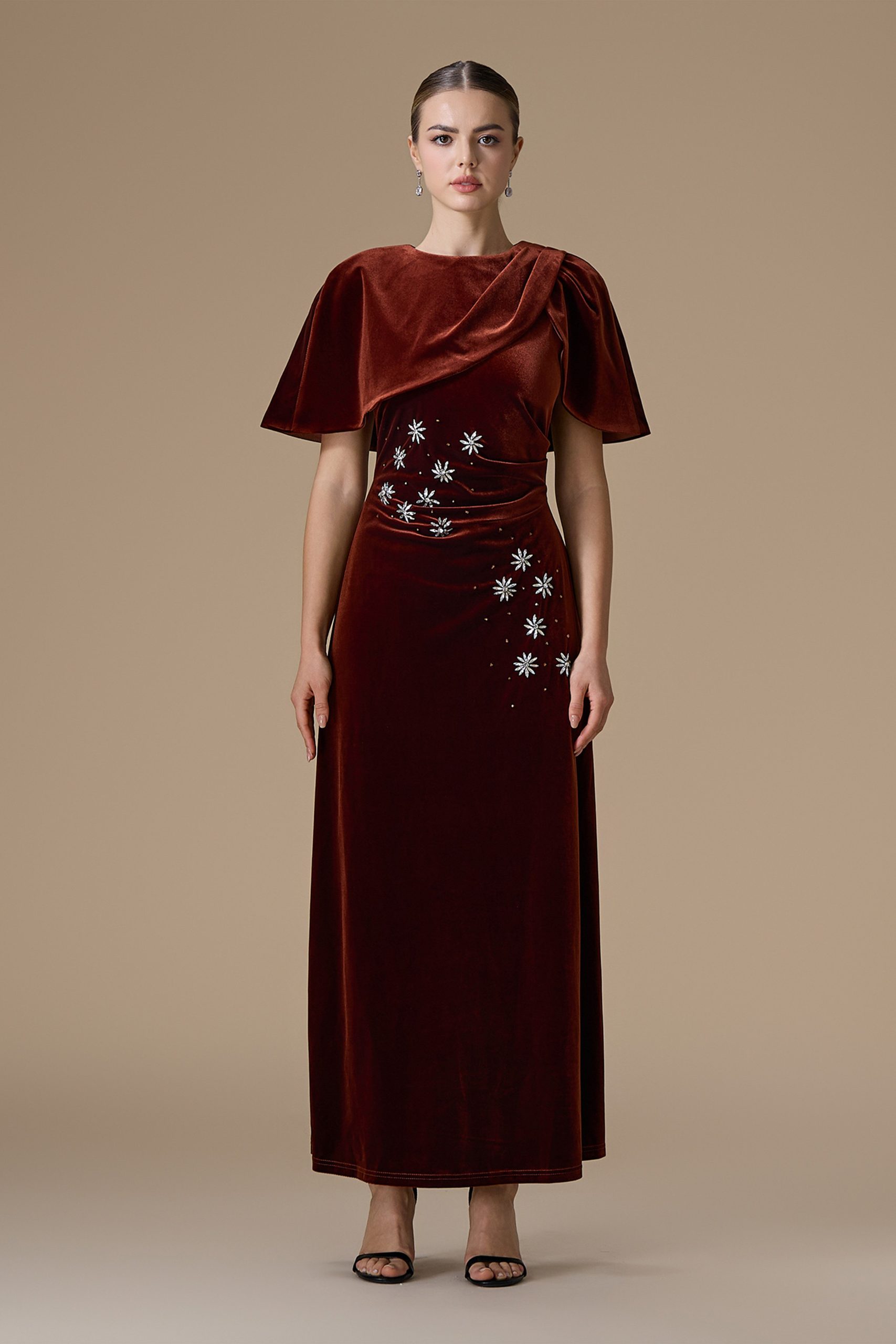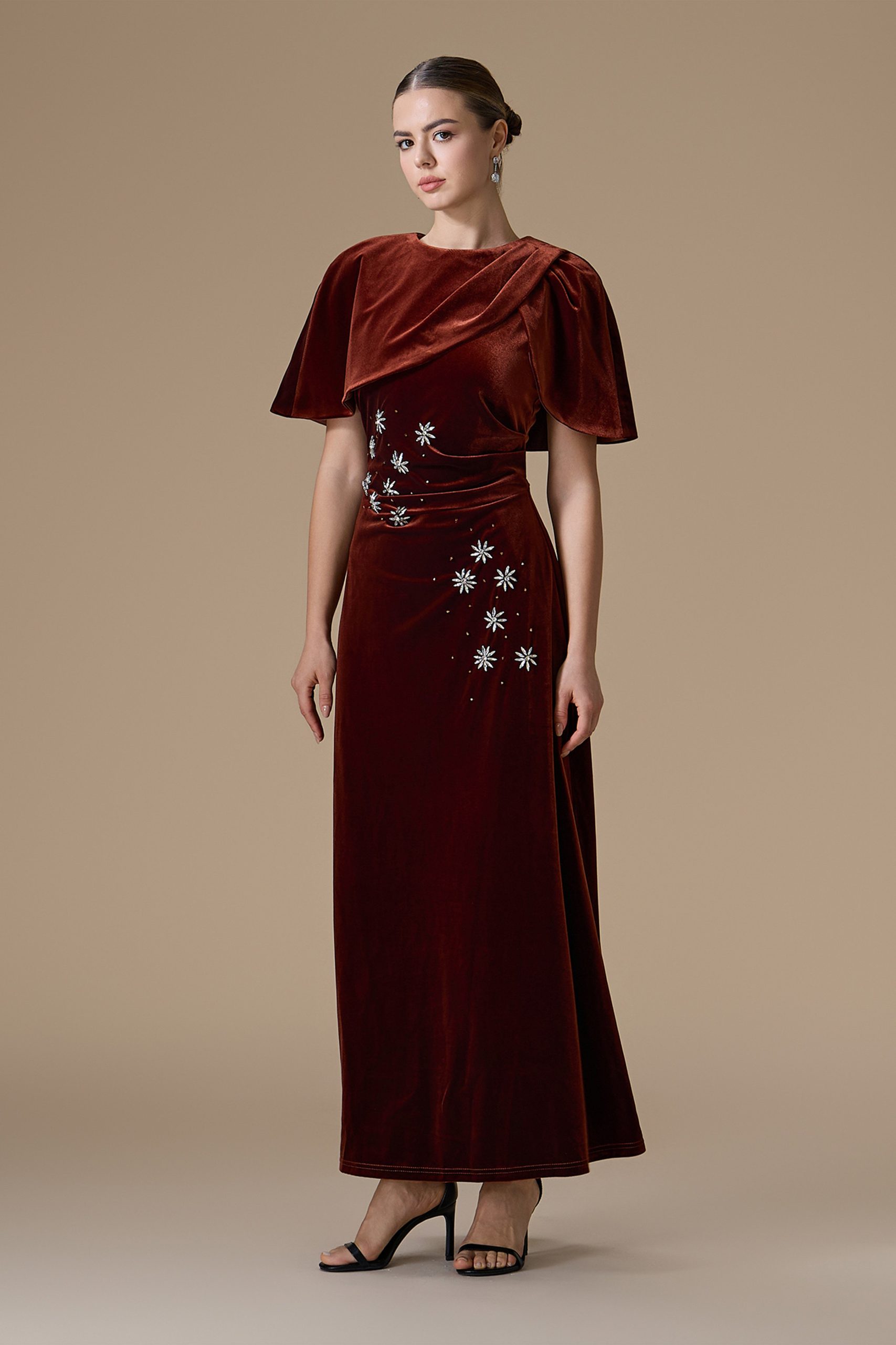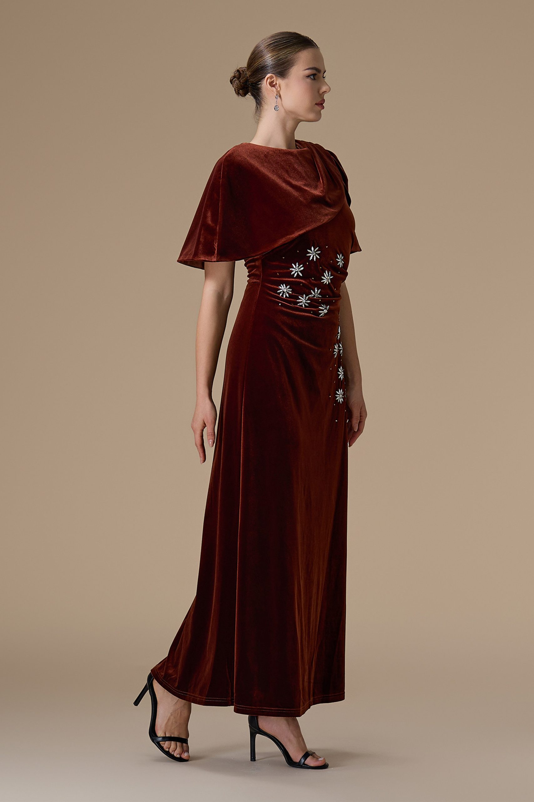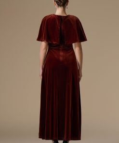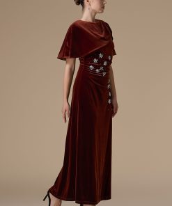 اكتان – فستان كستنائي طويل مخمل