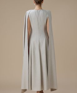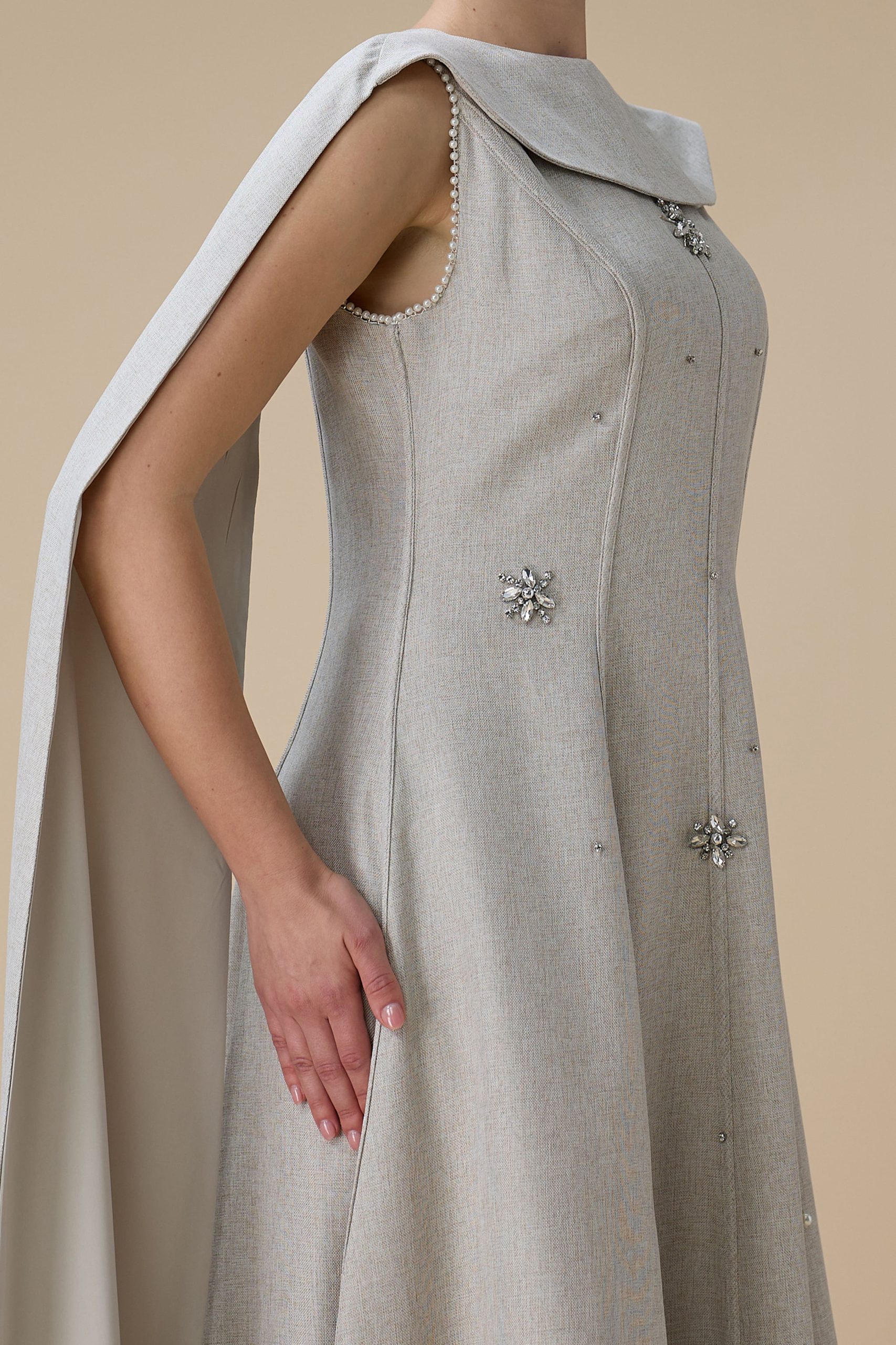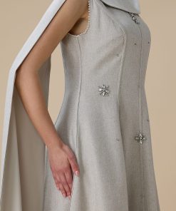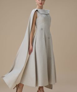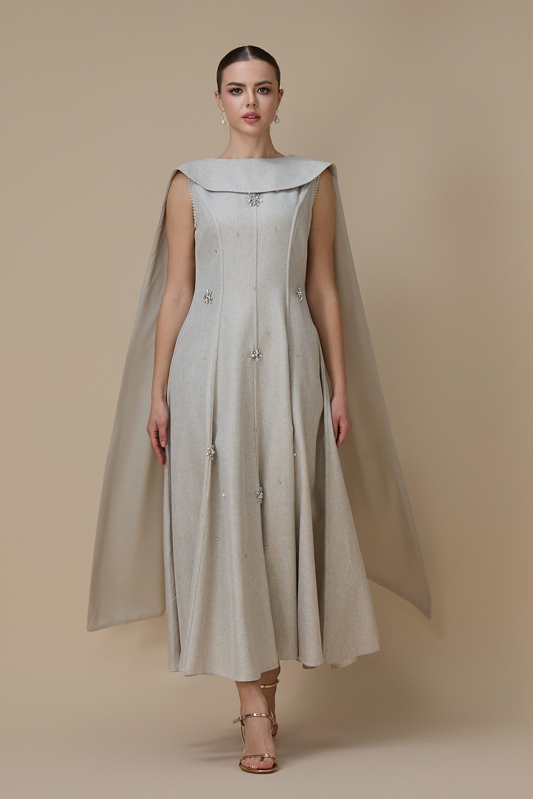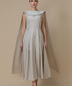 اكتان – فستان ماكسي أنيق بيج مع وشاح جانبي