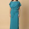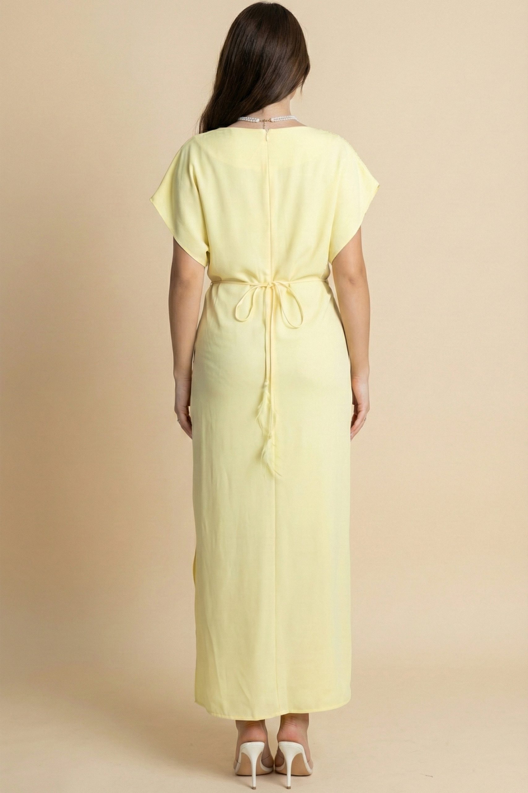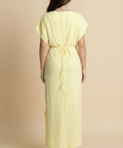 اكتان – فستان ماكسي بكتف مزين بورد لون اصفر