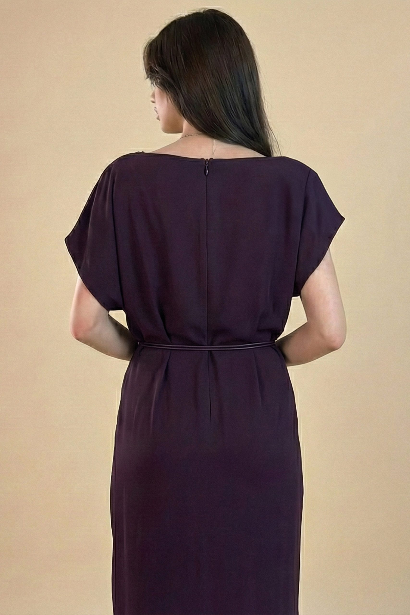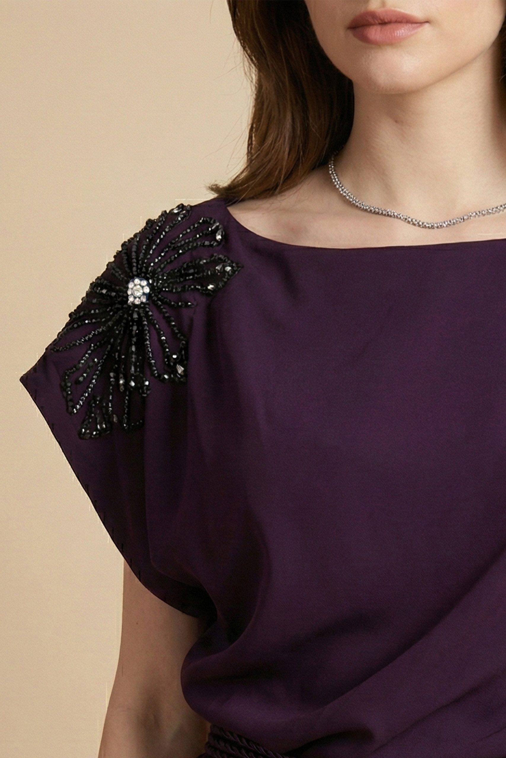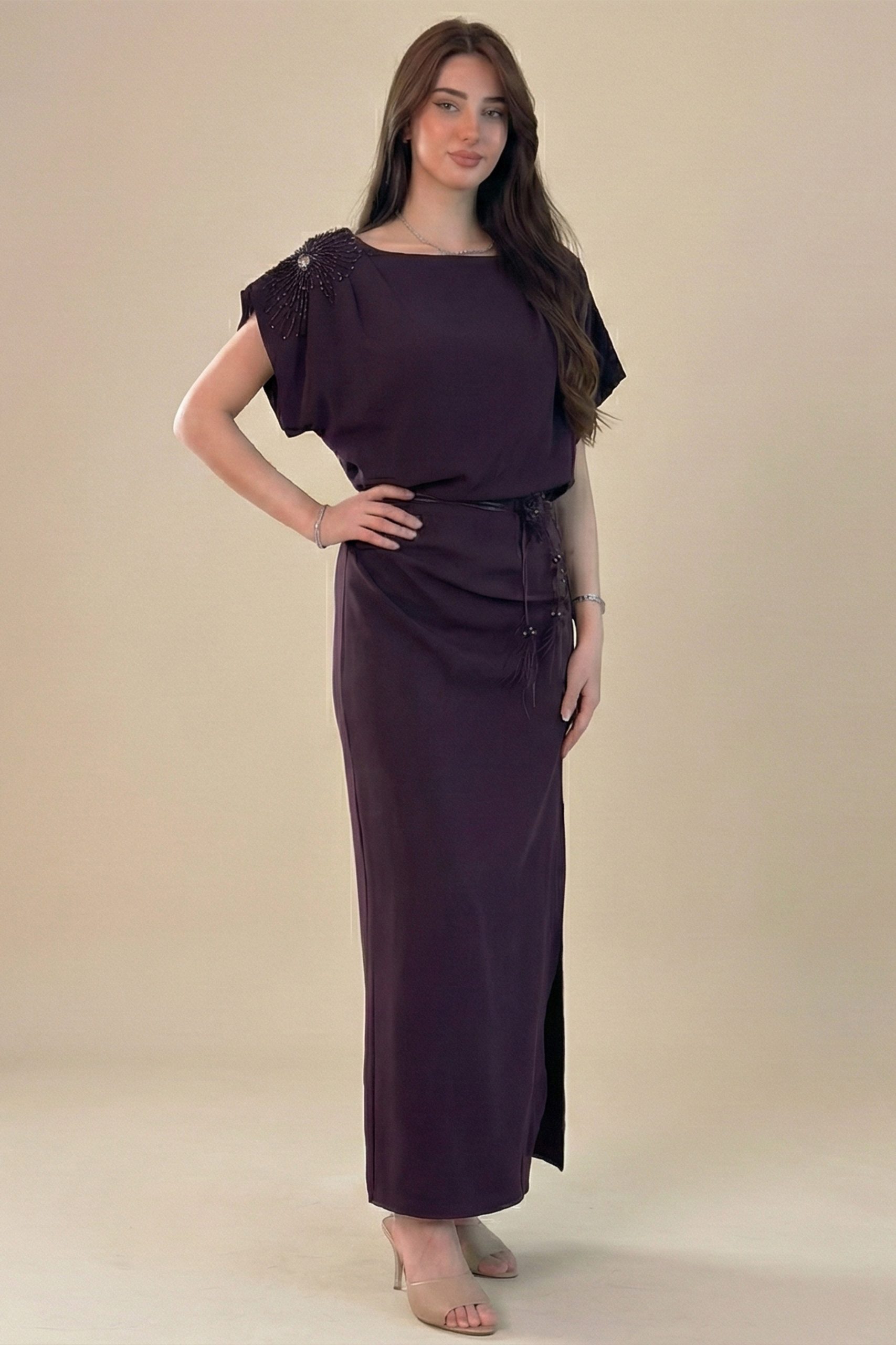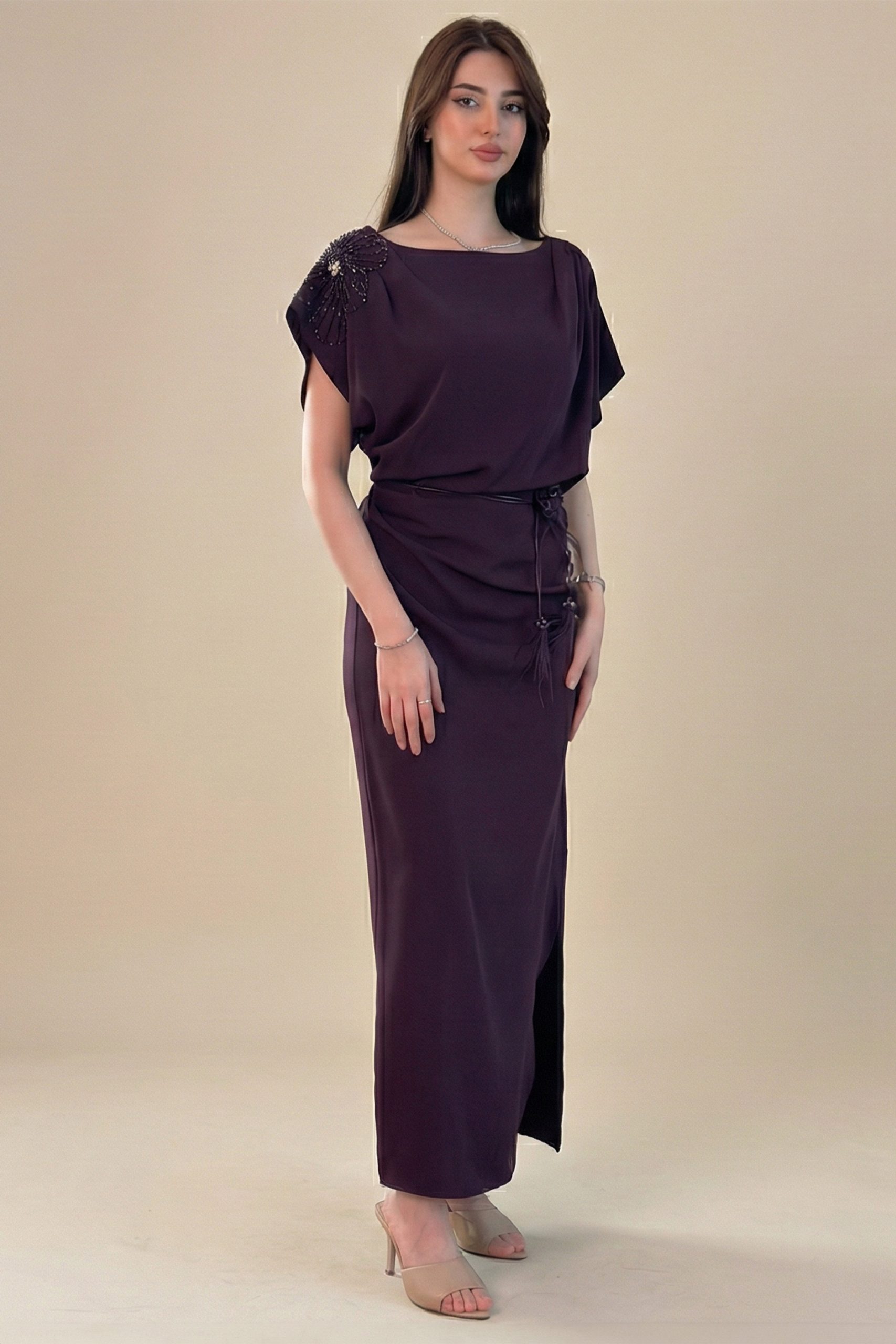 اكتان – فستان ماكسي بكتف مزين بورد لون بنفسجي