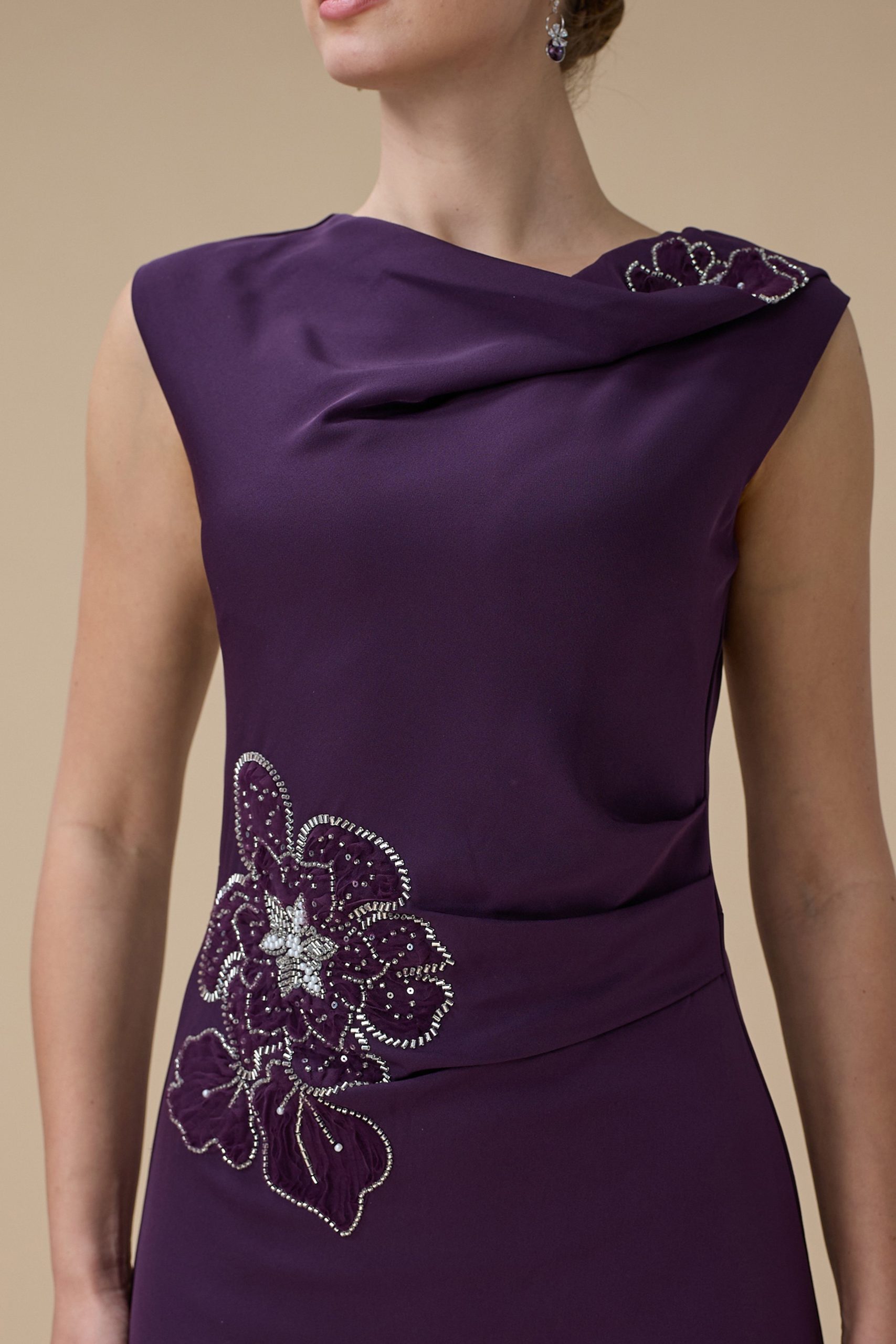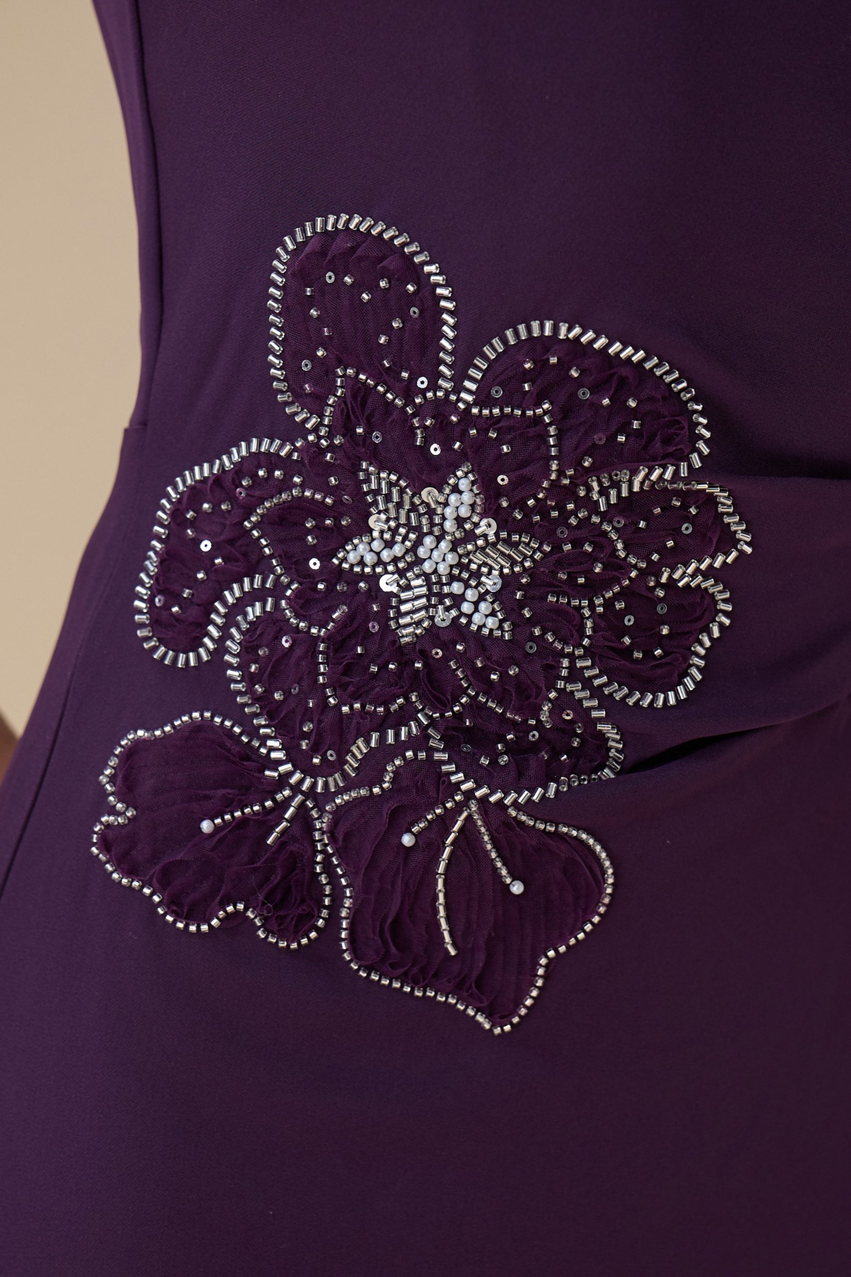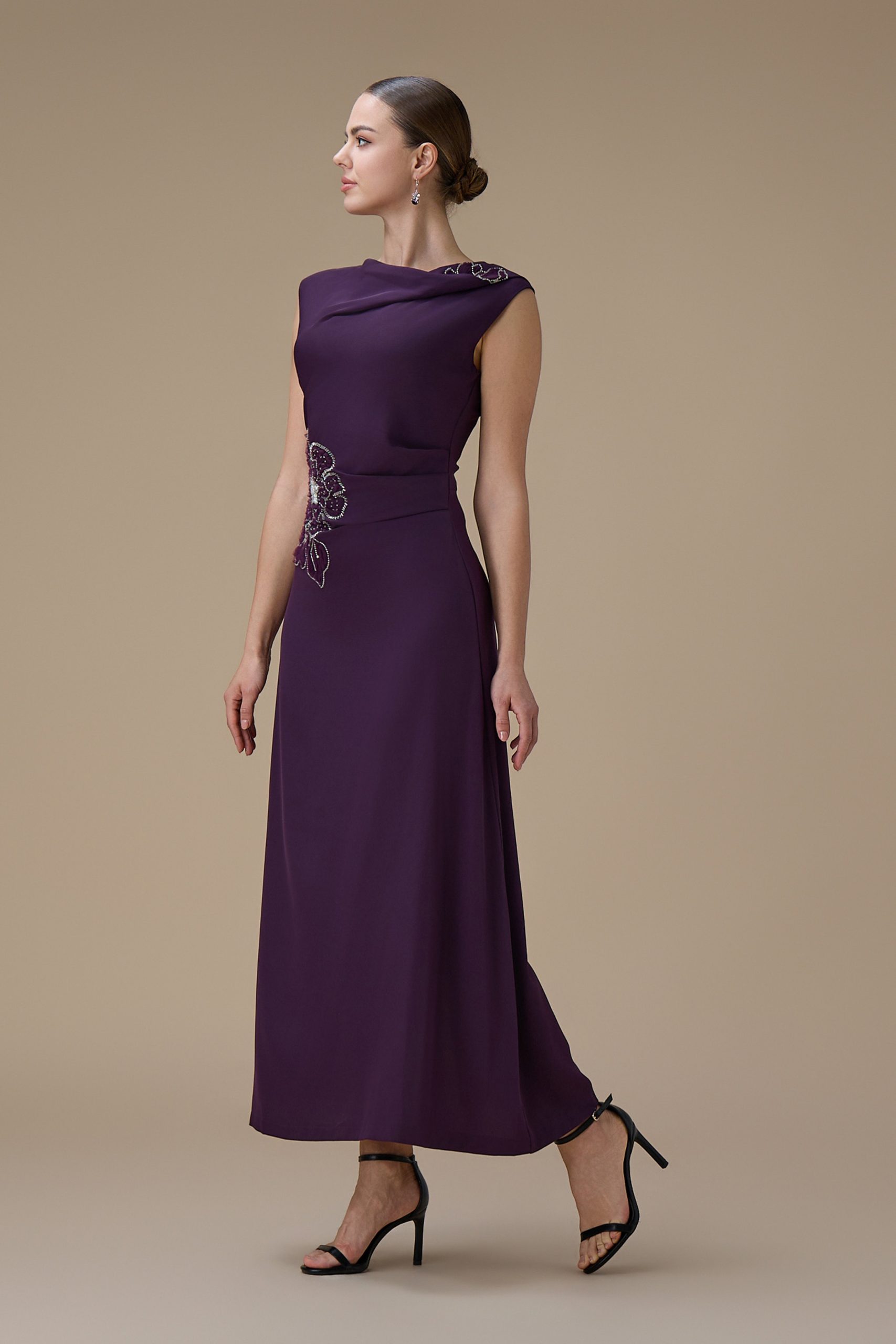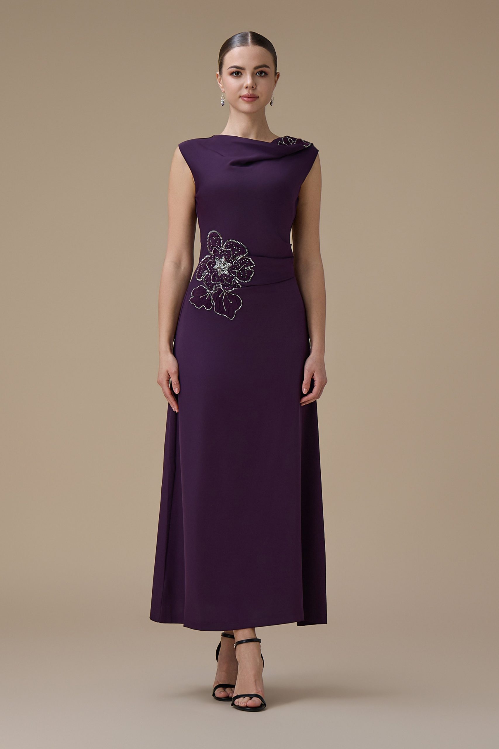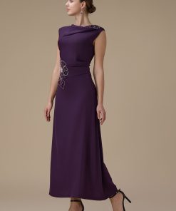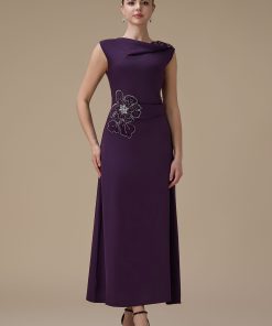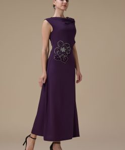 اكتان – فستان ماكسي بلون بنفسجي مع تطريز زهري