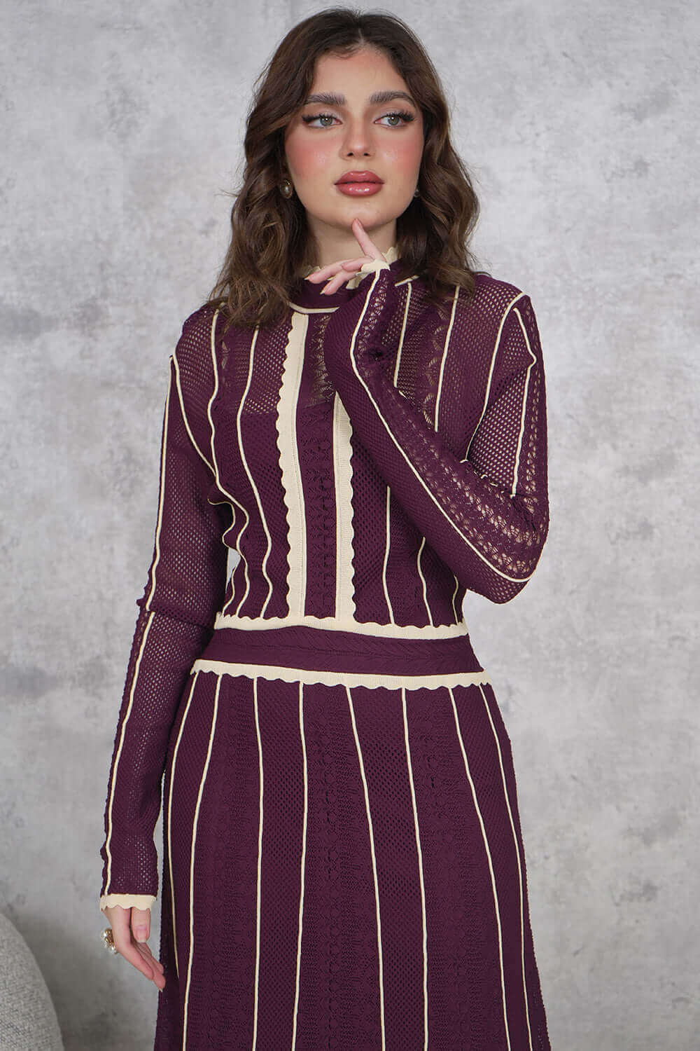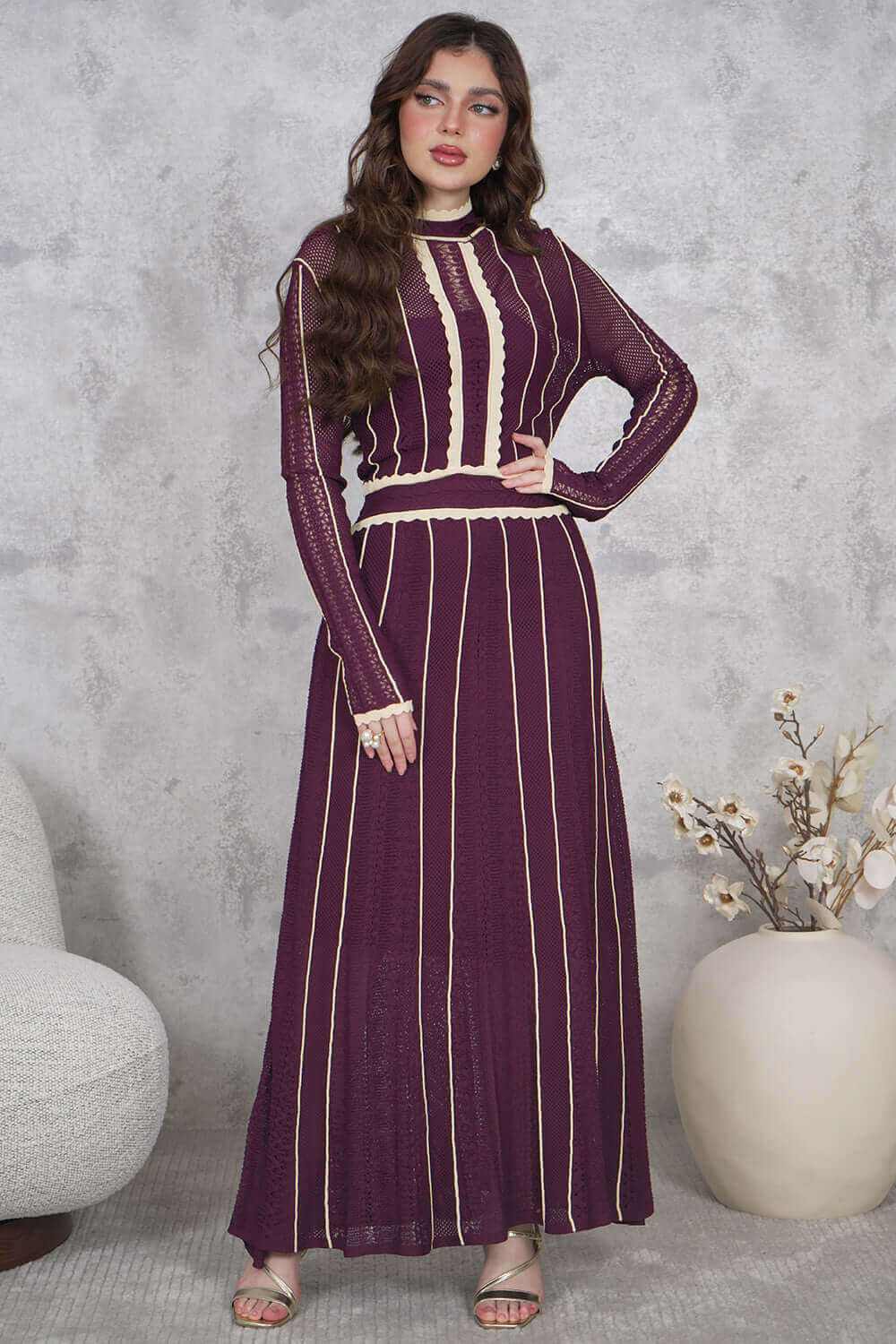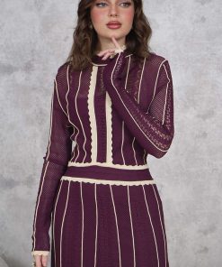 اكتان – فستان ماكسي تريكو مبطن لون موف
