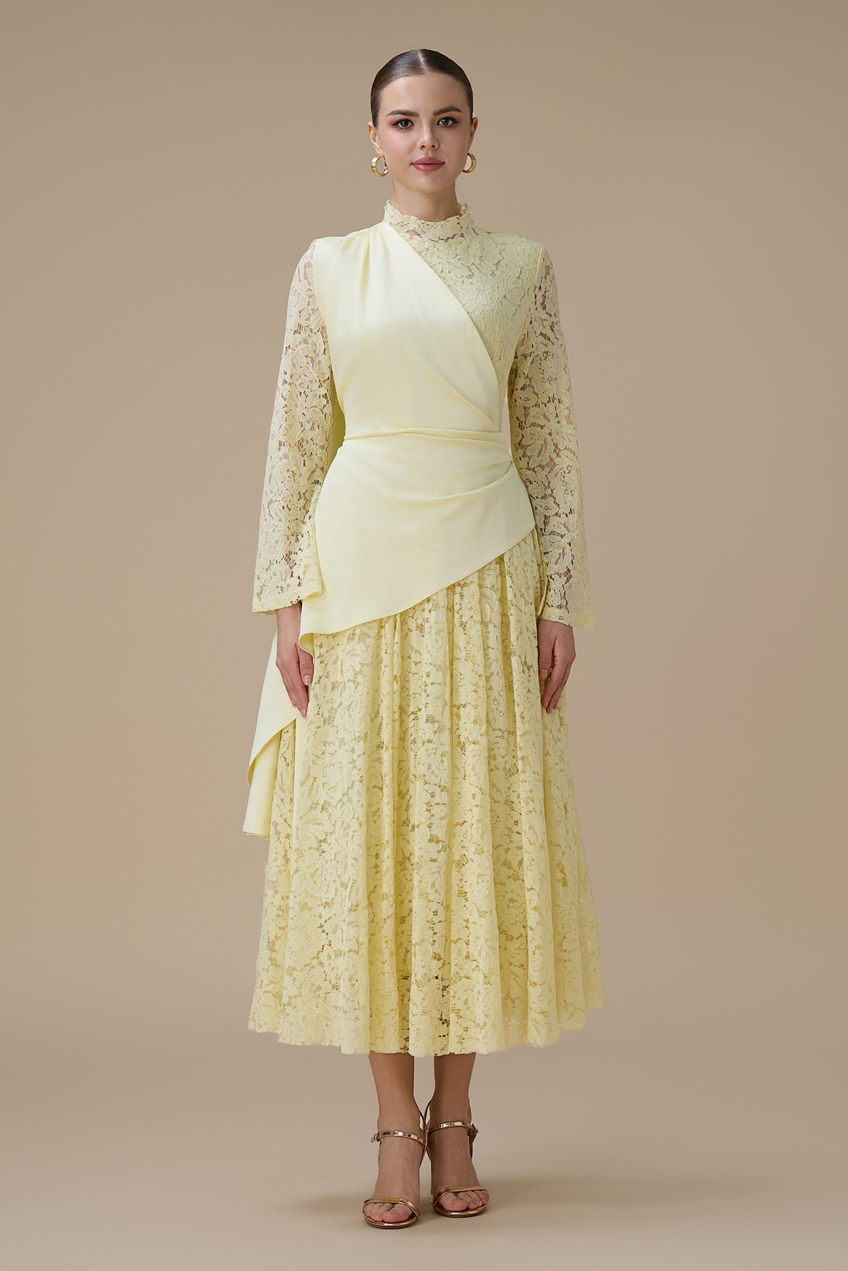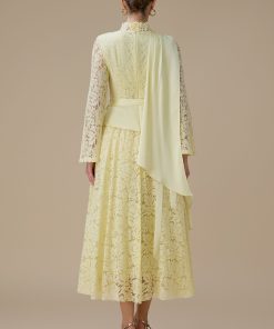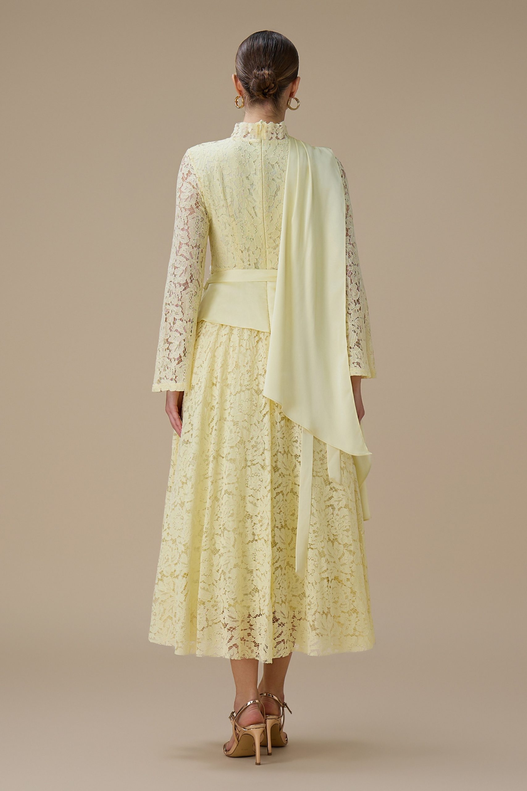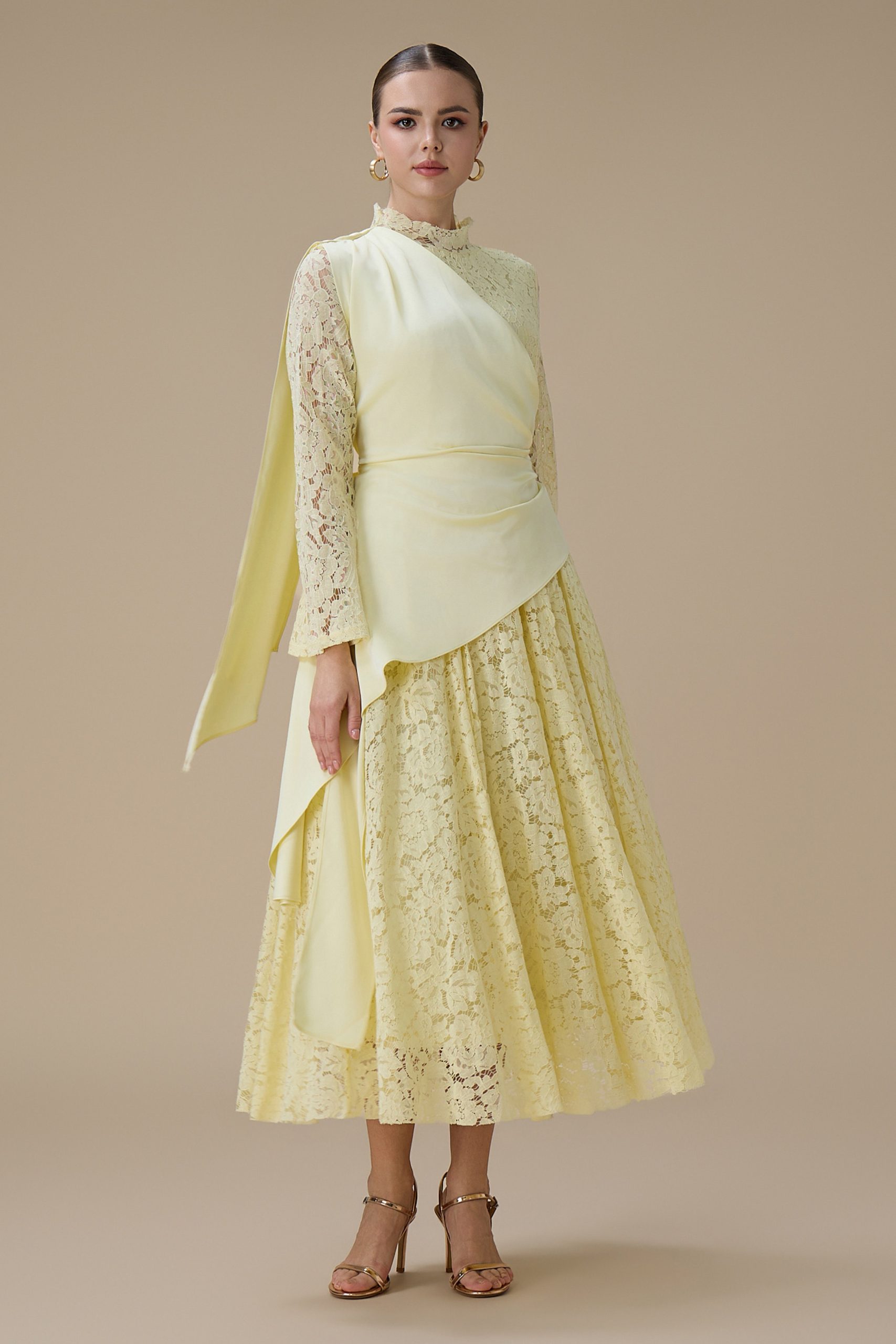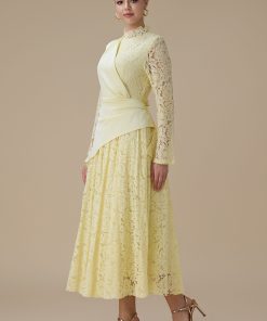 اكتان – فستان ماكسي دانتيل أصفر فاتح