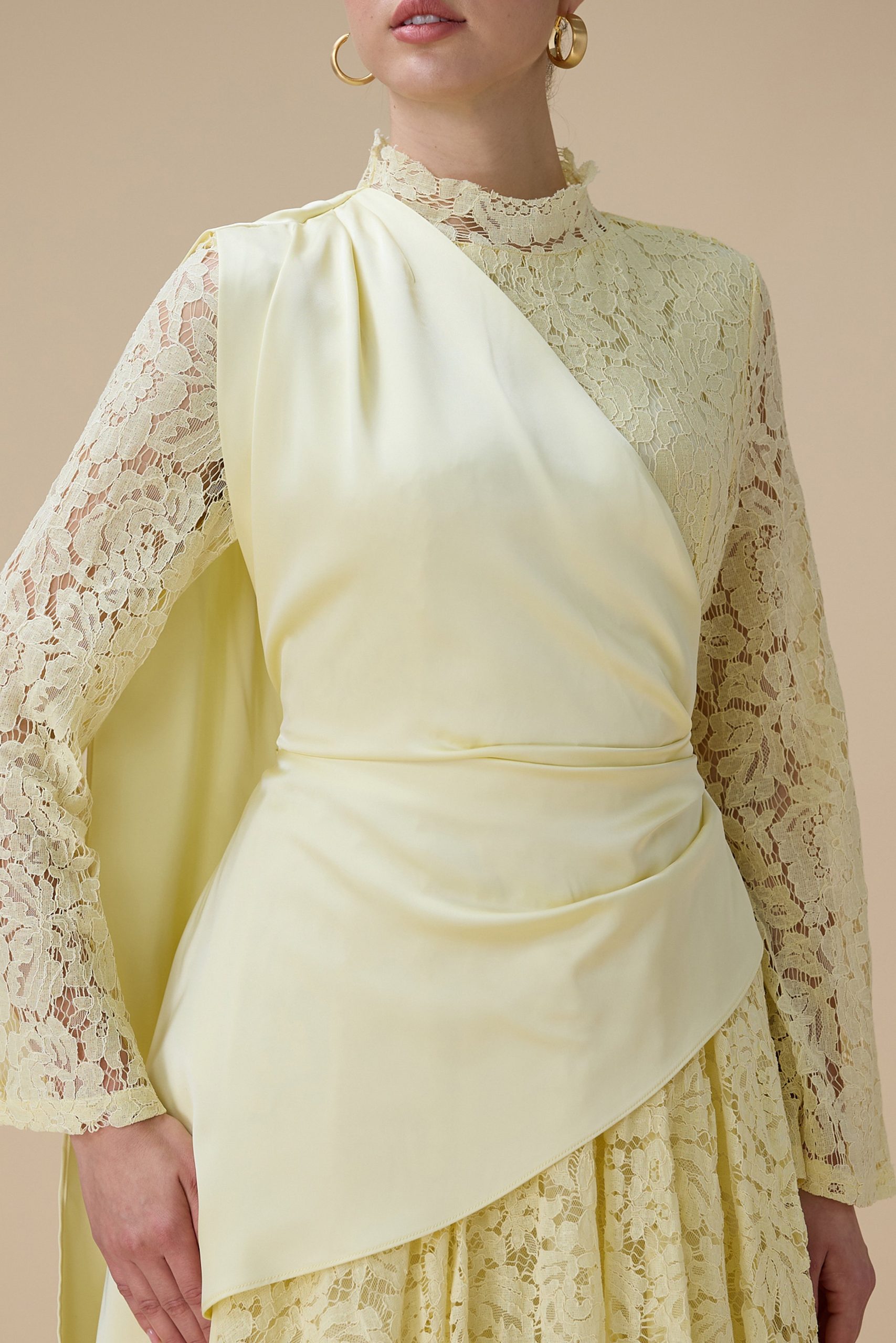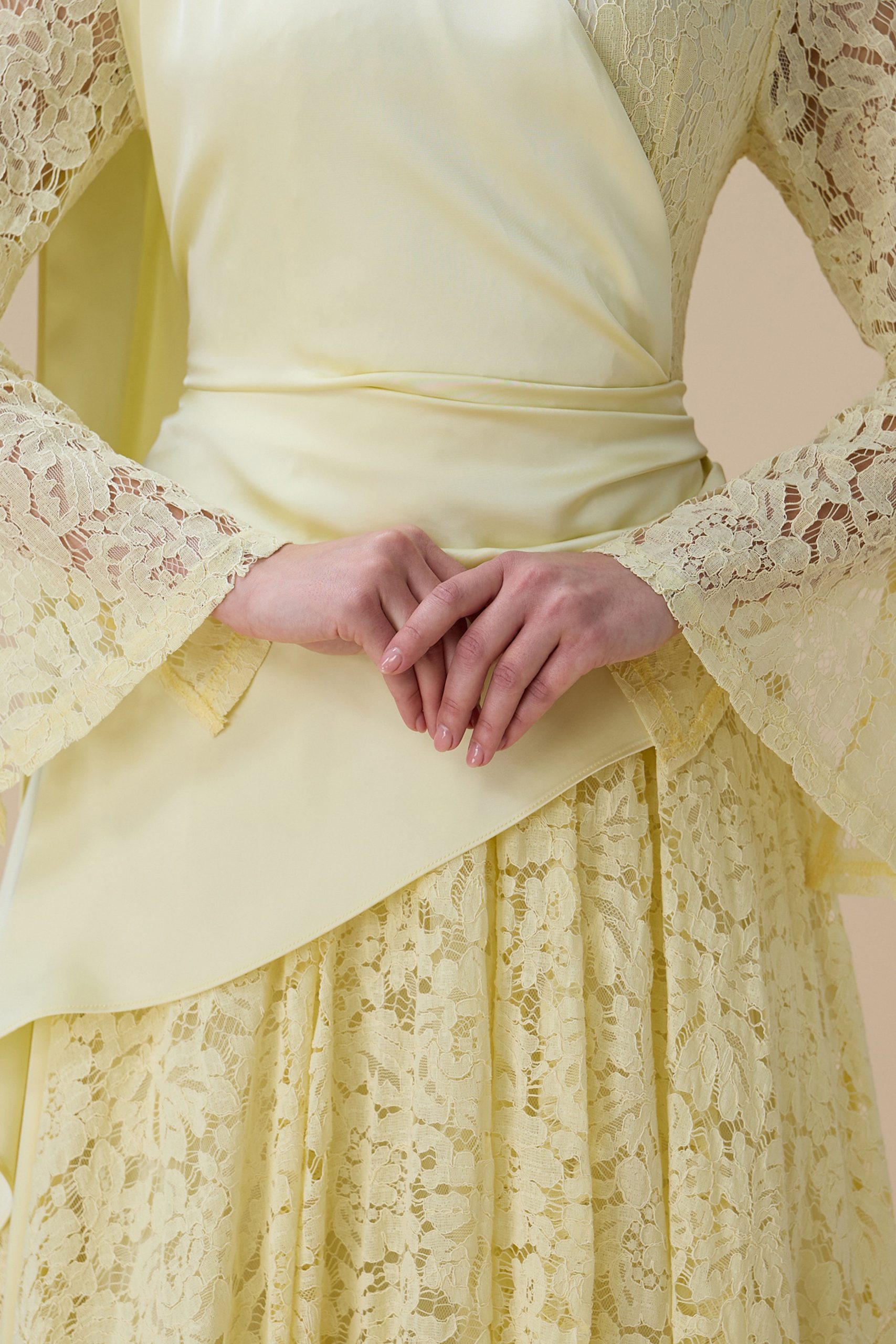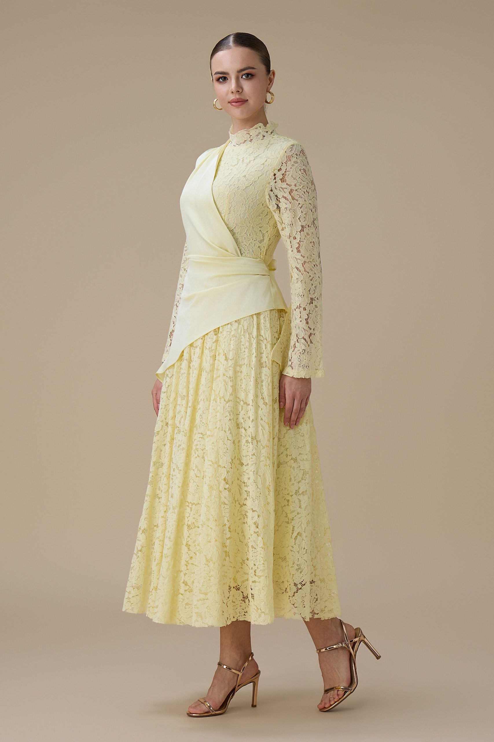اكتان – فستان ماكسي دانتيل أصفر فاتح