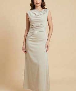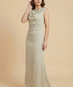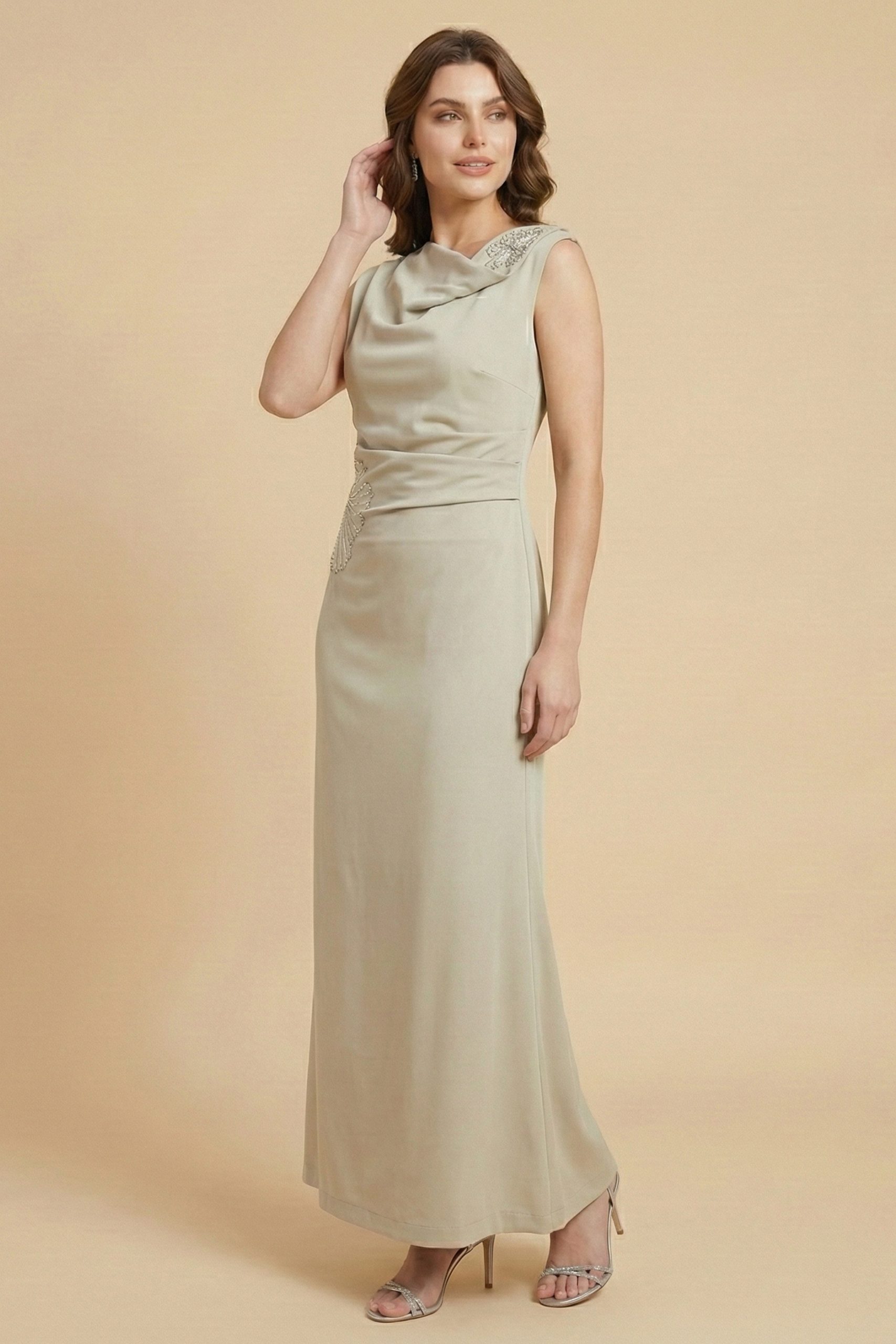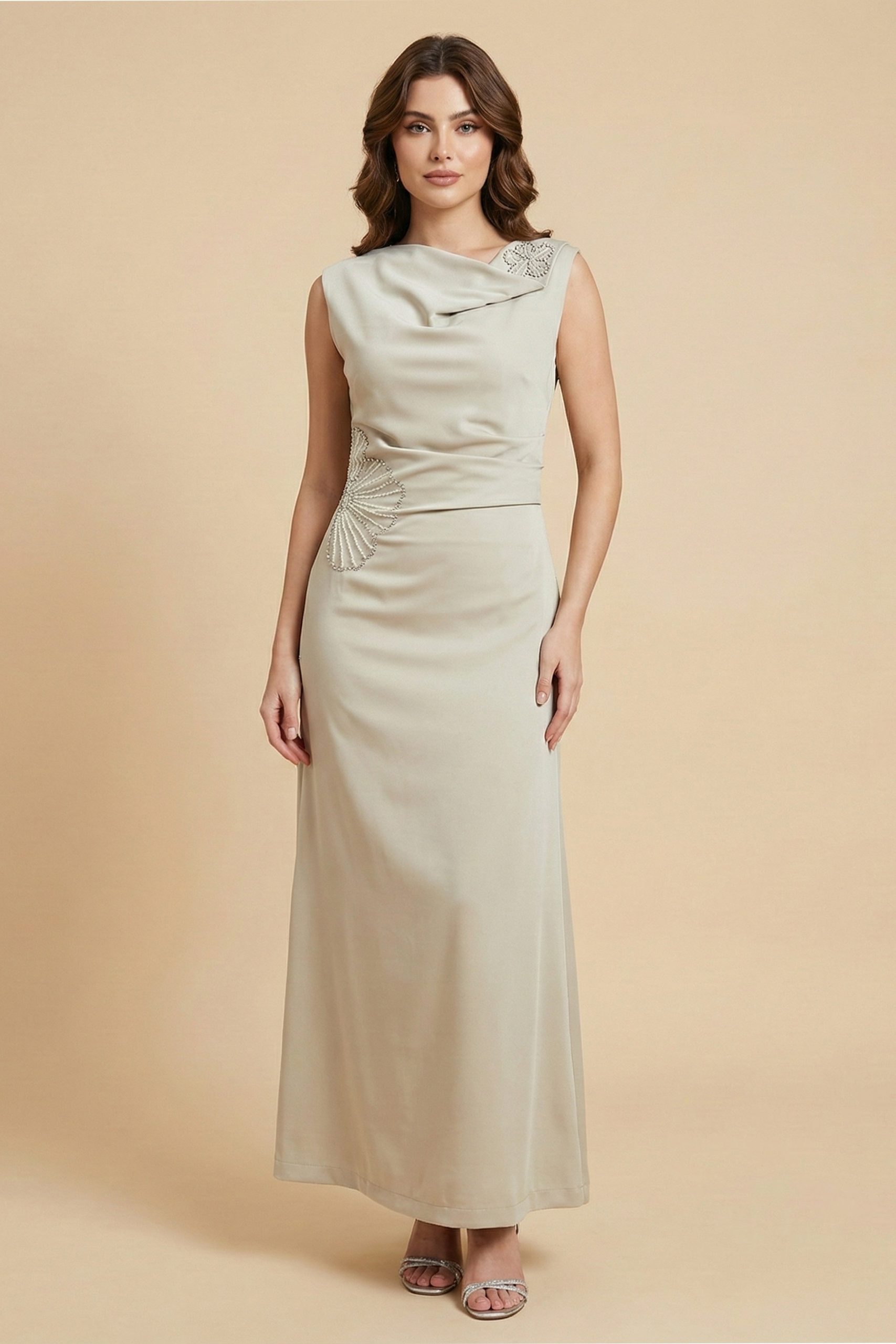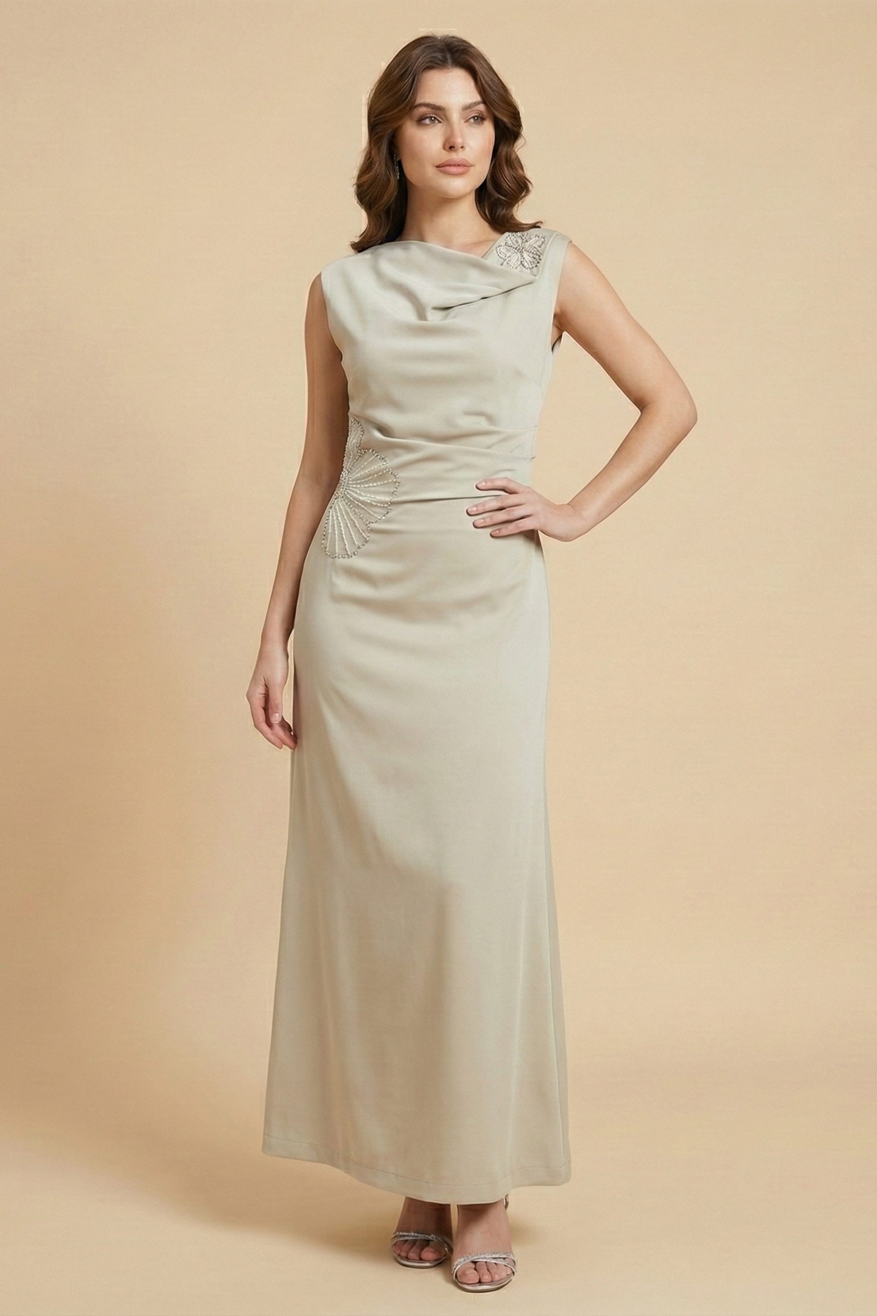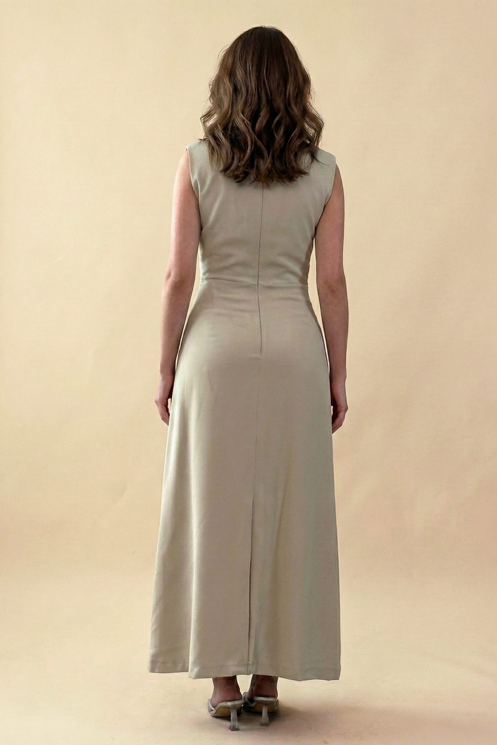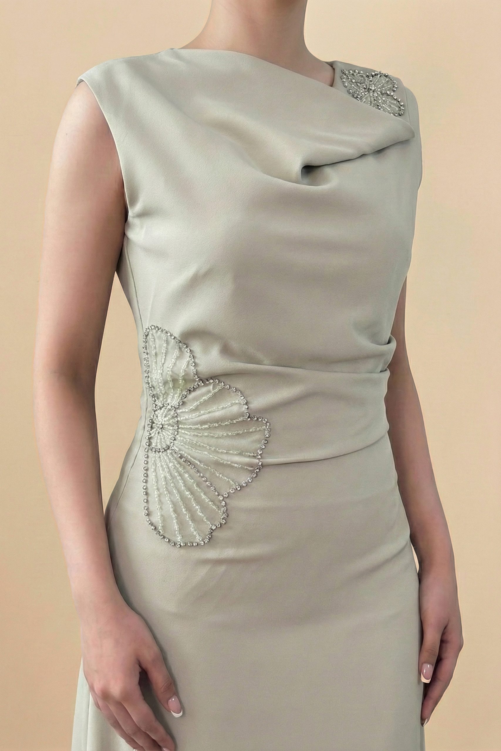 اكتان – فستان ماكسي درابيه مزيت بالفصوص لون اخضر فاتح