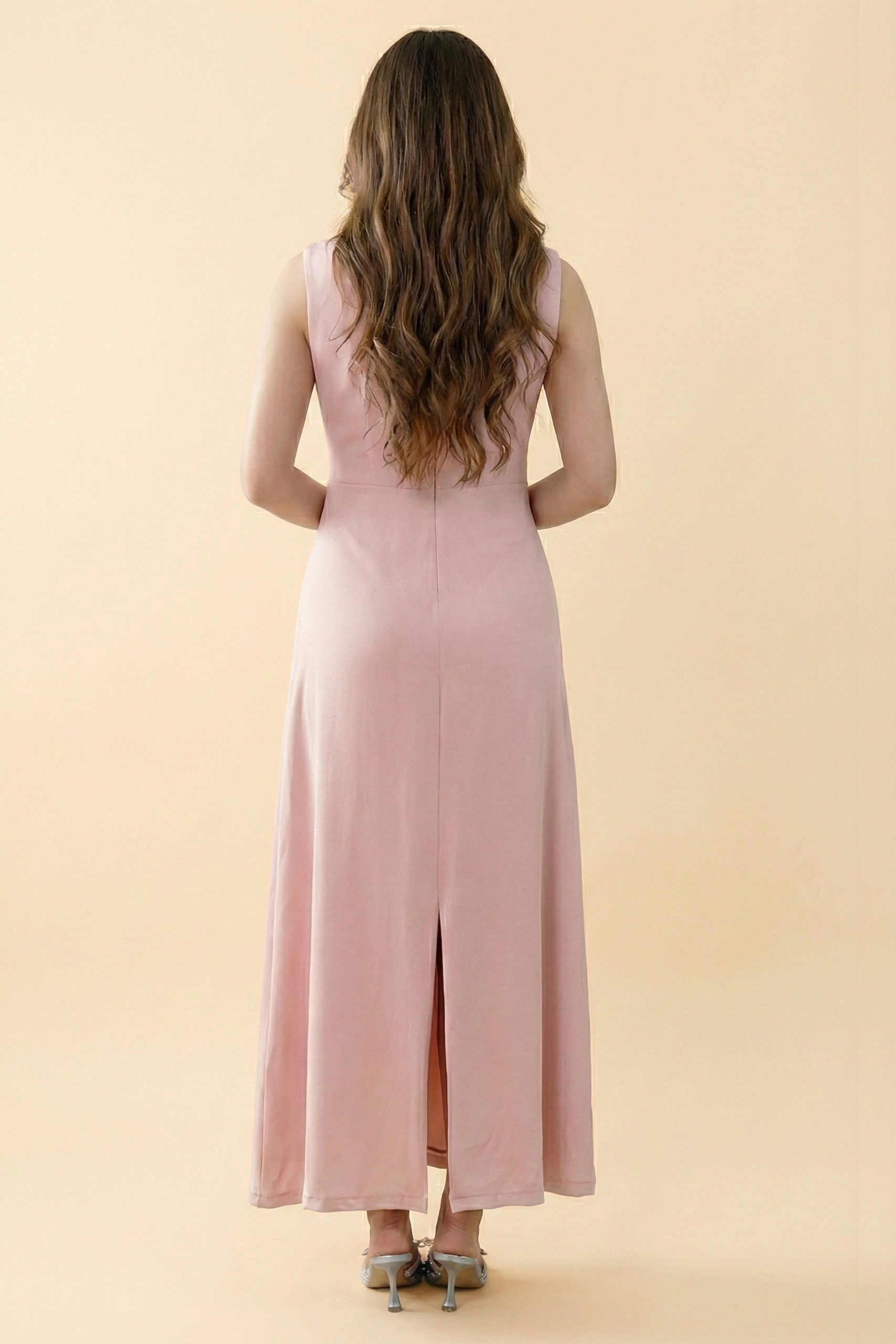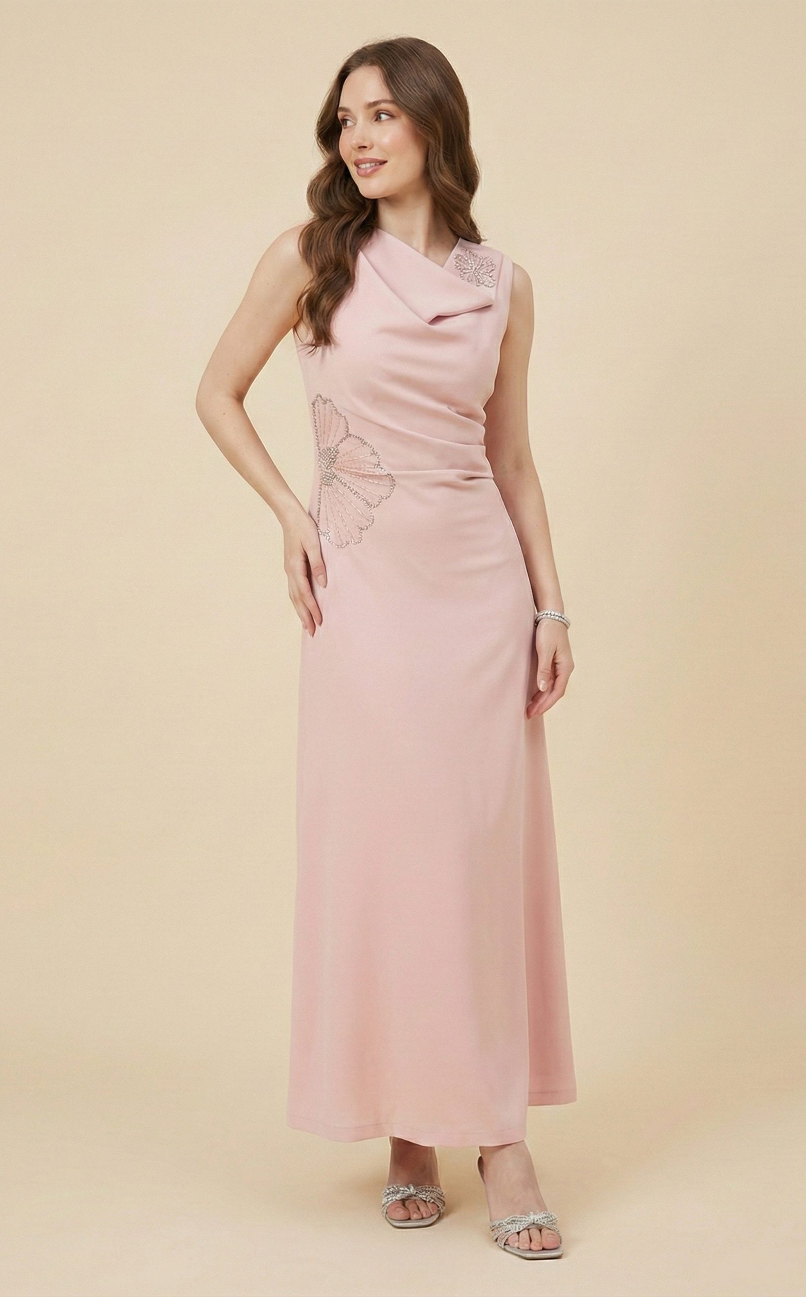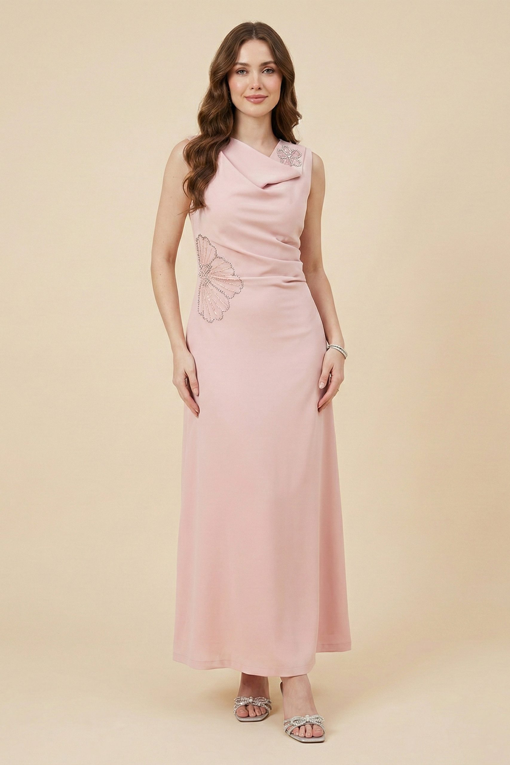اكتان – فستان ماكسي درابيه مزيت بالفصوص لون وردي