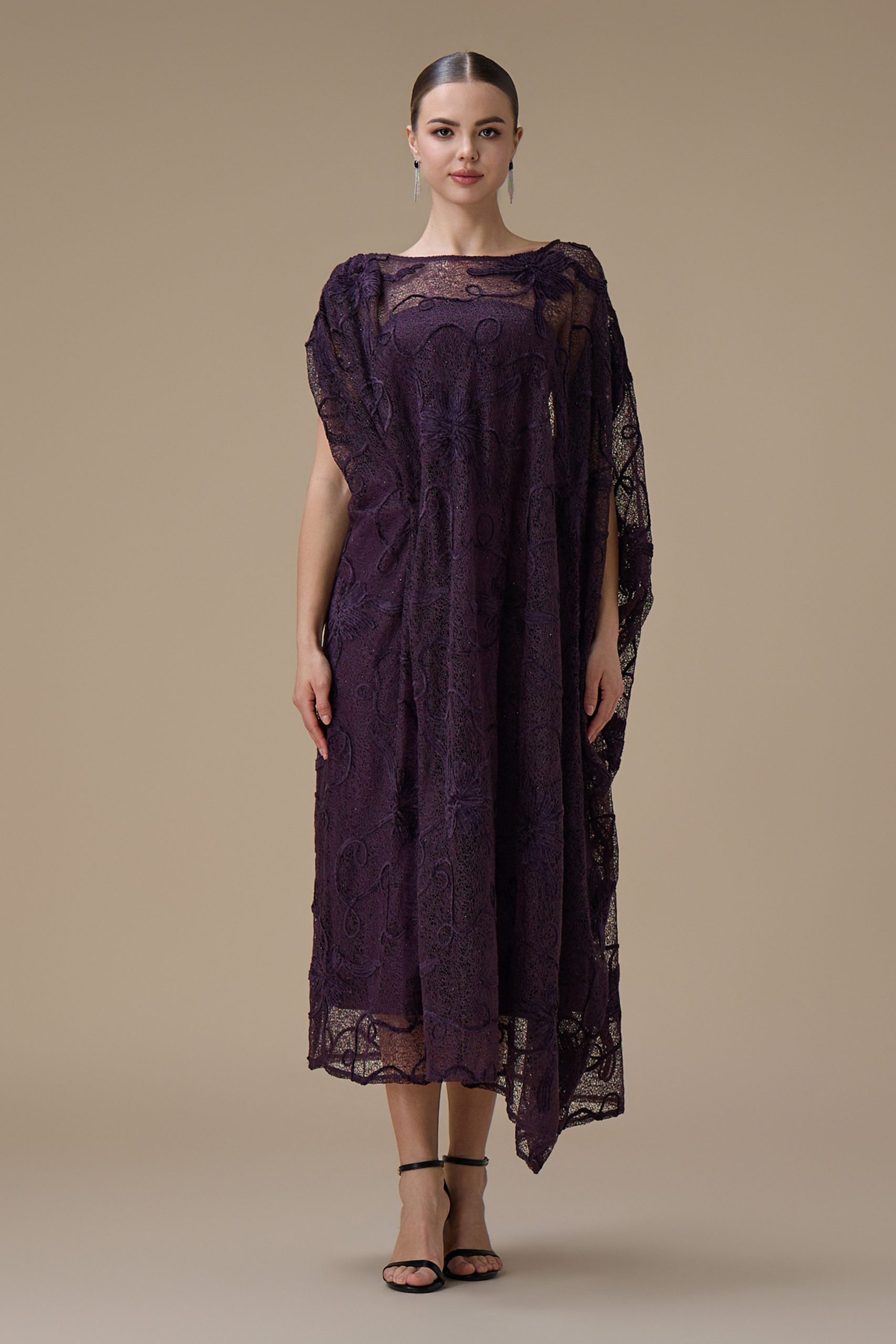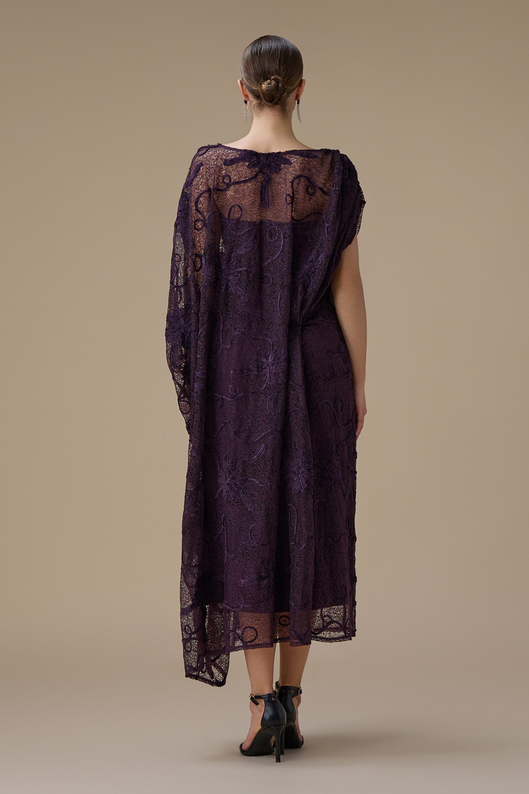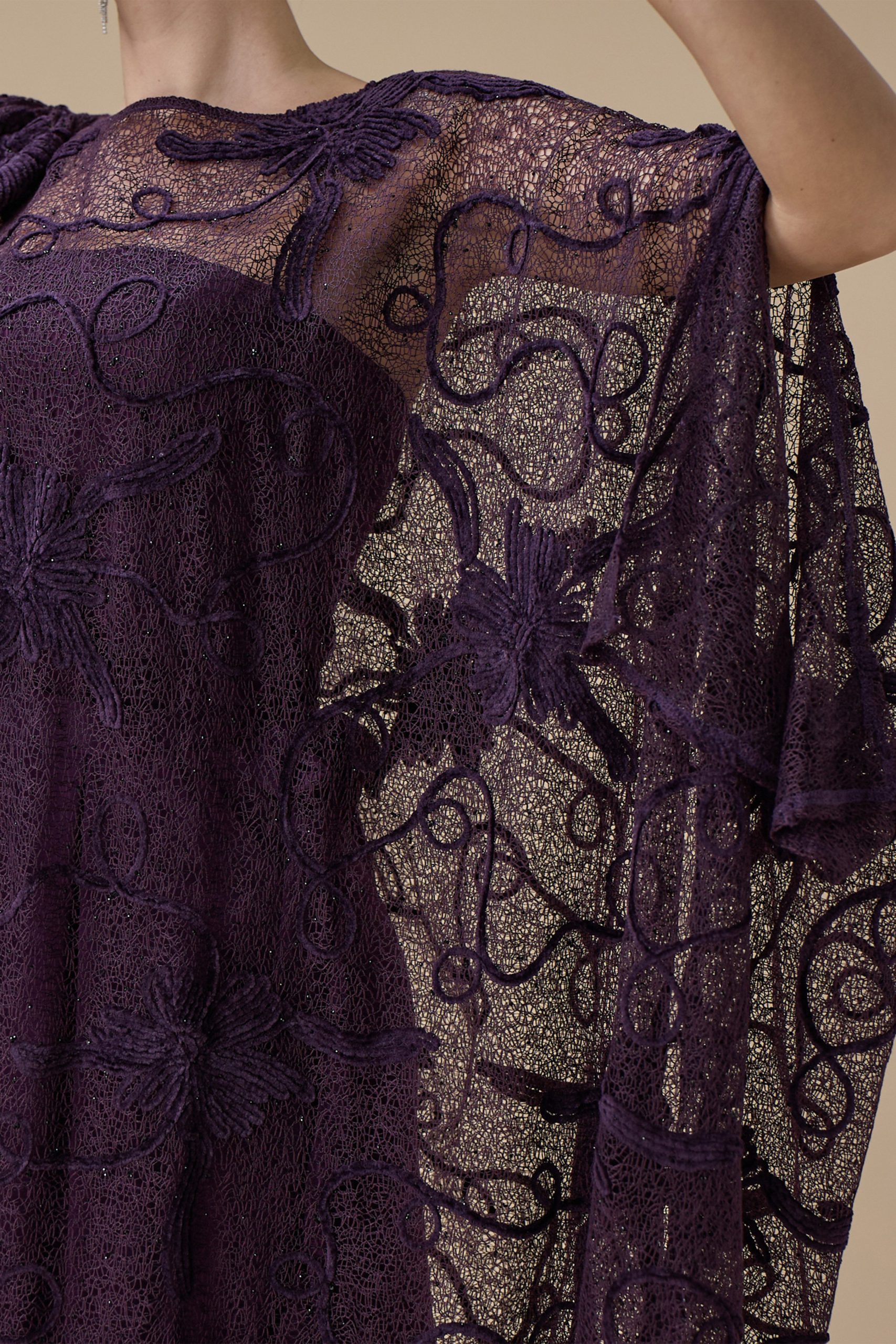 اكتان – فستان موف دانتيل واسع بقصة كاب