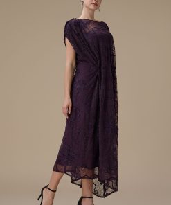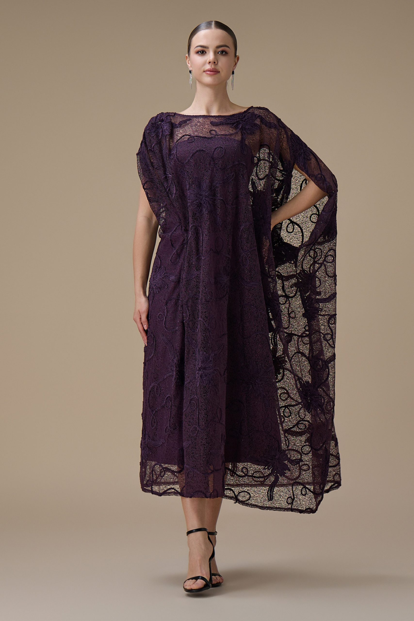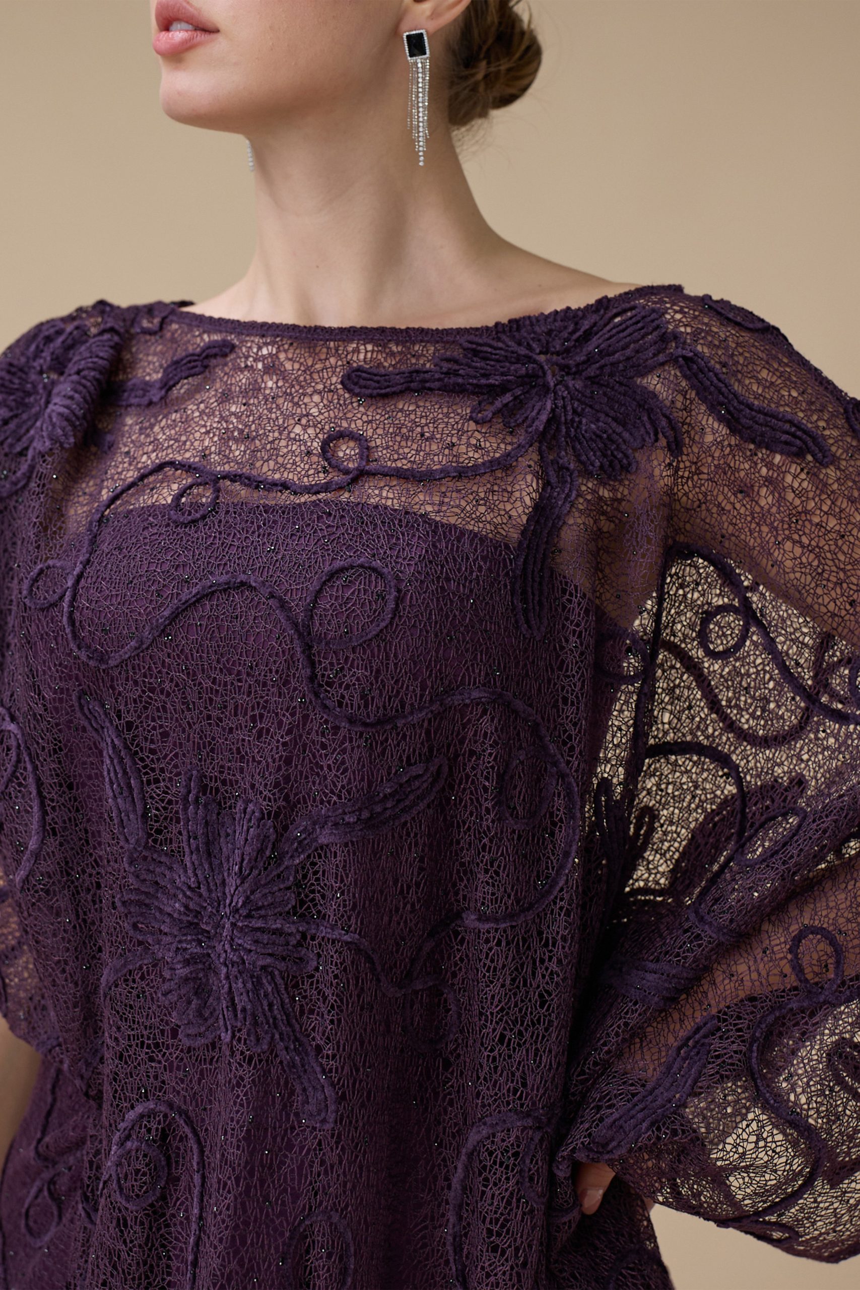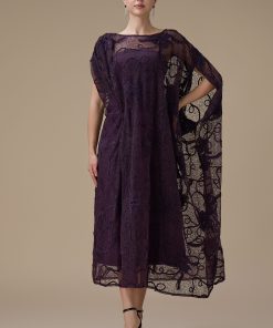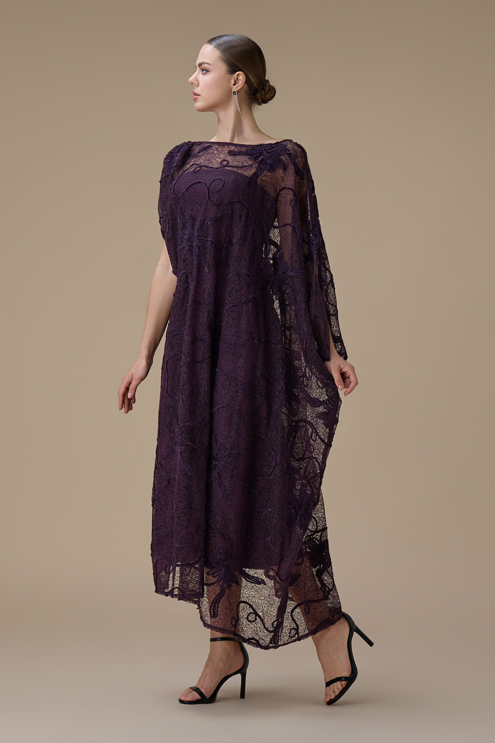 اكتان – فستان موف دانتيل واسع بقصة كاب
