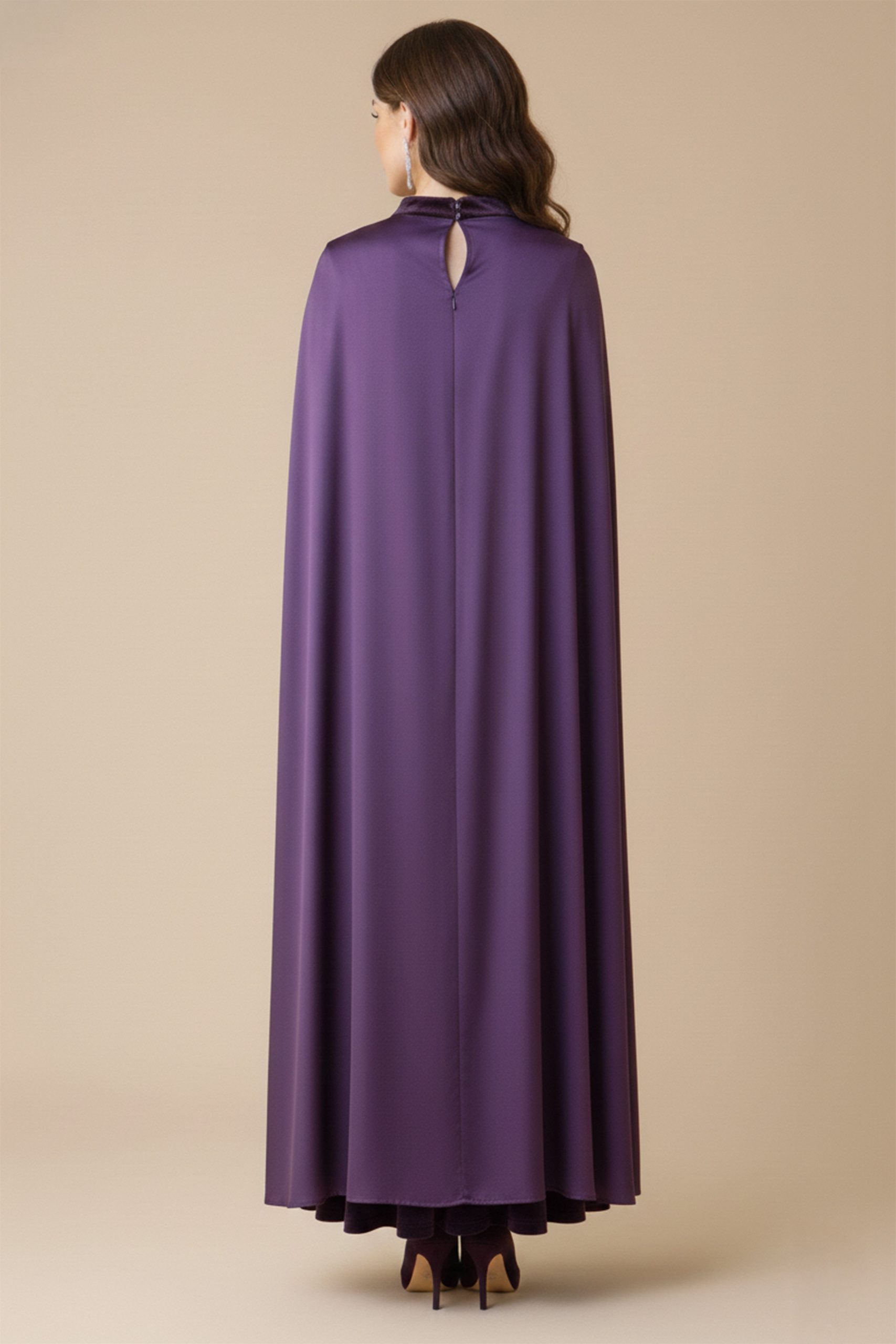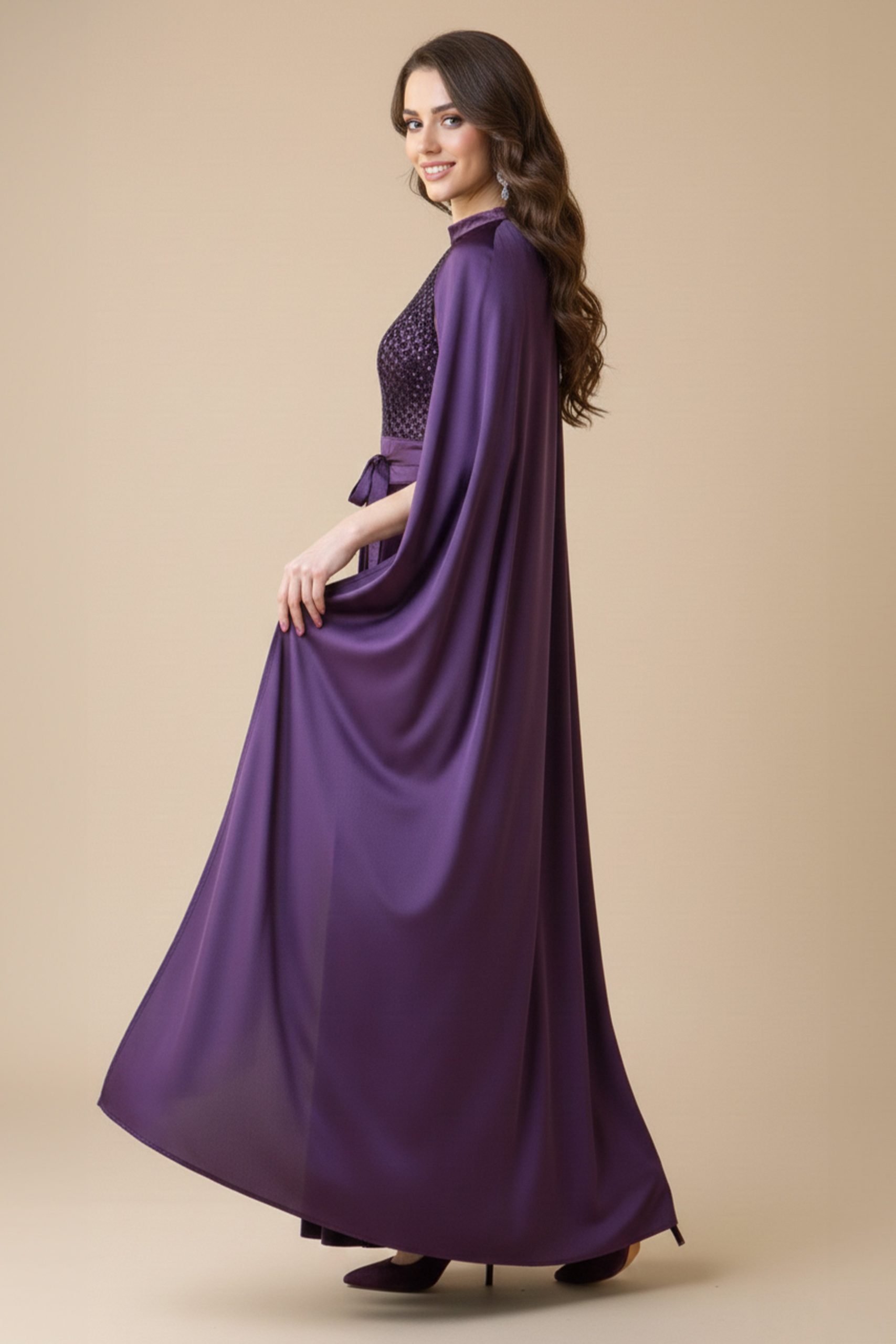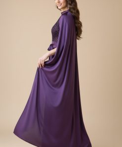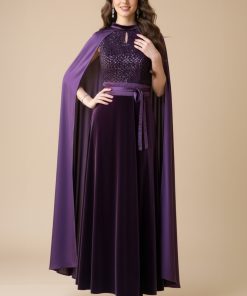 اكتان – فستان موف سهرة مخملي بأكمام كيب