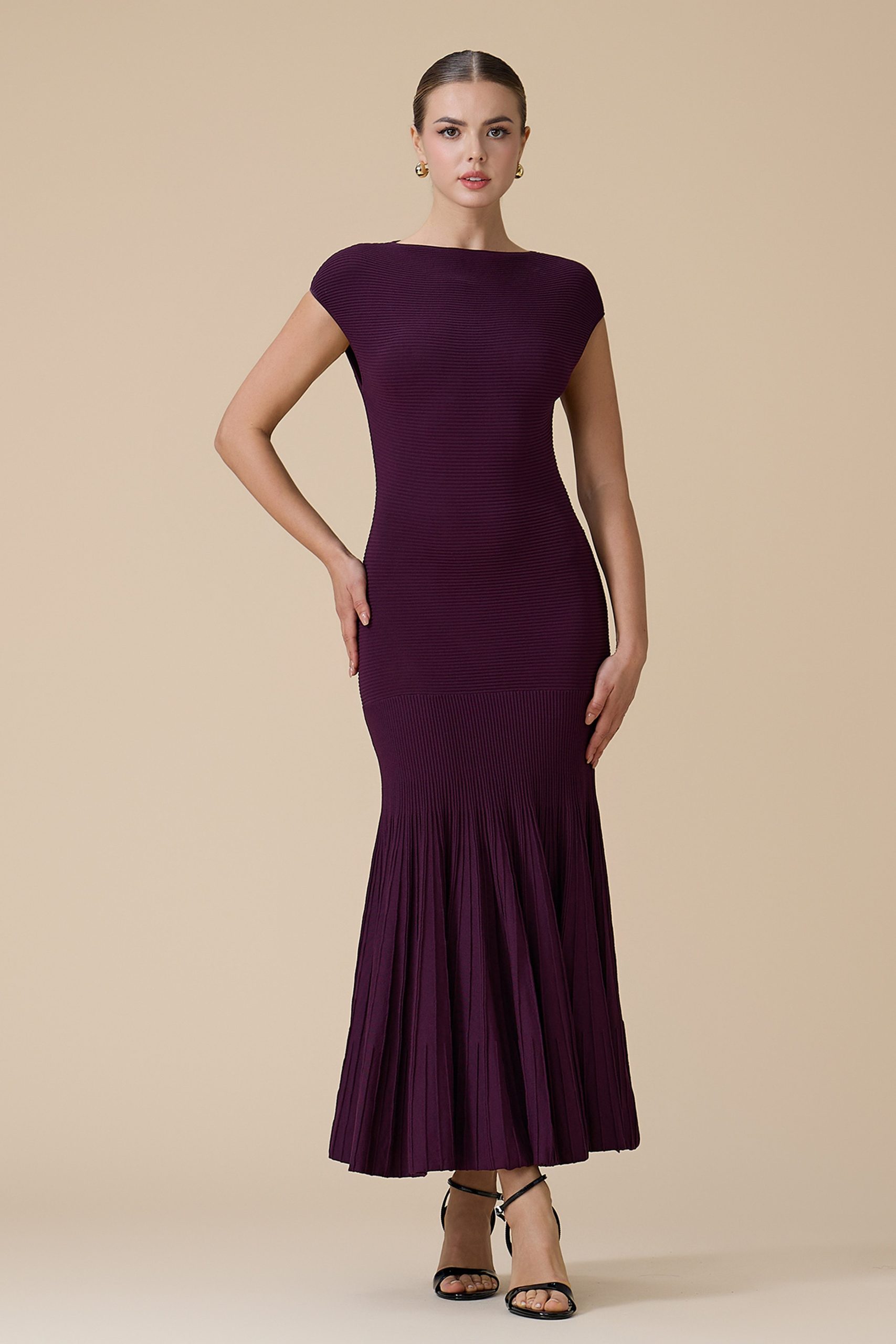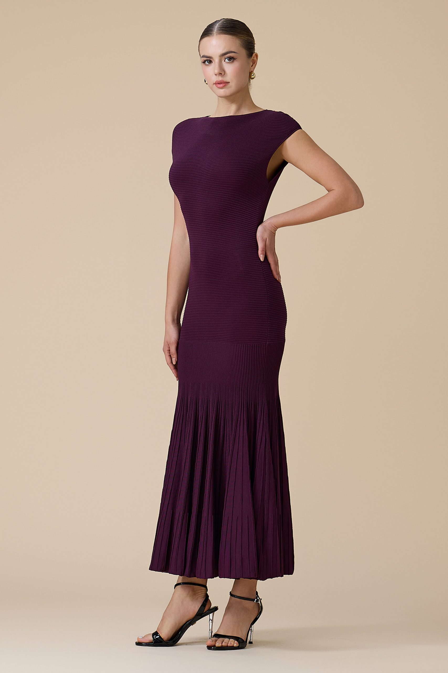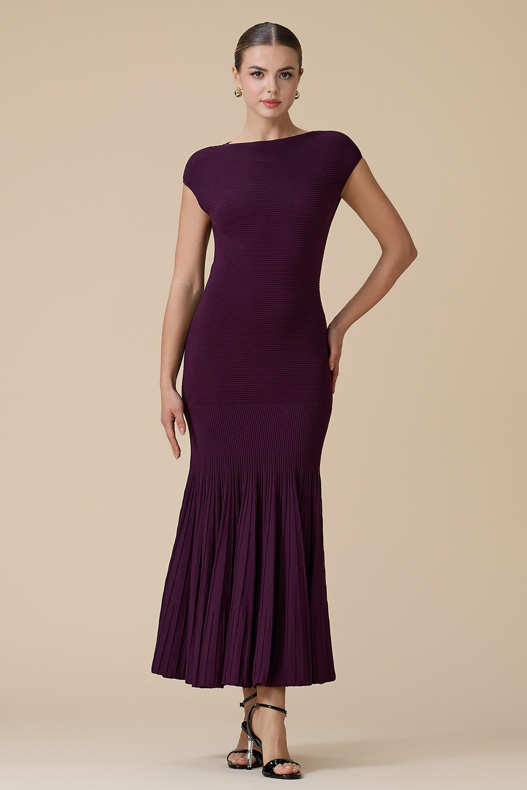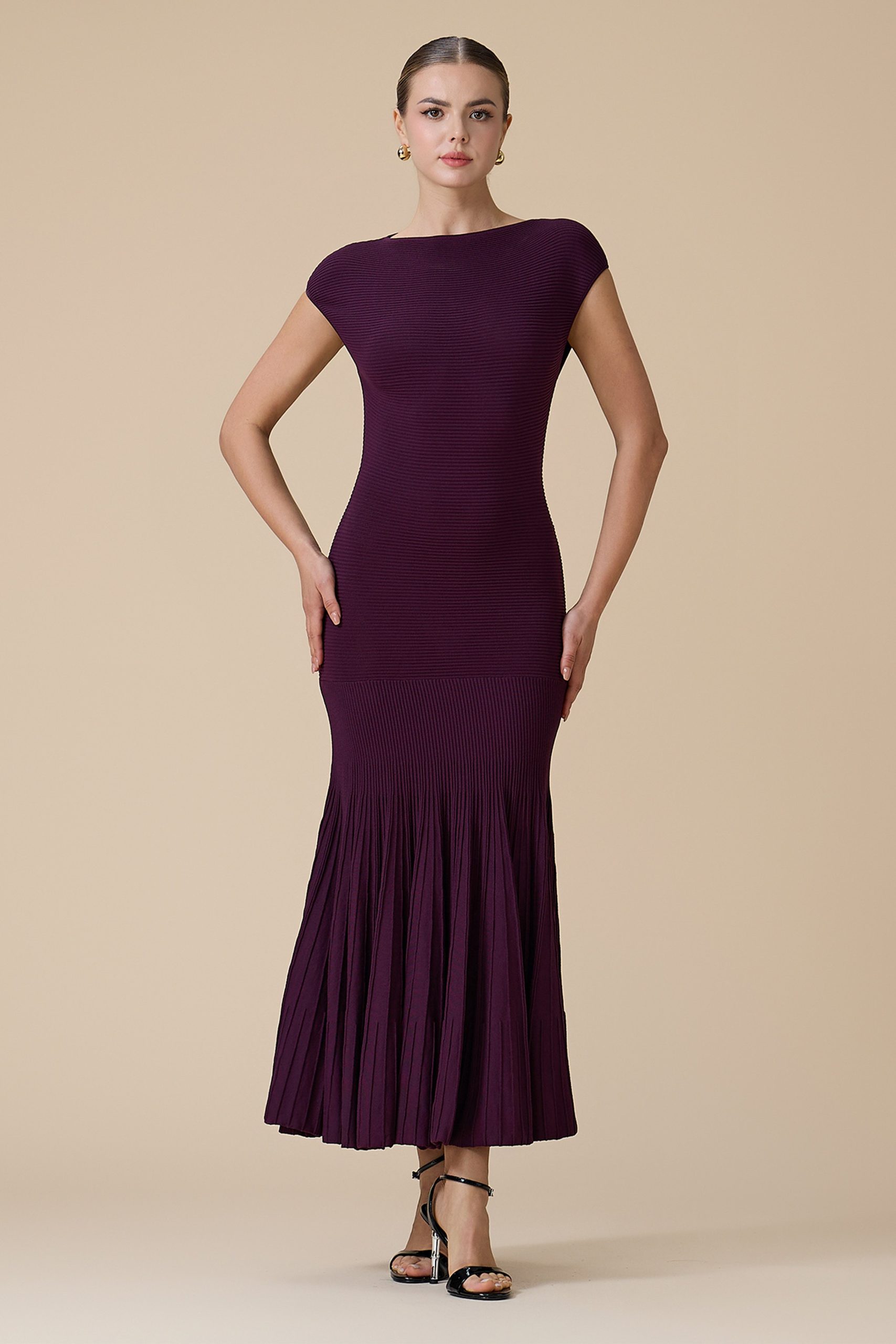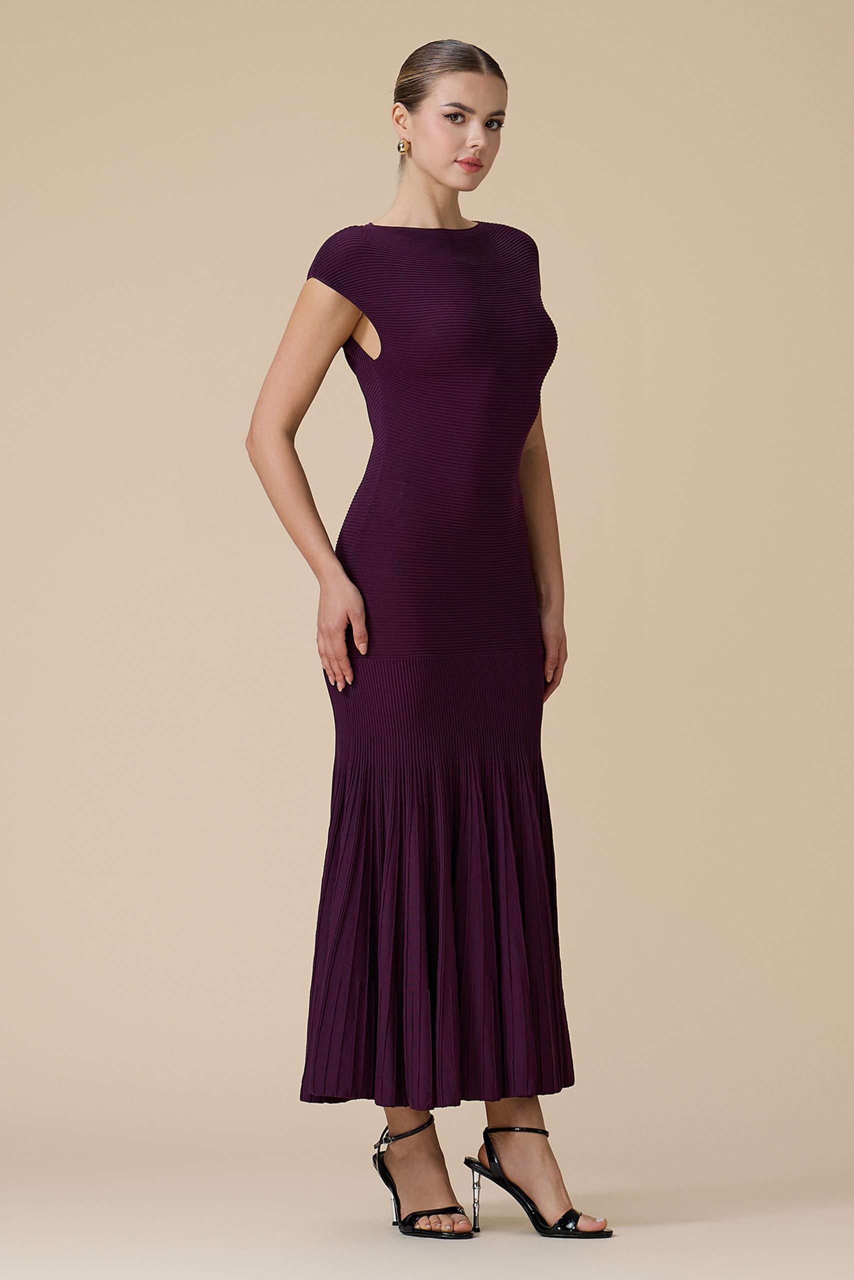اكتان – فستان موف طويل بأكمام قصيرة