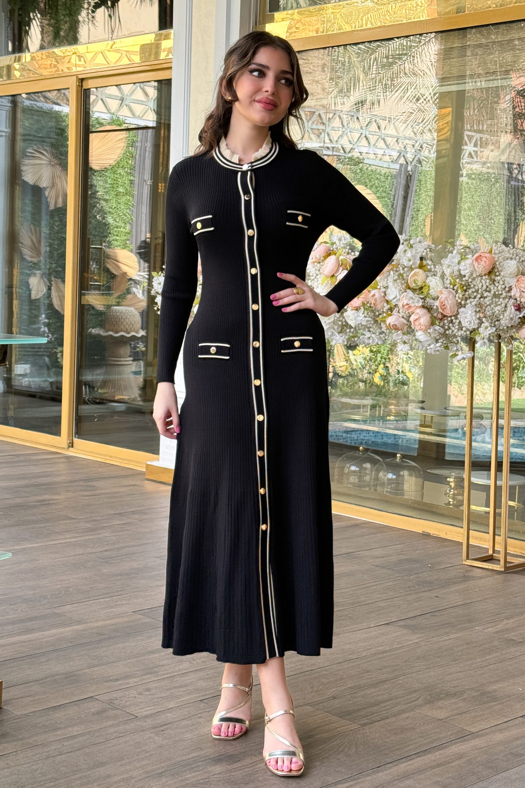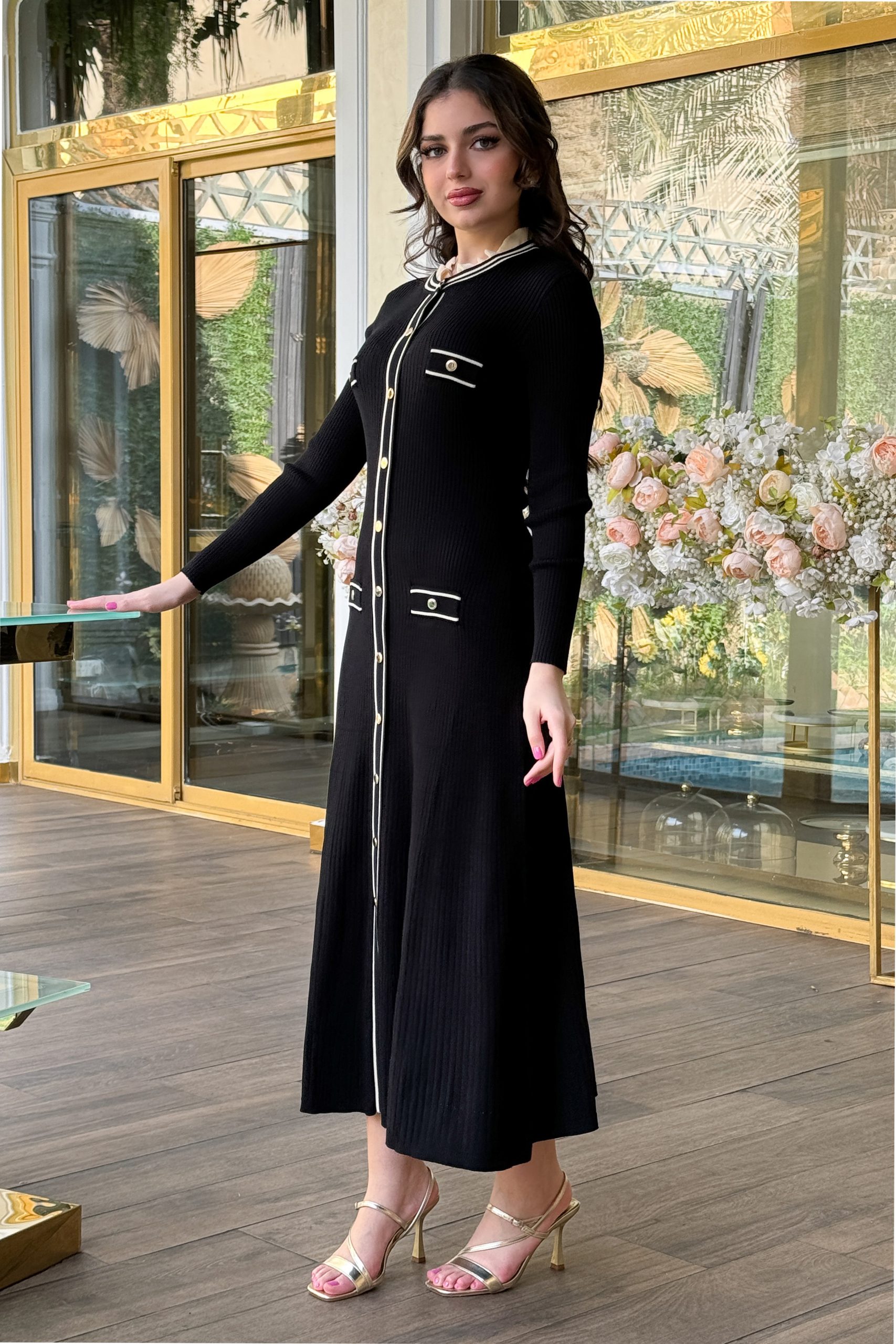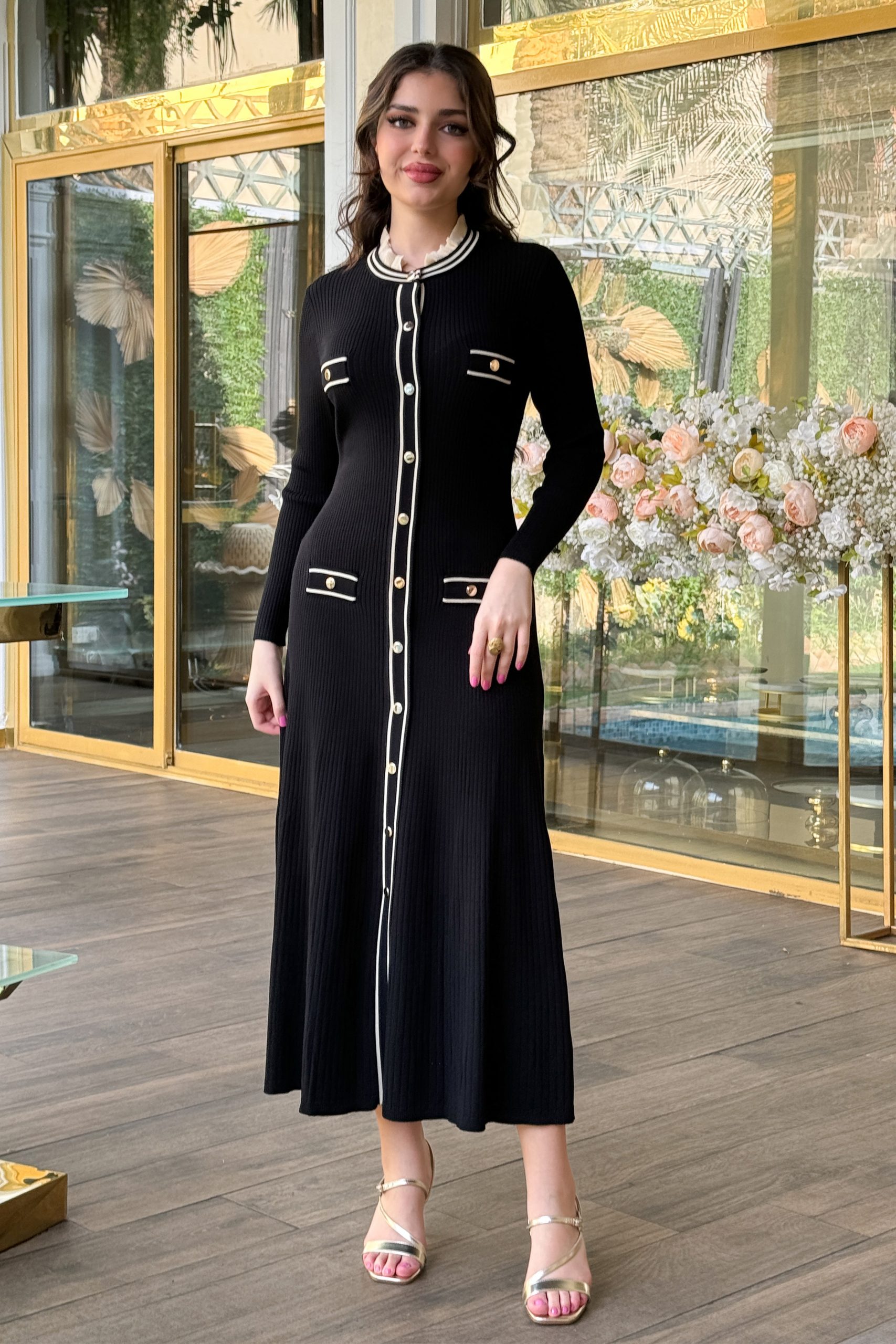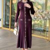 اكتان – فستان ميدي بحياكة مضلعة مزين بأزرار لون موف