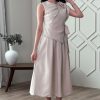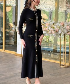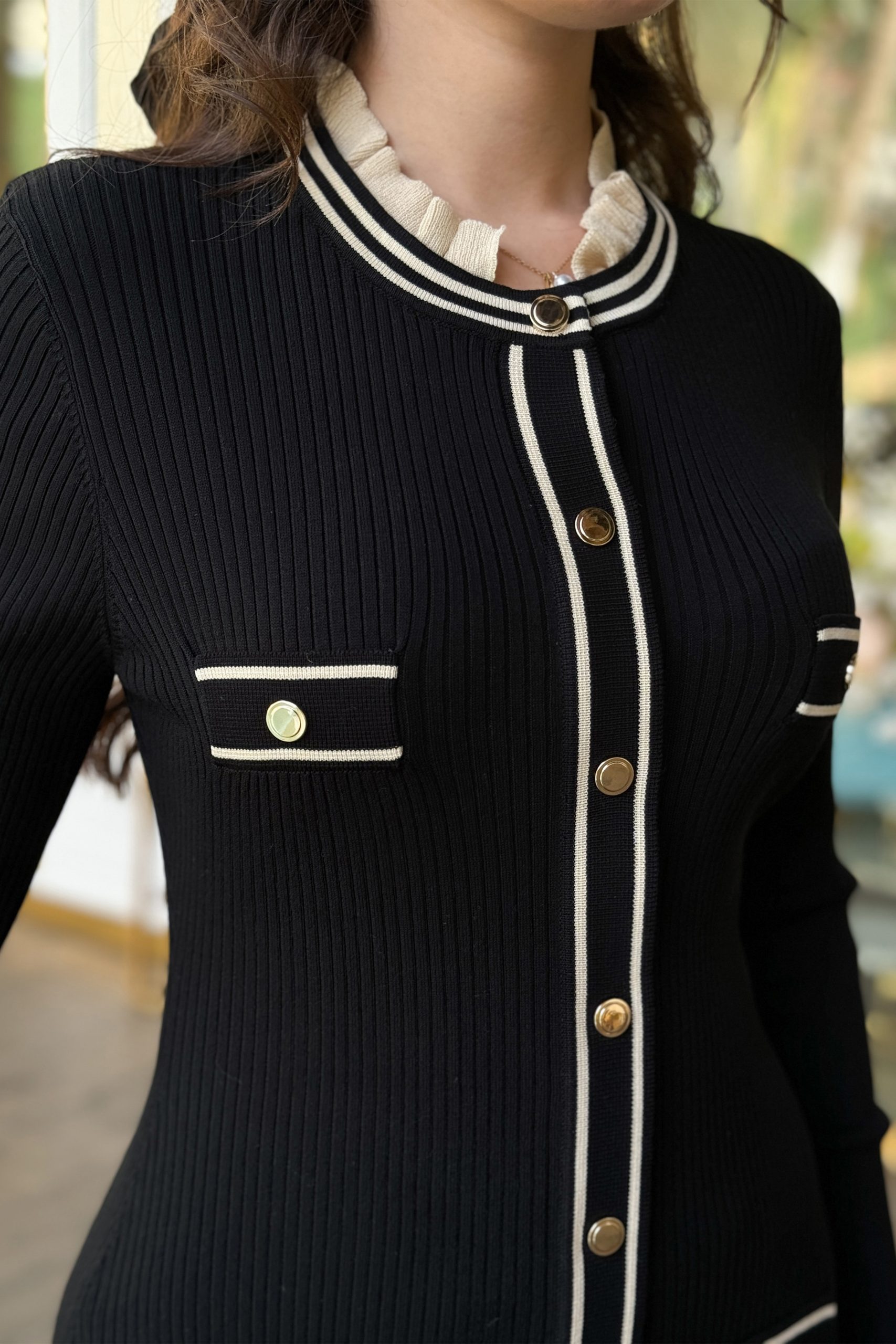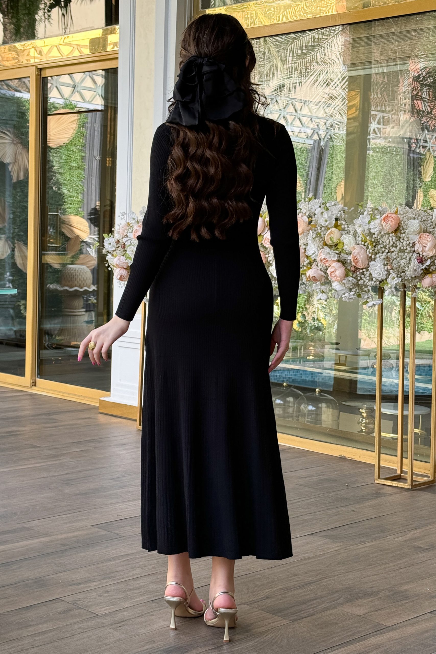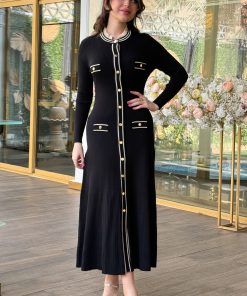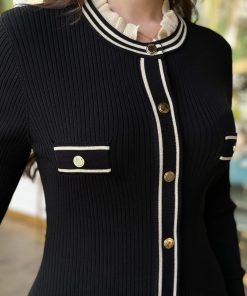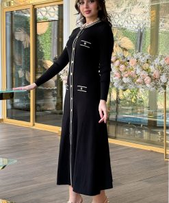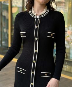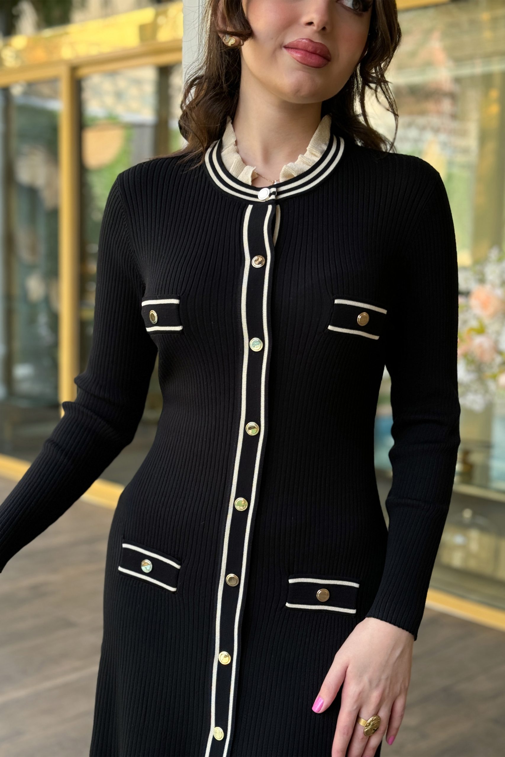 اكتان – فستان ميدي بحياكة مضلعة مزين بأزرار لون موف