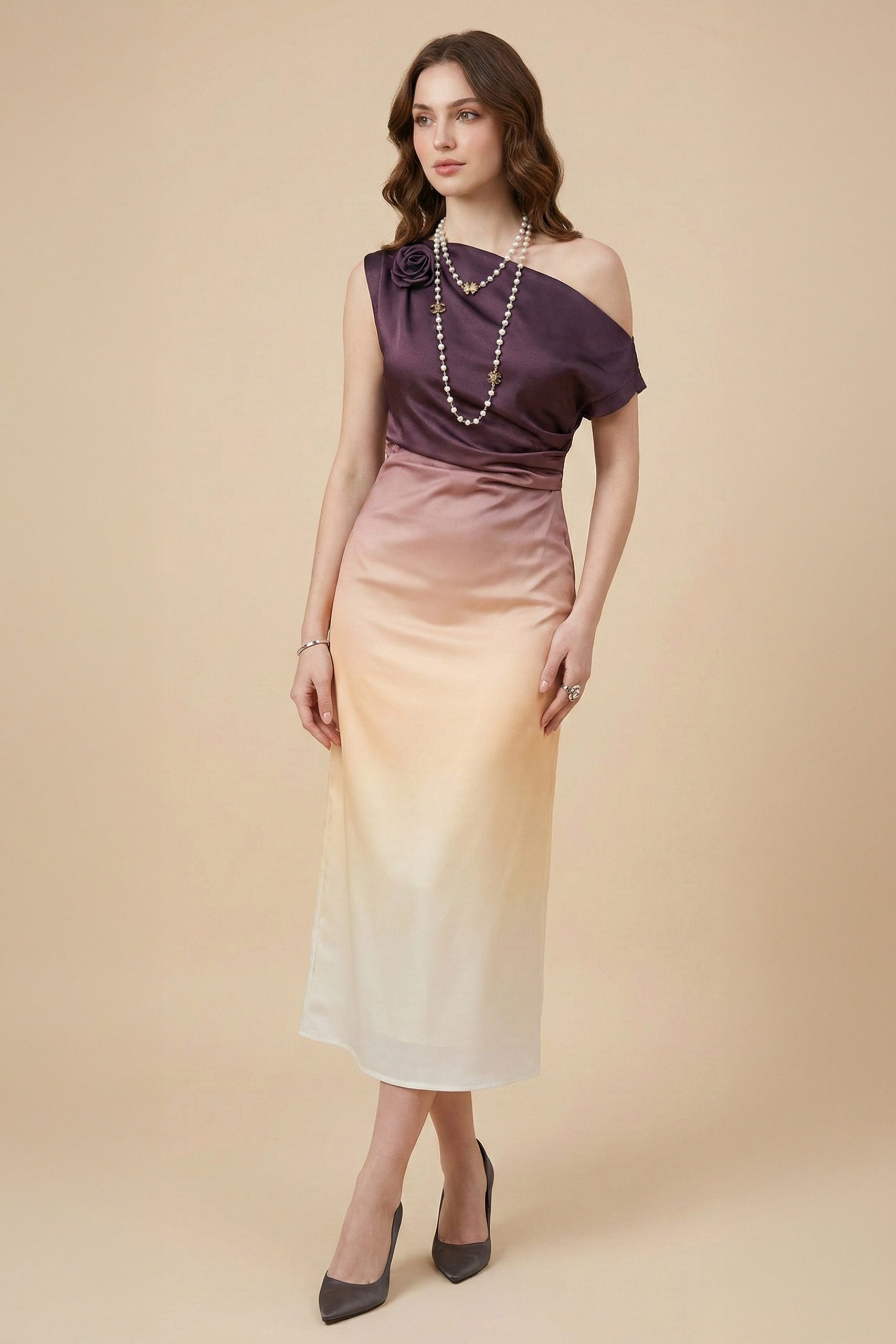 اكتان – فستان ميدي بكتف واحد