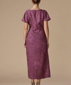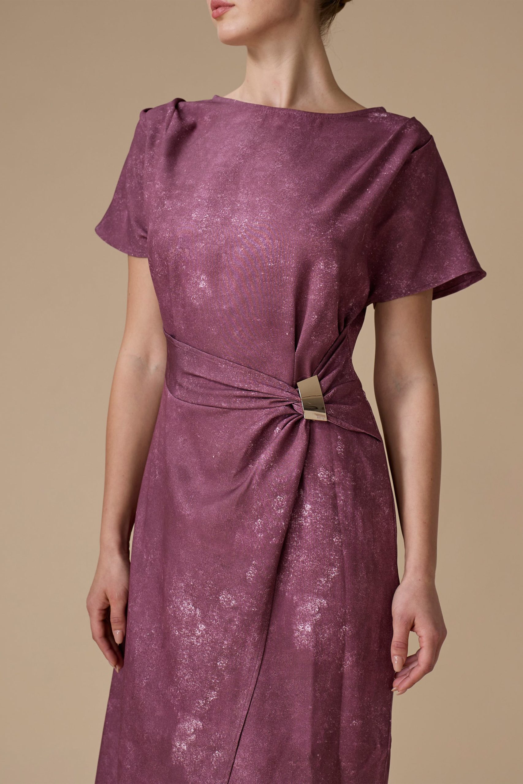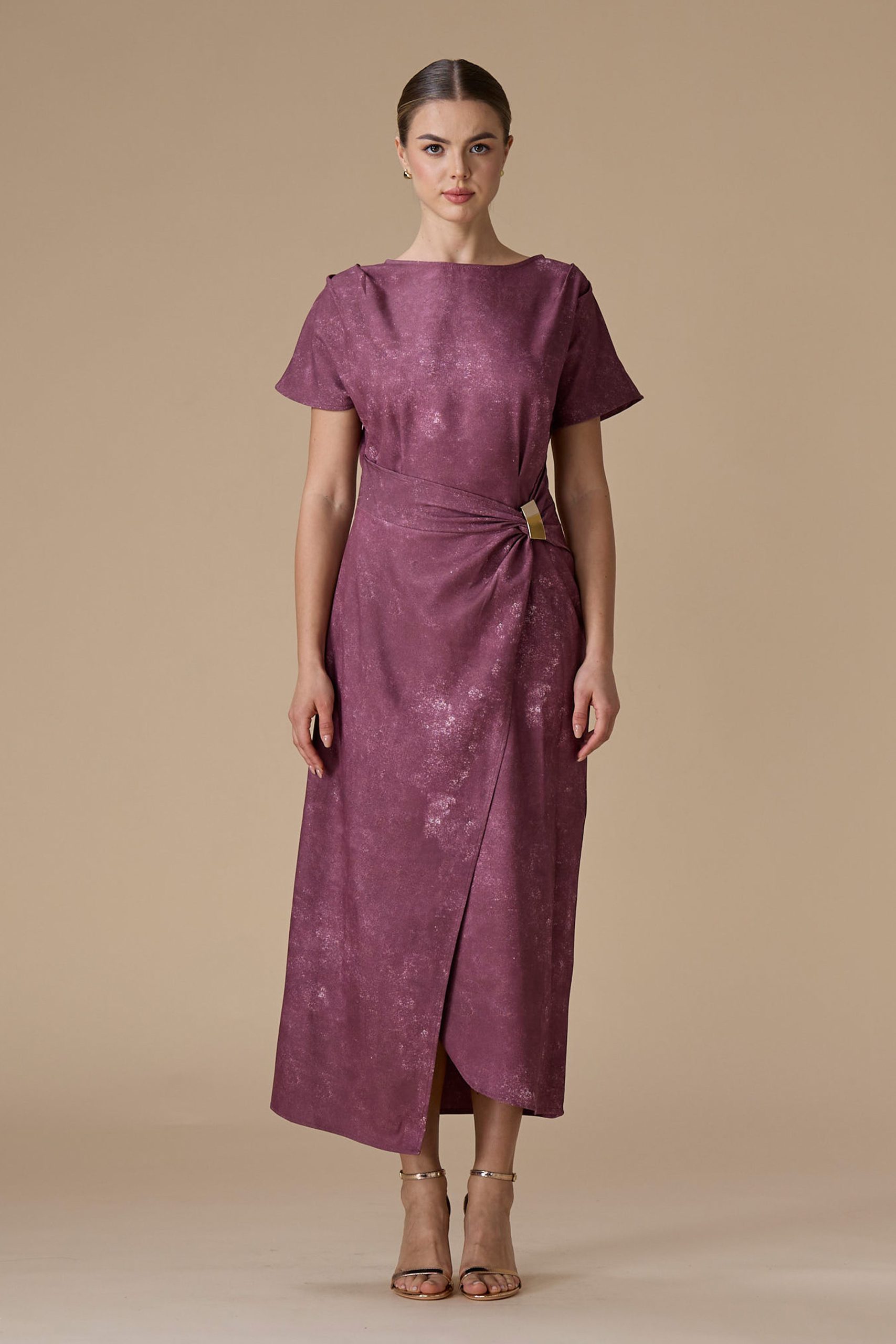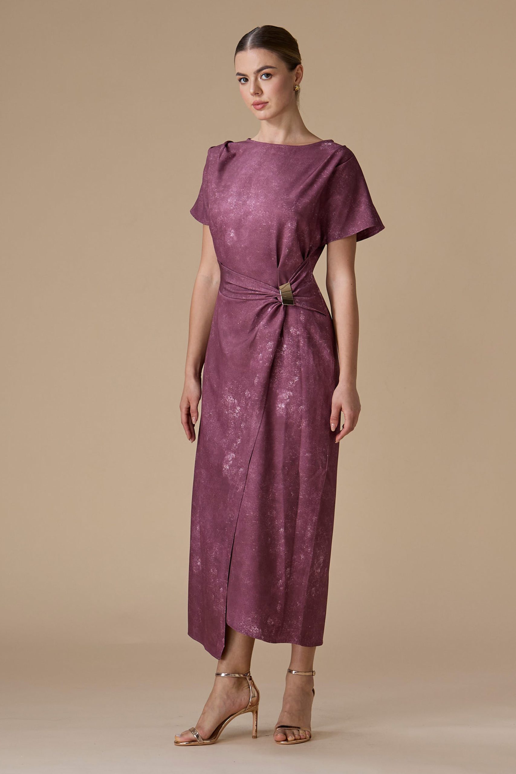 اكتان – فستان وردي ماكسي بدرابيه جانبي بمشبك أنيق