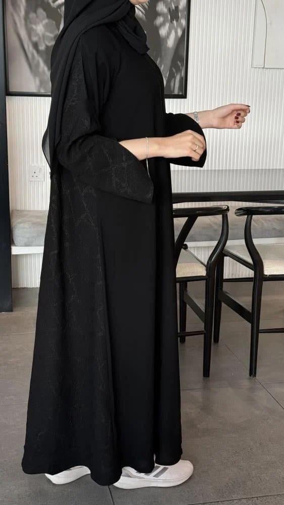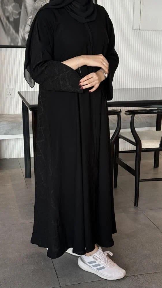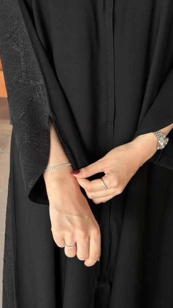 عبايات بيست – عباية عملية بتطريز على الكم باللون الاسود
