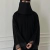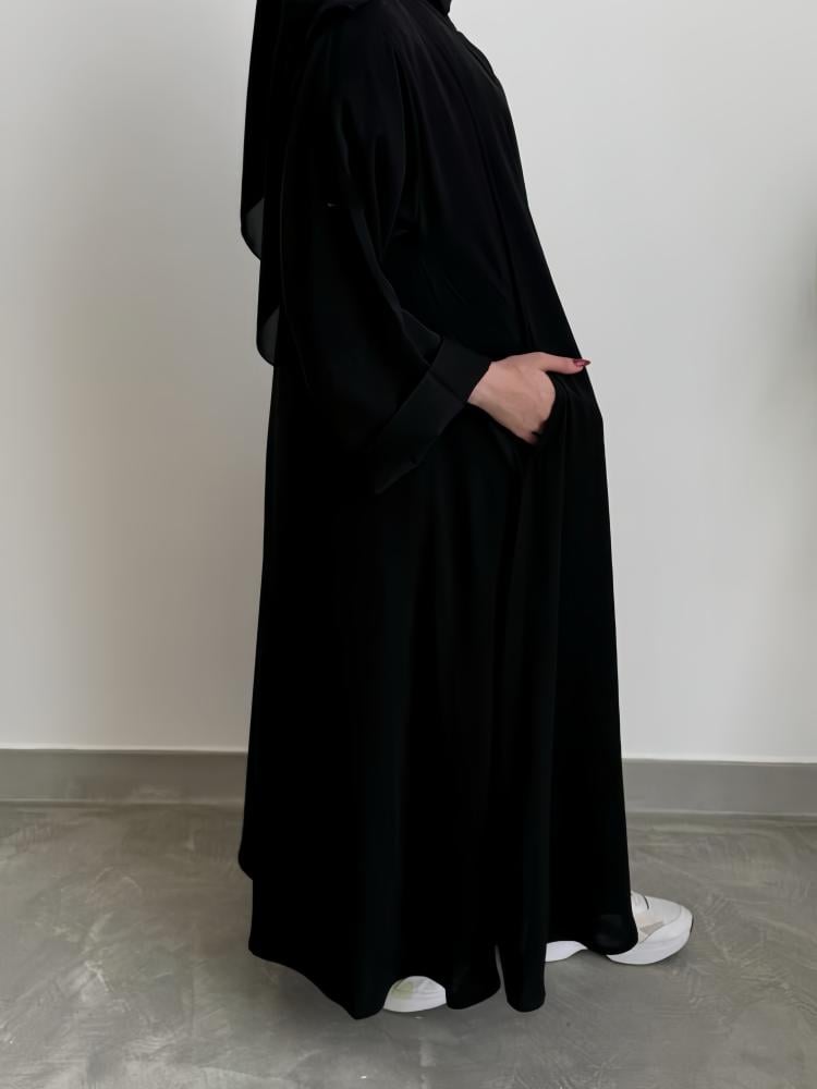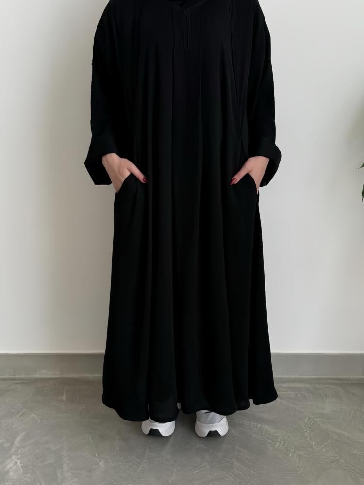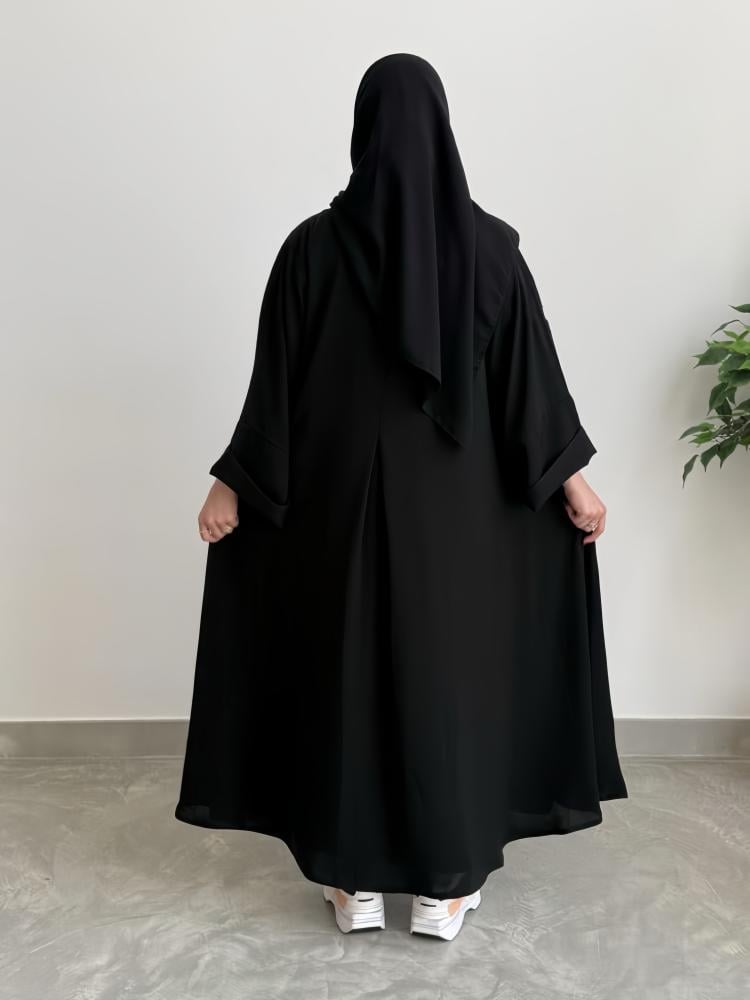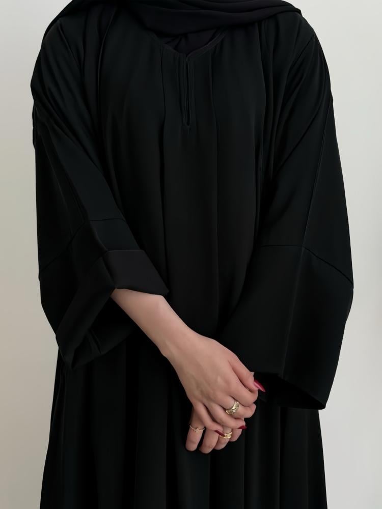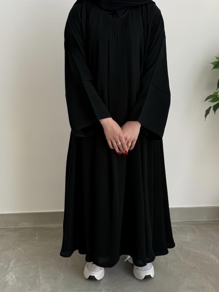 عبايات بيست – عباية عملية بتطريز على الكم باللون الاسود