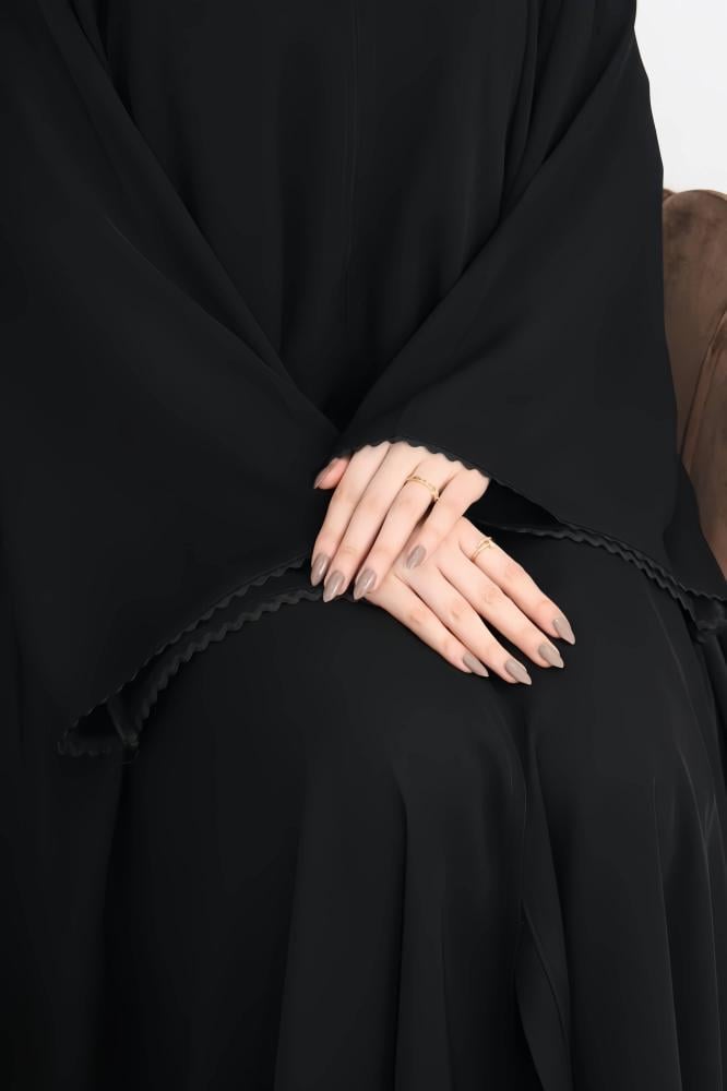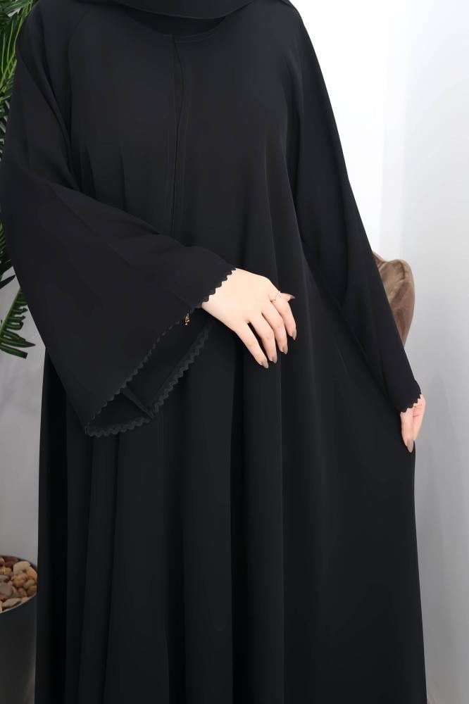 عبايات بيست – عباية عملية بتطريز على الكم باللون الاسود